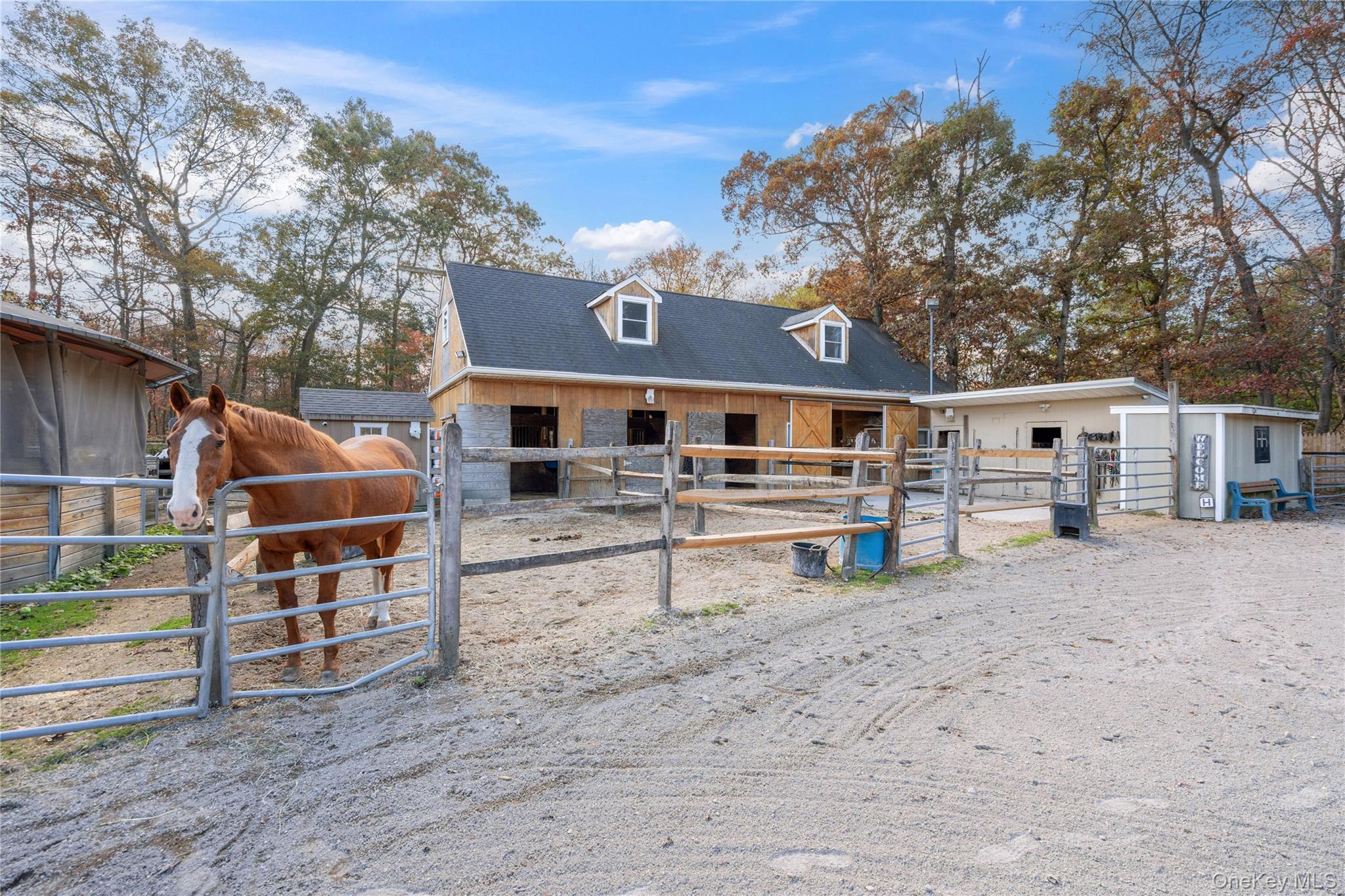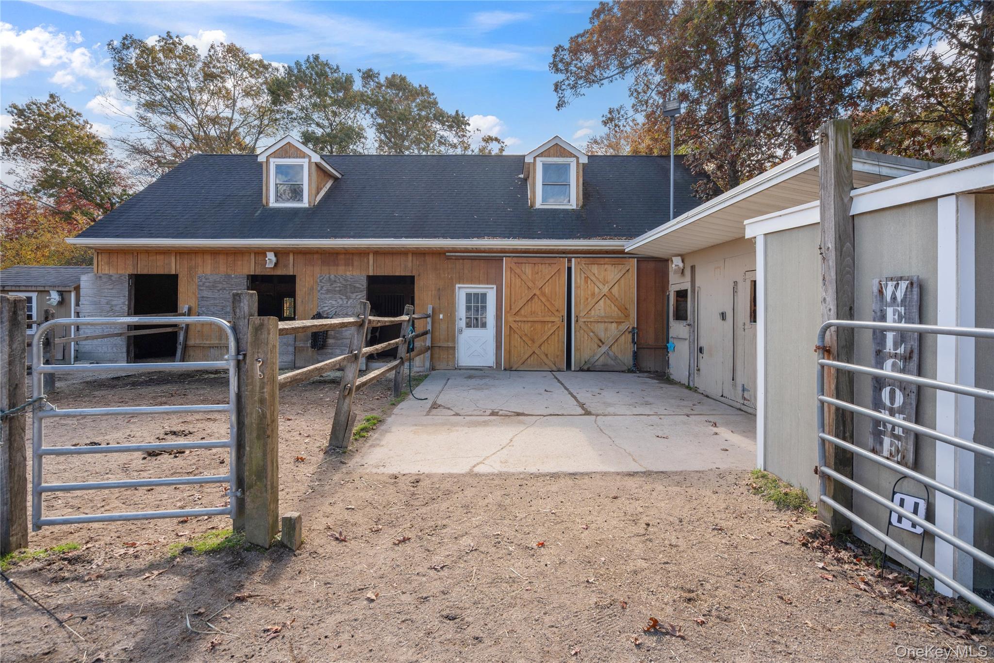 A Rare Opportunity to purchase this Exceptional 1. 5-acre horse property within a quiet Equestrian Community. Easy access to Connetquot State Parks 3, 473acres and 50 miles of trails. This inviting two-bedroom Ranch home offers Central Air for single level living. Large Barn with Great Income Potential, in and outs, 2 interior tack rooms, and a heated bathroom with hot water. Six frost-free hydrants. Grooms Quarters with bath. Riding Arena, Covered Round Pen with screen covering, and removable winter covering. Programmable electric security gate provides security for people and horses. Home Alarm and Many Extras. A dream property for any horse enthusiast. Adjacent to 108 Sportsmen, single family home is also for sale, see MLS#926646 for a combined property opportunity.