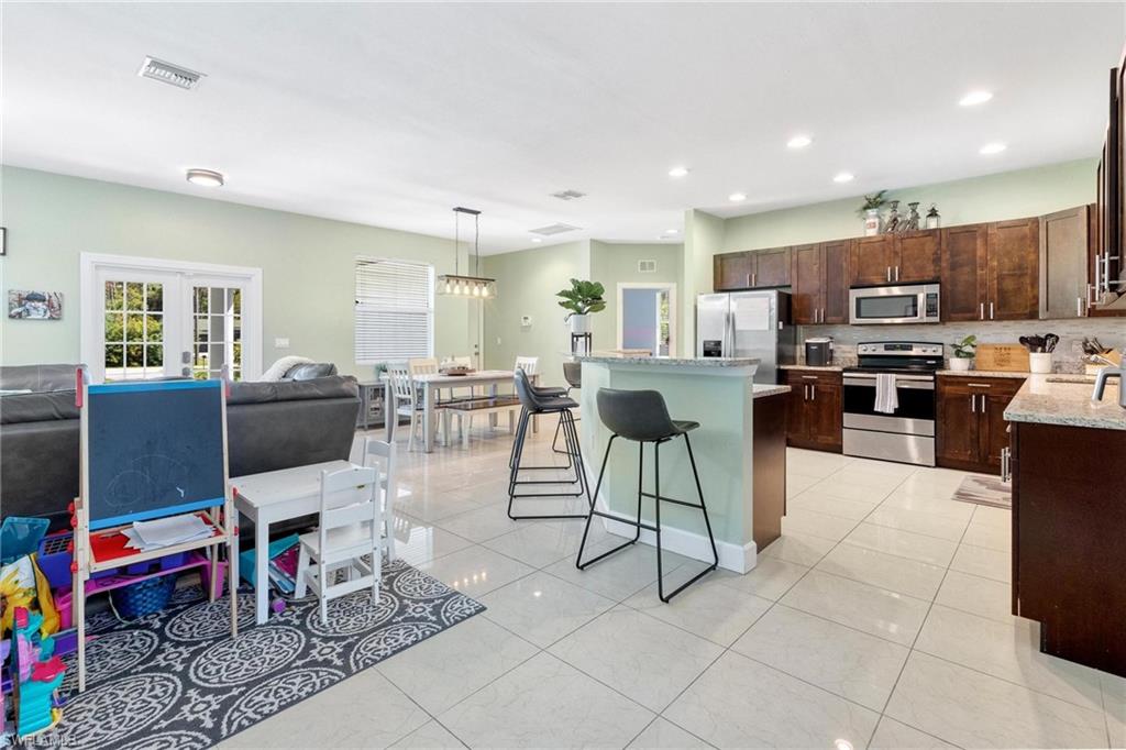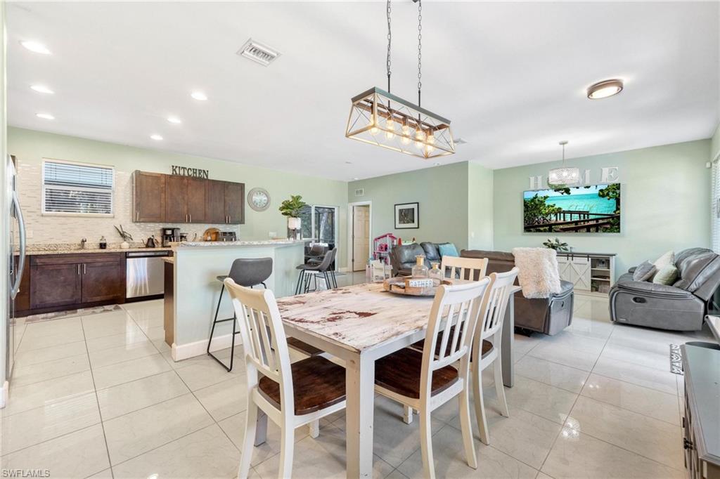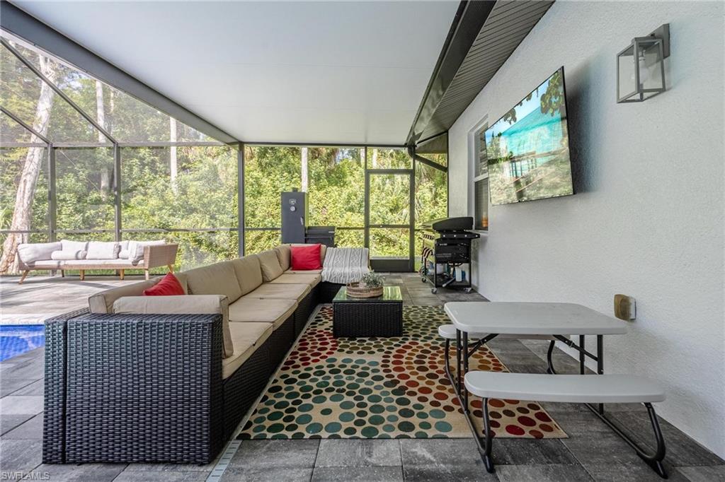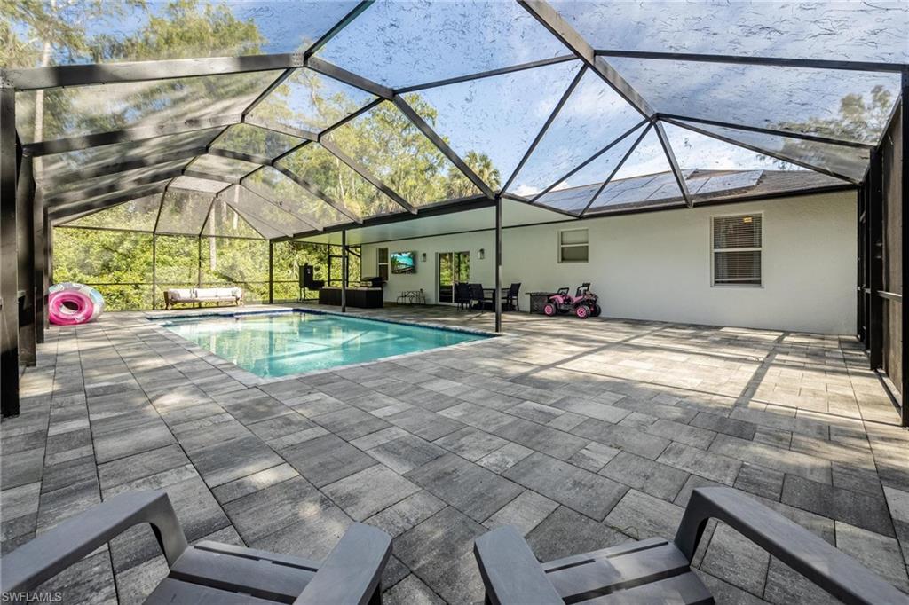 Prime Location! Nestled on 1. 14 acres just minutes from the vibrant new Founders Square, this beautiful oasis perfectly blends tranquility and convenience. The property features a brand-new saltwater pool with splash pad and spa, ideal for warm Florida days and effortless outdoor entertaining. A spacious lanai accommodates gatherings of up to 70 guests, creating the ultimate setting for celebrations. Energy efficiency meets modern living with the addition of solar panels, offering long-term savings. Inside, the open-concept living area flows seamlessly into a bright, modern kitchen with a generous island. The expansive yard offers ample space for recreation, relaxation, or future enhancements. Set in a peaceful neighborhood close to shops and dining, this property is truly a rare find. Enjoy a private slice of paradise just minutes from everything Naples has to offer.