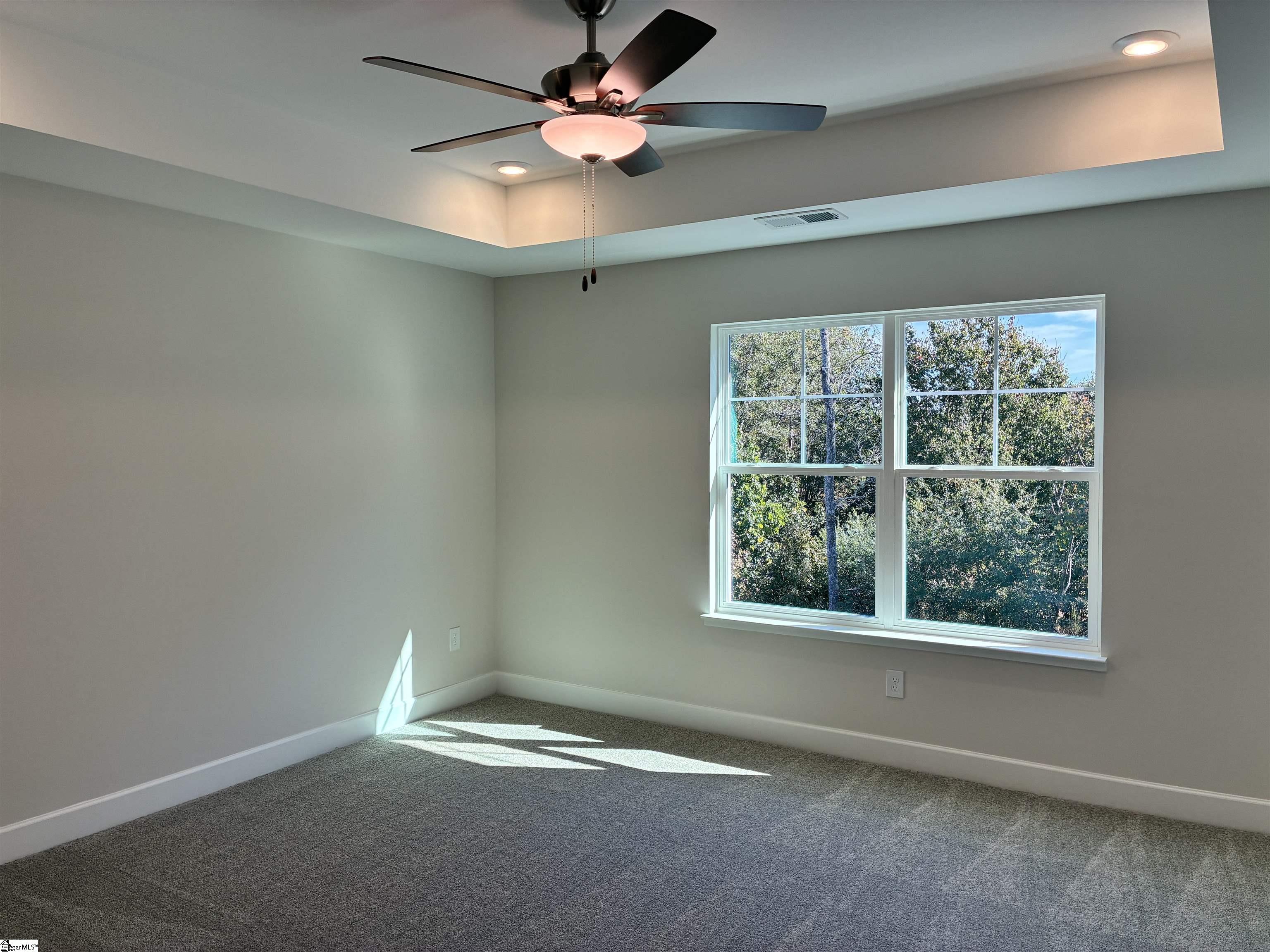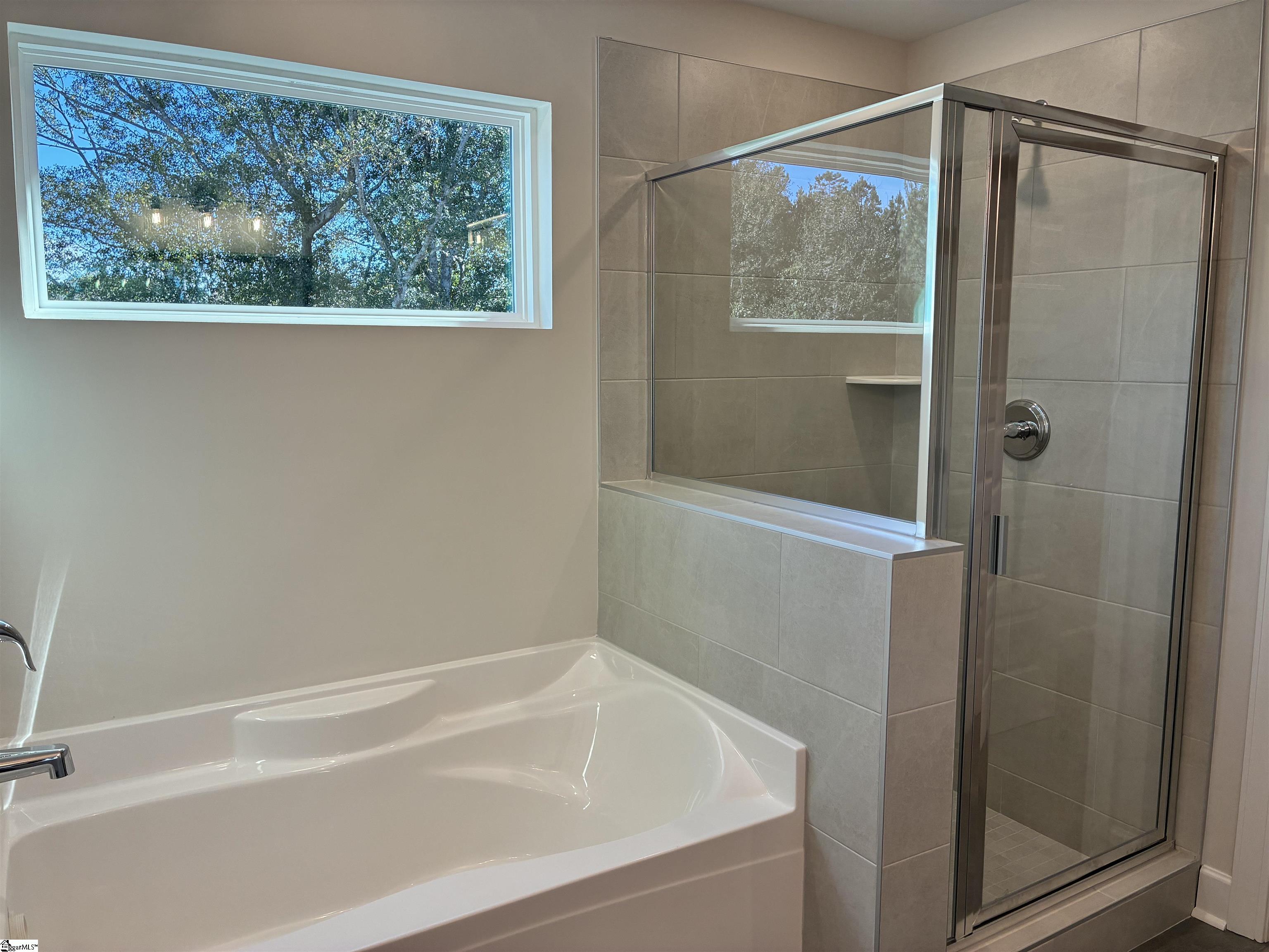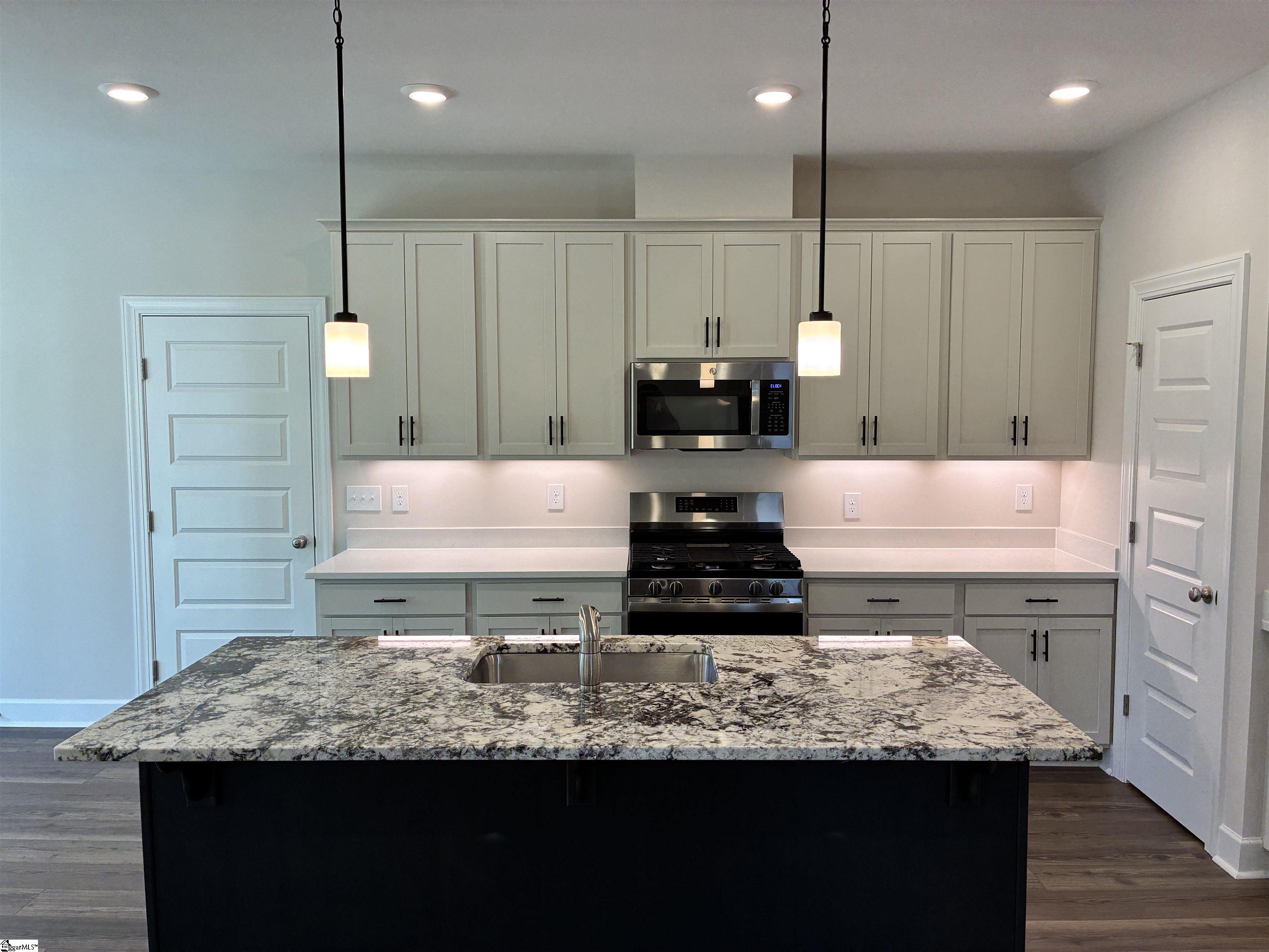 This Home has a walk up Self-Tour option. Welcome to the McKee by Cothran Homes. Our Chicago inspired custom curated design incorporates all the right elements of Urban Chic in this lovely home. You will enjoy many mornings cooking breakfast in this bright kitchen with shaker style Fulton Shell off-white cabinets, Carrara Marmi Quartz countertops, matt black hardware, large working Atlanta Carbon-stained kitchen island with single bowl undermount stainless steel sink. GE Stainless Steel gas range, over the range vented microwave and dishwasher included for all your culinary needs. Open floor plan dining room flows right into the living room complete with gas fireplace, LED disc lights and Minka ceiling fan. This 5 bedroom, 2 ½ bath with first floor Study/Bedroom has stunning 5” wide Starting Point Weathered Brown luxury vinyl plank floors throughout main living areas and Midway Plaza Pebble Creek Shaw carpet in remaining rooms with 8lb pad. Retreat into your owner’s suite with tray ceiling, LED disk lights, and Minka ceiling fan. Enjoy the lovely en- suite with fully tiled Ardor Radiance walk- in shower, separate soaking tub and Fulton Shell off-white double sink vanity and large walk-in closet. Spacious second floor Loft can be set up as a Listening Music Room / Homework station to keep the family comfortably entertained and organized. Laundry room includes hook up for washer /dryer and shelving for all your laundry accessories. Deep 3 car garage with lots of storage space and wide driveway for family parking. Finally, a rear covered porch right off your living room. Perfect to set up that outdoor entertaining space you have always wanted.