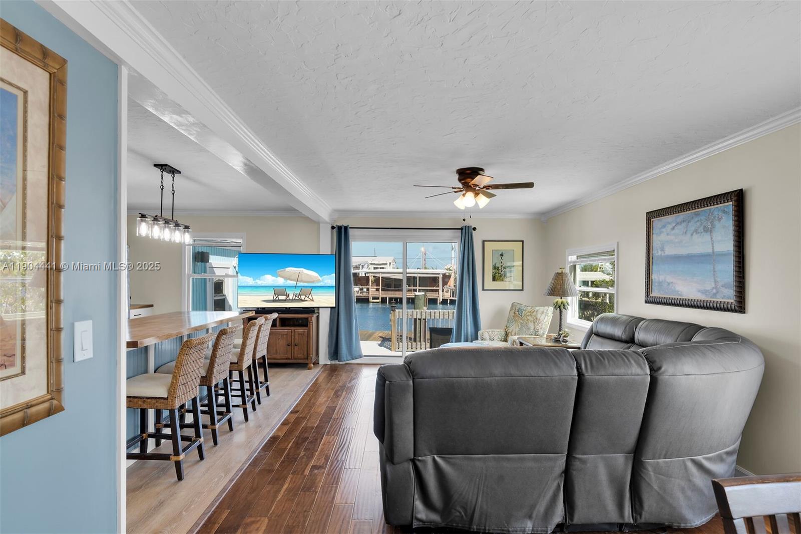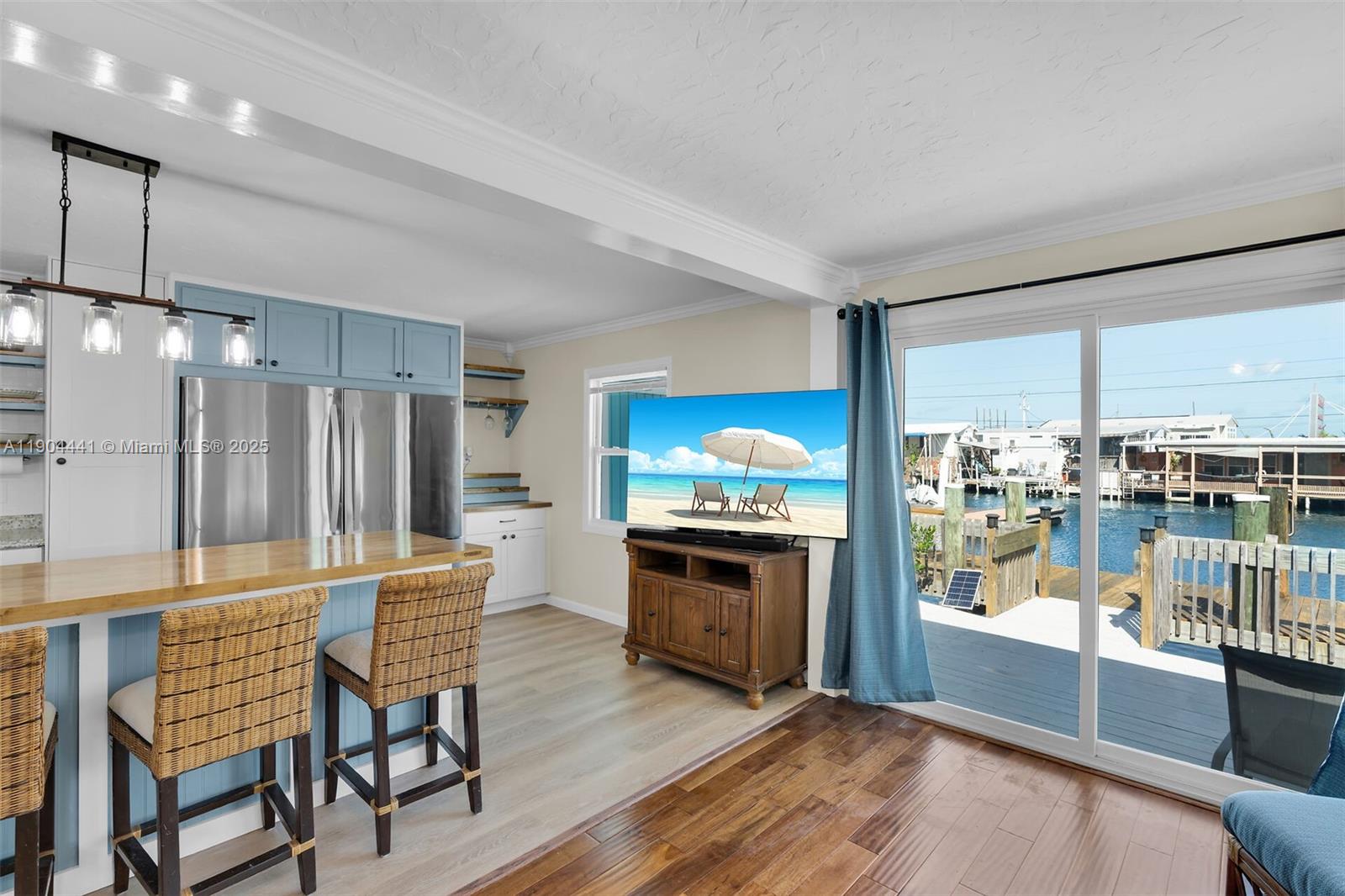 Remodeled, furnished 2BR/2BA mobile home with marina/canal views to Boot Key Harbor. Open plan; kitchen with 8-ft island, double fridges, glass-top range, dishwasher, disposal and pantry. Primary suite with private bath, walk-in and laundry. Water-view family room, private corner lot with ample parking. Two sheds, including a dockside shed with commercial ice maker, fridge and bait freezer. Galway Bay MHP (55+): gated, pet-friendly, private boat ramp, deep canal access, trailer parking, trash service. Lot rent $1, 505/mo incl. taxes. Near 7-Mile Bridge; ~45 min to Key West.
