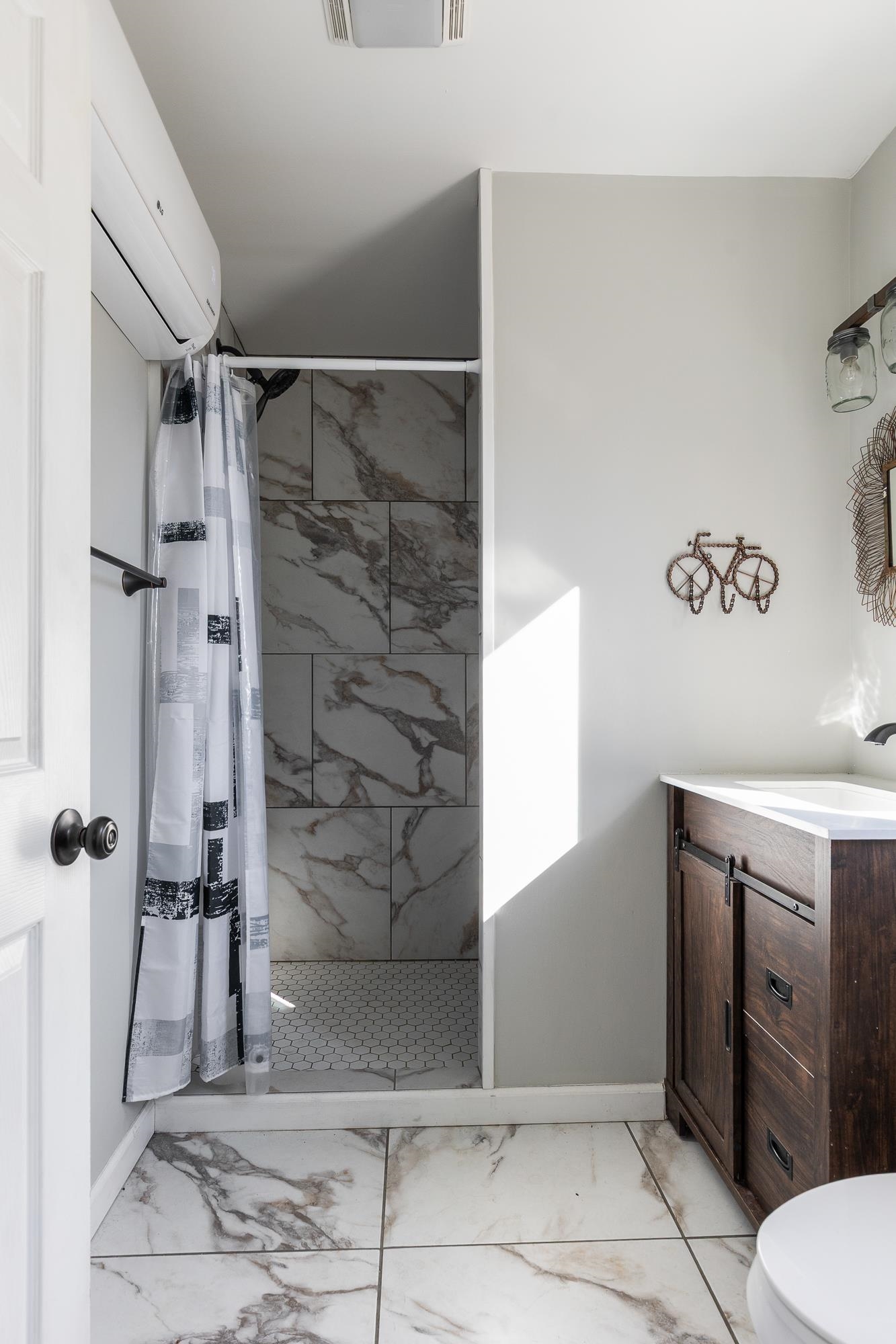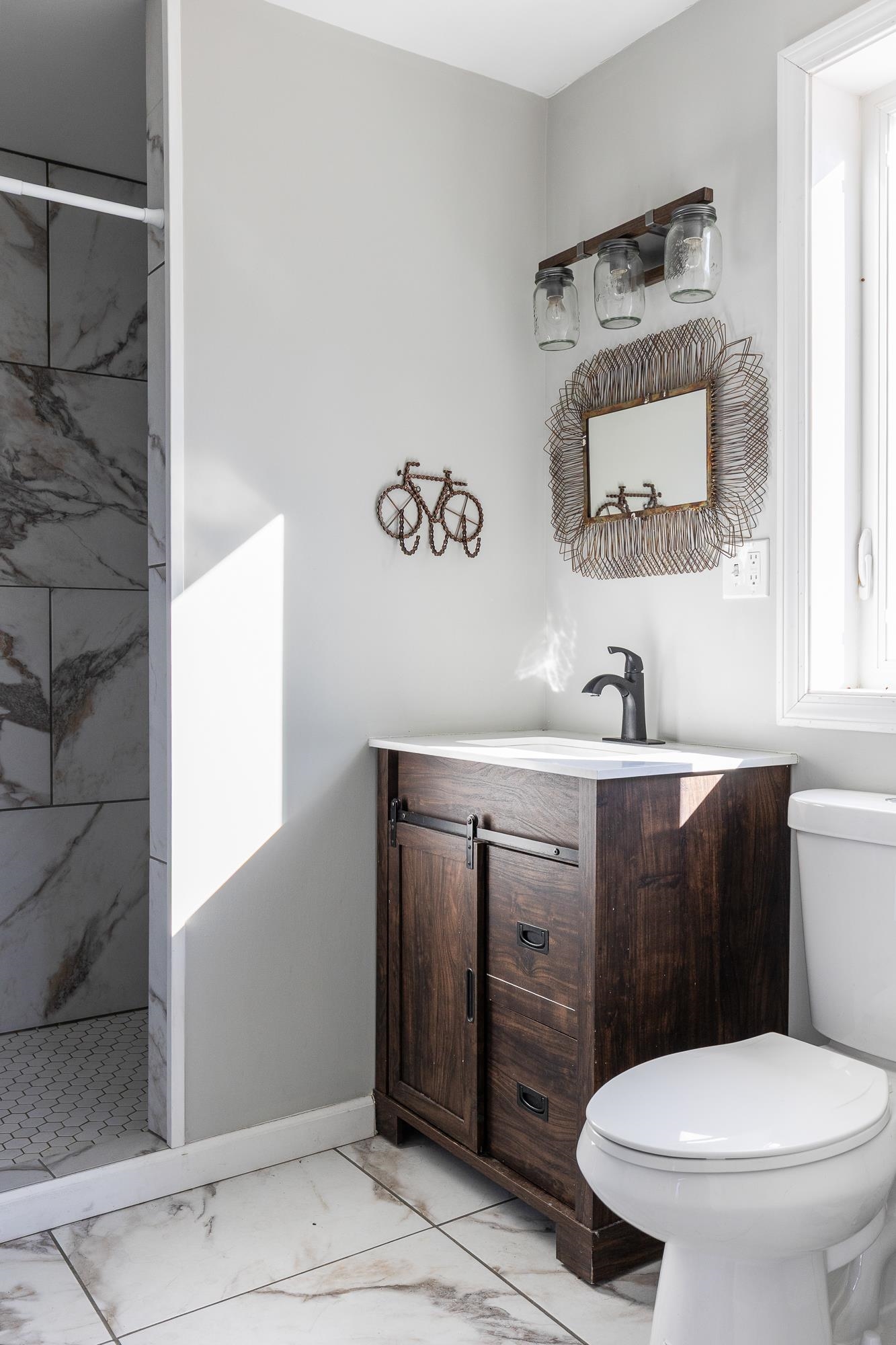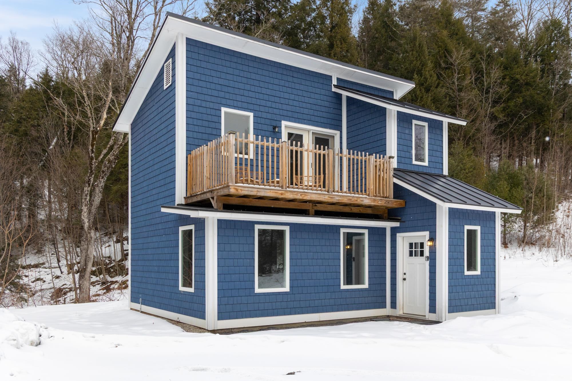 Tucked on nearly 2 acres, at the end of a quiet road, this 2023 "tiny" home offers modern comfort and a true sense of privacy. The open concept main level connects the living room and kitchen, where vaulted ceilings and large windows fill the space with natural sunlight, creating a seamless flow thoughout the house. The kitchen features an island with a farmhouse sink, contemporary cabinetry, wood countertops, and stainless steel appliances. A convenient half bath completes the main level. Upstairs, the primary suite spans the width of the home, offering generous closet storage and an attached 3/4 bath. The suite also includes a private balcony, an unexpected bonus and quiet outdoor retreat. With 900 square feet of thoughtfully designed space, the home offers efficient, low-maintenance living without sacrificing style or comfort. Heat Pumps offer heat in the winter and a/c in the summer. Enjoy a sense of retreat while still being minutes from Johnson Village amenities, including dining, shopping, and Vermont State University. You will appreciate nearby skiing, hiking, biking, and river access. Approx. 30 min from Stowe, Jay Peak, and Smugglers’ Notch ski resorts. Current septic and well permitted for a 3 bedroom house if expansion is desired. Sold fully furnished with an estimated gross income of $60, 200 as an short term rental and an 82% occupancy rate. Estimated CAP rate of 10. 6%.