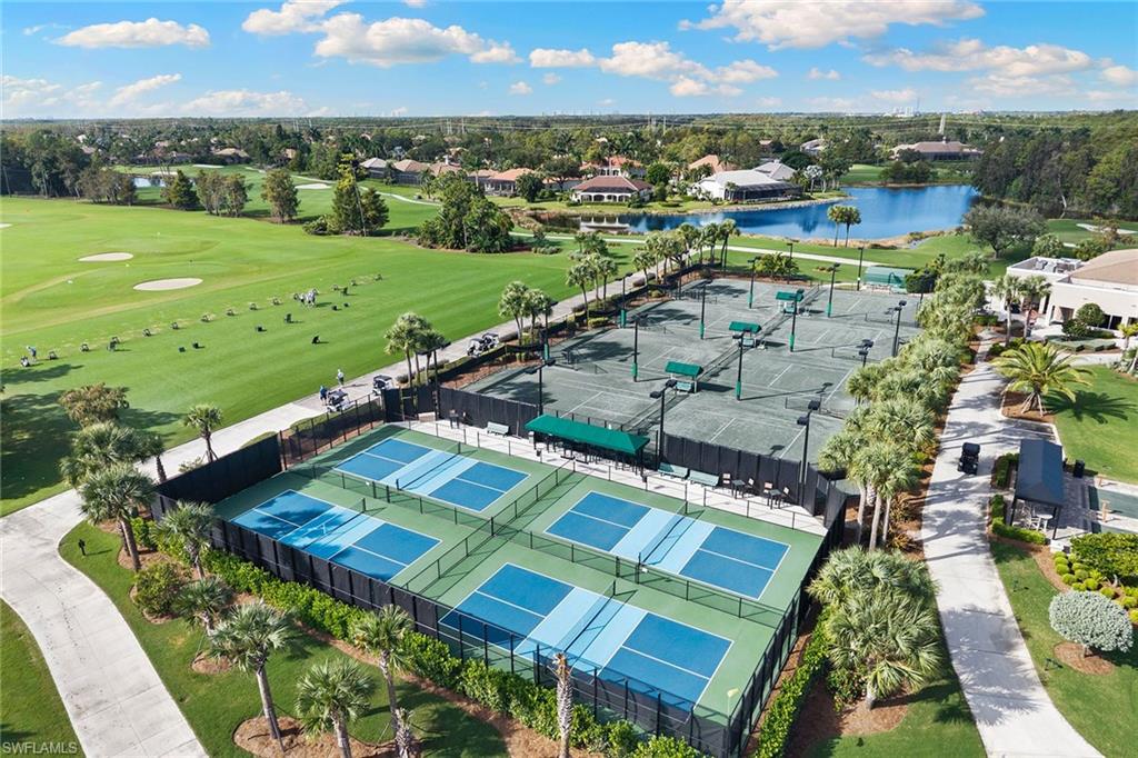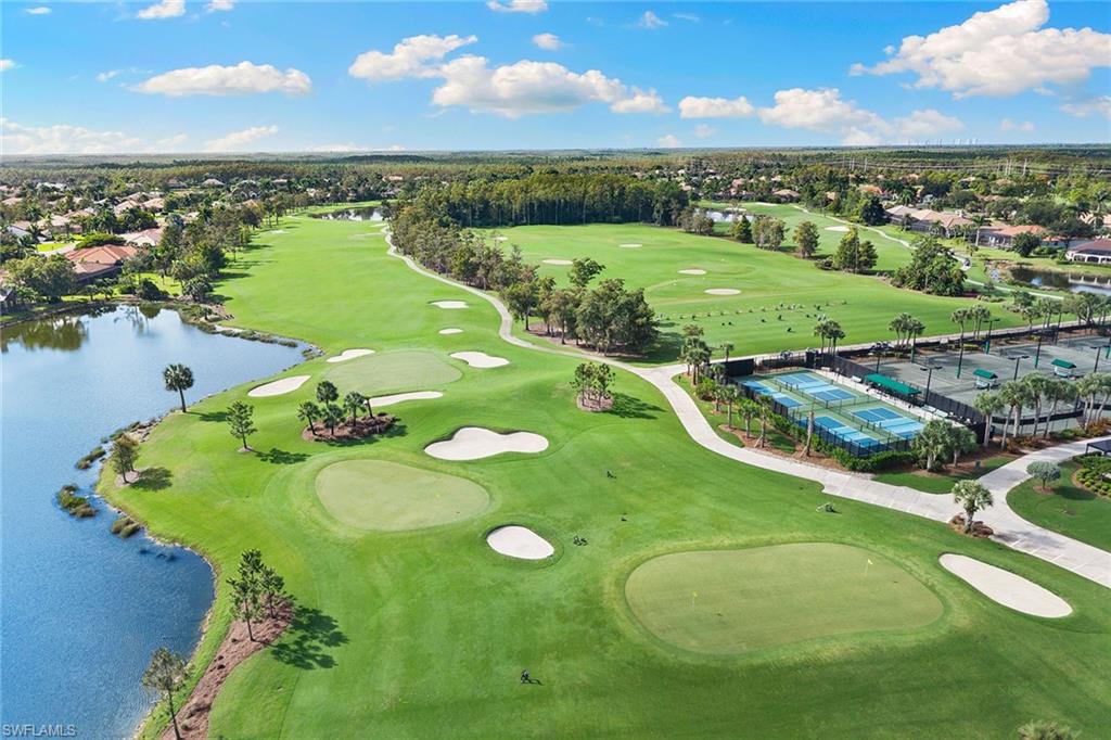 Discover luxury and serenity in this beautiful single-family home in the prestigious Wildcat Run Golf & Country Club, an exclusive gated community in Estero, featuring an Arnold Palmer Signature Golf Course. Boasting a new roof in 2019 and an air-conditioning system installed in 2019, plus a new hot water tank, this residence features a seamless open floor plan with two bedrooms plus a versatile den, and three full baths. The heart of the home includes a convenient breakfast bar, dedicated dining area with white shaker kitchen cabinets and a whole-house Kentico water system, ideal for everyday living and entertaining. Retreat to the primary bedroom, complete with walk-in closets and a spa-like en-suite full bath featuring a tiled shower and soaking tub. The den offers direct access to a full bath, adding flexibility for guests or a home office. The guest bedroom also has a full en-suite bath. Enjoy tray ceilings in main living area, freshly painted and new tile flooring in the bedrooms. Go outside to your private screened lanai, where a sparkling pool and spa await, protected by electric hurricane shutters and framed by breathtaking lake views that capture the essence of Southwest Florida living. Xfinity and water services are covered in HOA dues. Residents enjoy a wealth of amenities including five Har-Tru tennis courts, pickleball, bocce, a state-of-the-art fitness center, and a clubhouse with casual and fine dining options. Tucked between Naples and Fort Myers, it's ideally just two miles east of Interstate 75 off Corkscrew Road, providing easy access to Southwest Florida International Airport, Miromar Outlets, Coconut Point Mall, Hertz Arena and Florida Gulf Coast University.