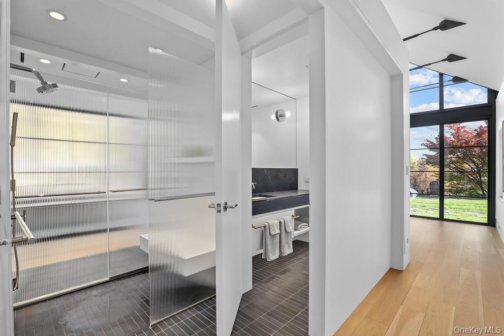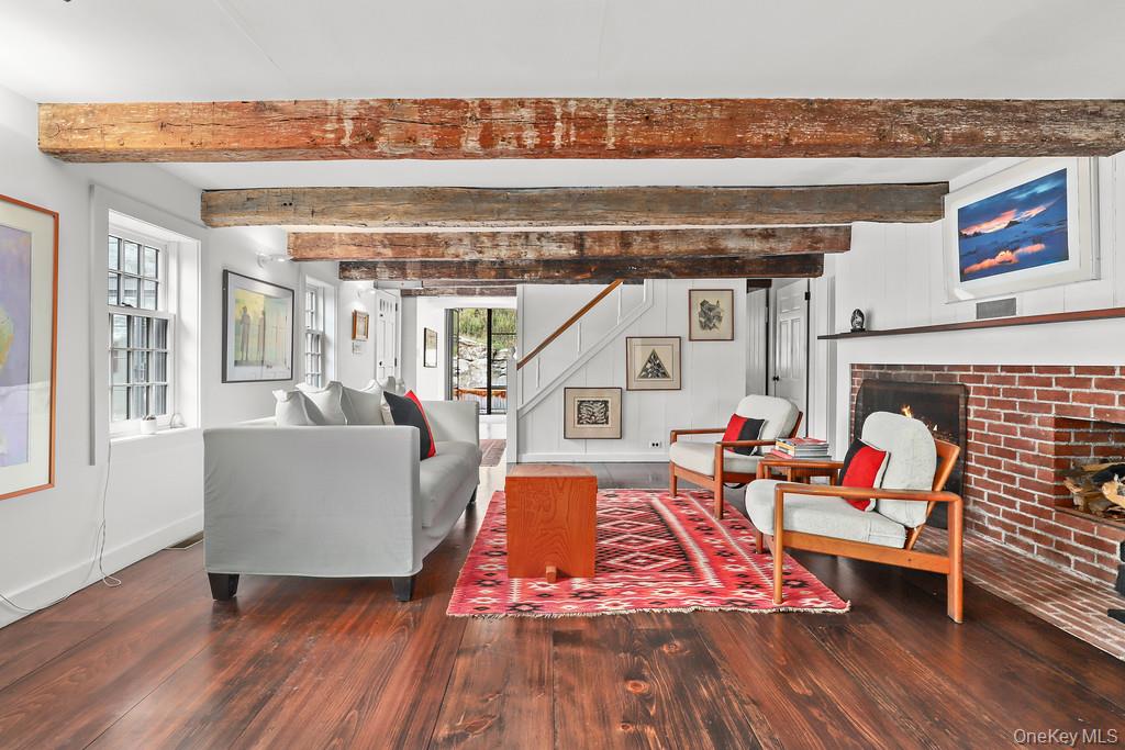 At the very end of a quiet country road, you'll find 56 Northrup — a stunning, architect-designed retreat blending 19th-century farmhouse charm with thoughtful, award-winning modern design. Originally built in 1870 and reimagined by NYC architects Neumann & Rudy, this 33-acre property includes a restored main house, a sleek single-story primary suite addition, and expansive grounds featuring a spring-fed pond, orchard, and private hiking trails. The architecture balances tradition and innovation, with a glass breezeway linking the historic structure to a stone and glass master wing—winner of multiple 2025 design awards. Large windows, wide doorways, and a barrier-free layout reflect both aesthetic and practical considerations for modern living and aging in place. Period details like exposed beams, wide-plank floors, and a kitchen fireplace ground the home in its heritage, while updates like solar panels and geothermal temperature control bring it into the future. The kitchen, framed by dark soapstone counters and classic cabinetry, opens to a large screened porch overlooking the backyard and pond. A brick fireplace and custom inset pantry bring both warmth and functionality. The home also includes a temperature-controlled 1, 000-bottle wine cellar, ideal for collectors. A two-story barn/garage offers additional workspace or storage. Outdoors, Stone Church Creek winds through the property on its way to the iconic Dover Stone Church Preserve, which directly abuts the rear boundary. This 175-acre protected park features over three miles of well-maintained trails and one of Dutchess County’s most photographed natural features: a dramatic waterfall spilling through a cave carved into ancient stone. With the preserve quite literally at the edge of the property, the connection to nature is immediate and immersive—offering an unmatched sense of privacy and place. Whether as a weekend escape or a full-time homestead, 56 Northrup is a rare blend of design, sustainability, and pastoral beauty—anchored by smart systems, architectural pedigree, and extraordinary surroundings.