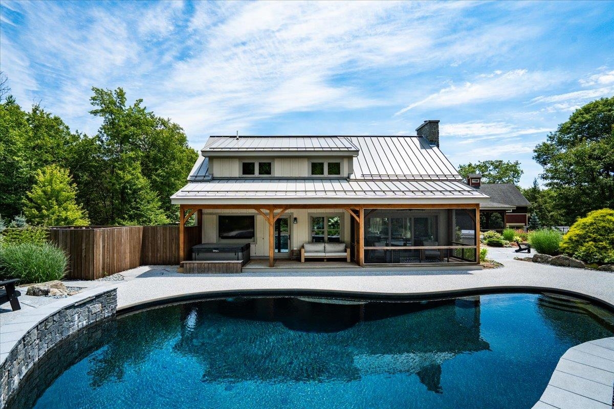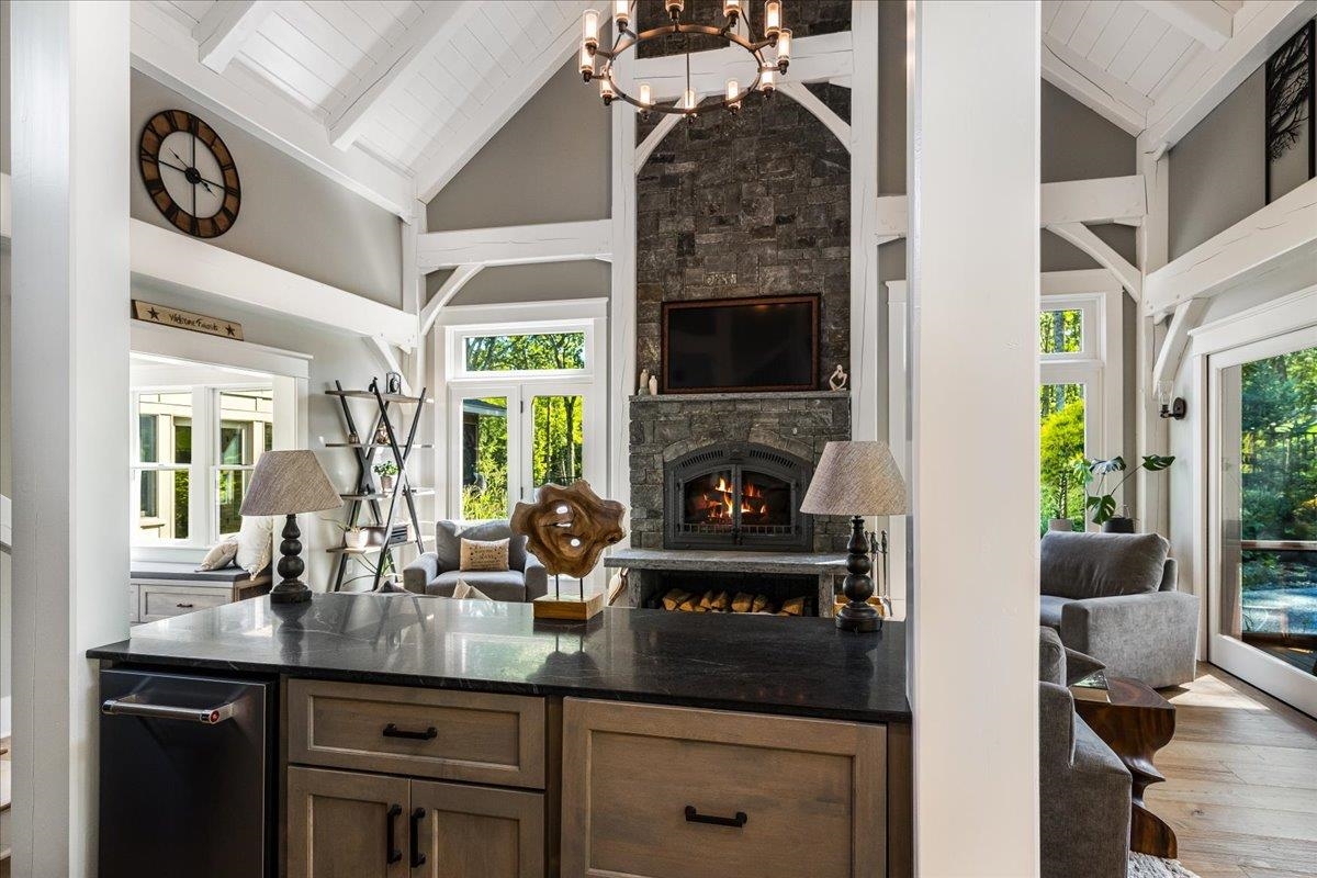 Every inch of this extraordinary home has been meticulously reimagined, torn down to the studs and completely rebuilt within the last two years, blending timeless craftsmanship with luxurious modern amenities. From the moment you step inside, the soaring ceilings, California hardwood floors, and custom finishes set an unforgettable tone. The main house features a chef’s kitchen designed for both entertaining and everyday living, a 1st floor primary suite, and a stunning guest wing anchored by a floor-to-ceiling stone fireplace. The flow from indoors to outdoors is seamless, leading to a resort worthy inground pool framed by lush gardens that create your own private oasis. The finished lower level offers a spacious entertainment room and a fully equipped home gym. A detached 3 story garage provides endless possibilities, with multiple levels for parking, storage, and hobbies. The top floor boasts a sun filled open concept in-law apartment with private laundry, accessible via a traditional staircase or a striking spiral staircase. An additional 5 bay garage ensures there’s room for every vehicle, tool, and toy. Set on over 13 acres of meticulously maintained grounds, this property is perfectly located near Pat’s Peak and Mount Sunapee, ideal for ski enthusiasts and surrounded by ample ATV and snowmobile trails for year round outdoor adventure. This is more than a home, it’s a lifestyle.