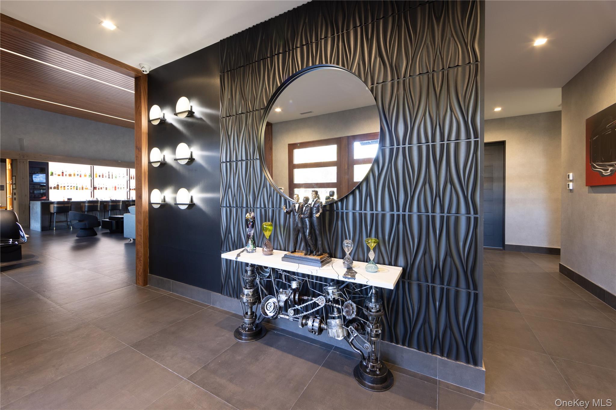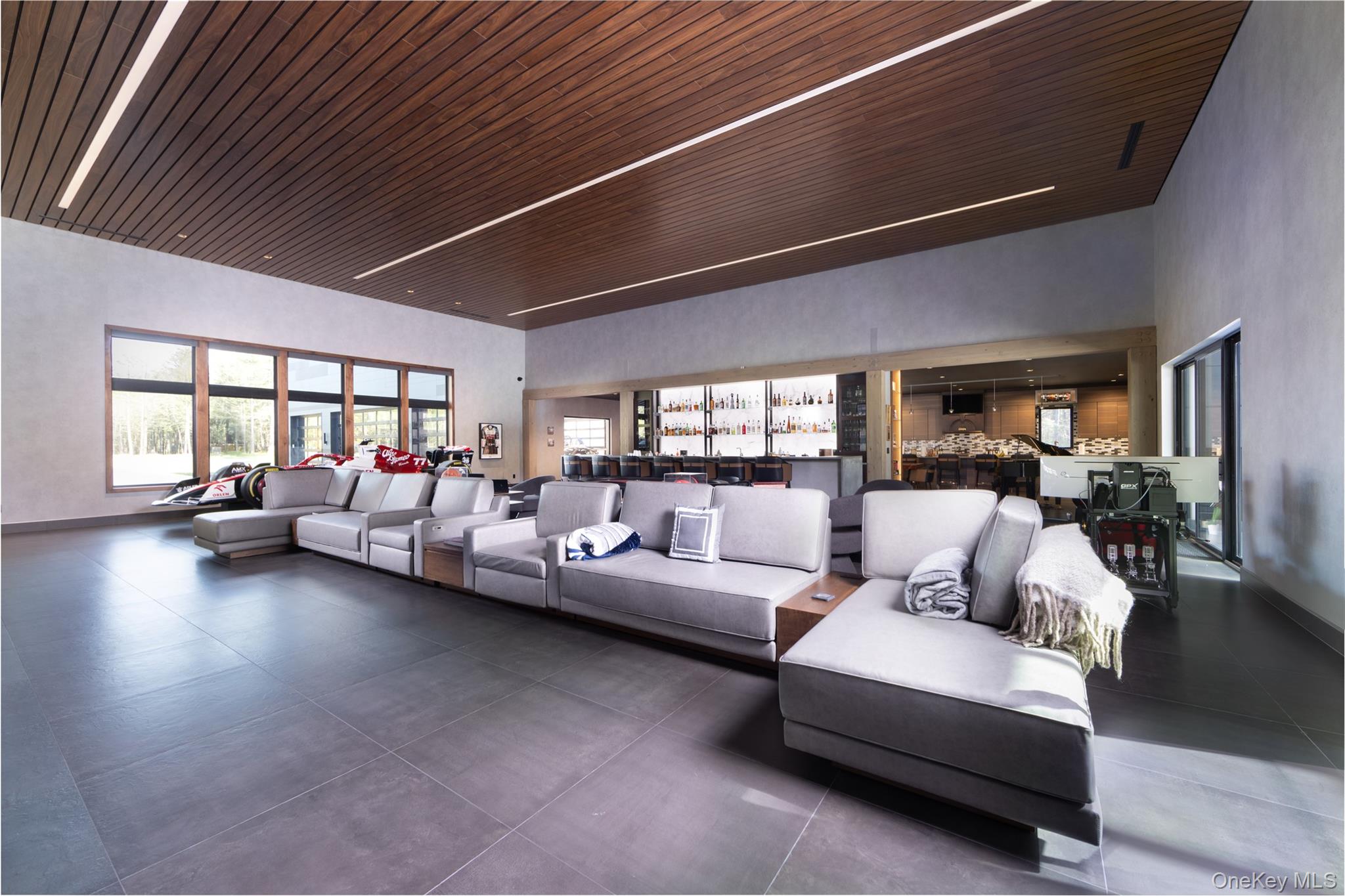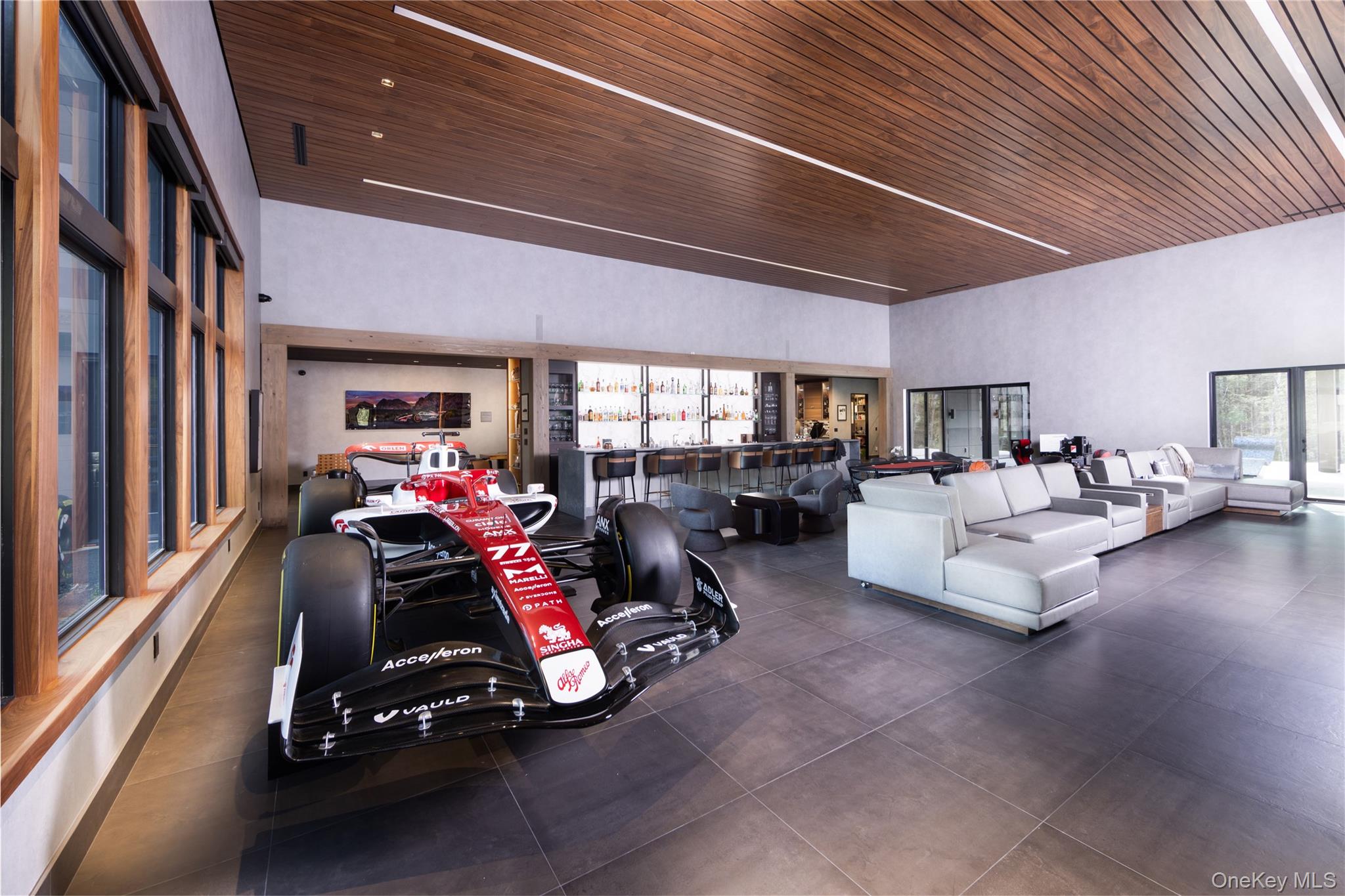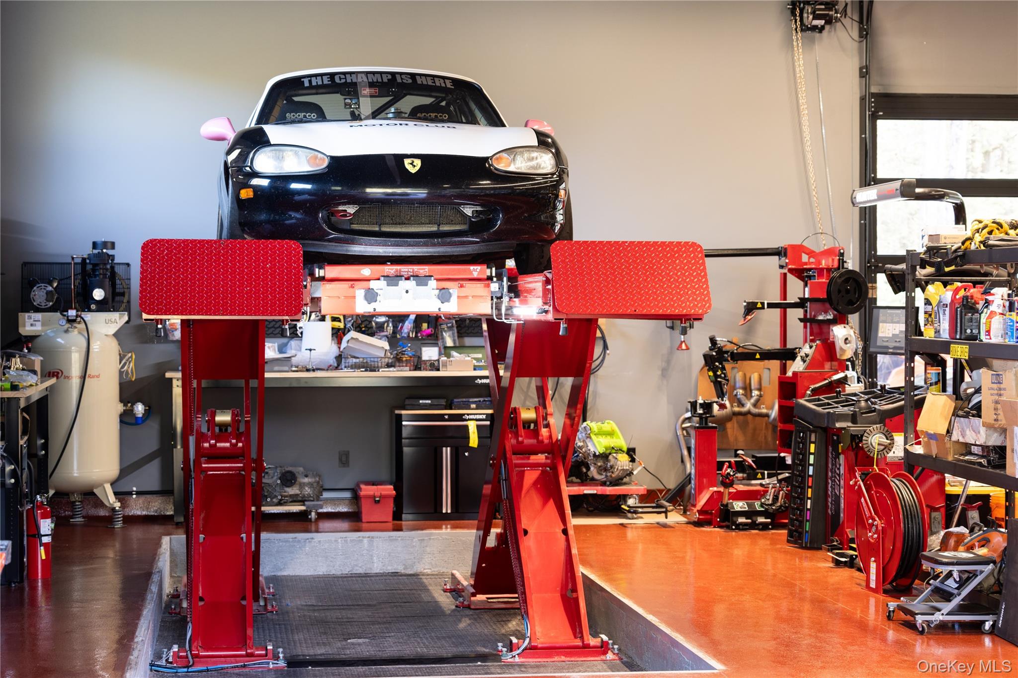 An Exclusive Masterpiece: 97 Serenity Lane, Monticello, NY 12701 A truly rare opportunity has become available within the prestigious, gated Motor Club Estates. This magnificent estate on 5 private acres offers an unrivaled blend of modern luxury, world-class technology, and automotive enthusiast facilities, all housed within an almost 8, 000 sq. ft. residence featuring 4 bedrooms and 4. 5 baths. No detail has been left untouched in this meticulously curated home. * also comes with a Gold Membership at the Monticello Motor Club. Interior Excellence & Technology Step inside to Italian porcelain flooring and experience a seamless flow enhanced by a Lutron automated lighting system and a whole-house Sonos audio system. The Great Room serves as the ultimate entertainment hub, boasting a breathtaking 149-inch Planar television wall and a sophisticated CertainTeed walnut acoustical ceiling. For the connoisseur, a climate-controlled, 300-bottle glass wine cellar provides a dramatic backdrop for entertaining. The custom chef’s kitchen features an oversized island with integrated wireless charging stations, perfect for casual gatherings, while the formal dining area centers around a stunning custom 18-person dining table. A true centerpiece for any motor enthusiast, the home proudly features a full-scale 1: 1 Alfa Romeo F1 Show Car display, blending high-octane passion with architectural design. Uncompromising Comfort & Sustainability The entire home ensures year-round comfort with geothermal heating and cooling (backed by electrical heat) and luxurious heated radiant flooring throughout. Furthermore, the property operates efficiently with Tesla solar power and backup batteries, providing superior sustainability and peace of mind. Every one of the four bedrooms is a private retreat, featuring its own exquisite en-suite bath. Outdoor Oasis Extend your living space onto the spacious covered outdoor patio. This al fresco haven is designed for year-round enjoyment, equipped with automated electric screens, an outdoor television, integrated speakers, and a cozy fireplace. Unwind on one of the three heated stone lounge chairs, offering a spa-like experience under the stars. The exterior is finished with maintenance-free Trespa siding, manufactured in the Netherlands. The Ultimate Garage & Workshop For the serious collector or mechanic, the garage is a facility built without compromise. It features a professional-grade setup including an Omer in-ground scissor lift with flip-up jacks, a Hunter tire changing machine, a Hunter wheel balance machine, and two Ingersoll Rand 80 gal air compressors. Utility is maximized with two Nitrogen tanks with hoses, ample tire storage racks, and a power washer with a hot/cold mixing valve. All of this rests on a durable stone hard floor coating, rated for 10, 000 psi. This property is more than a home; it is a lifestyle statement offering technology, luxury, and unparalleled amenities. Private showings are available upon request to qualified buyers.