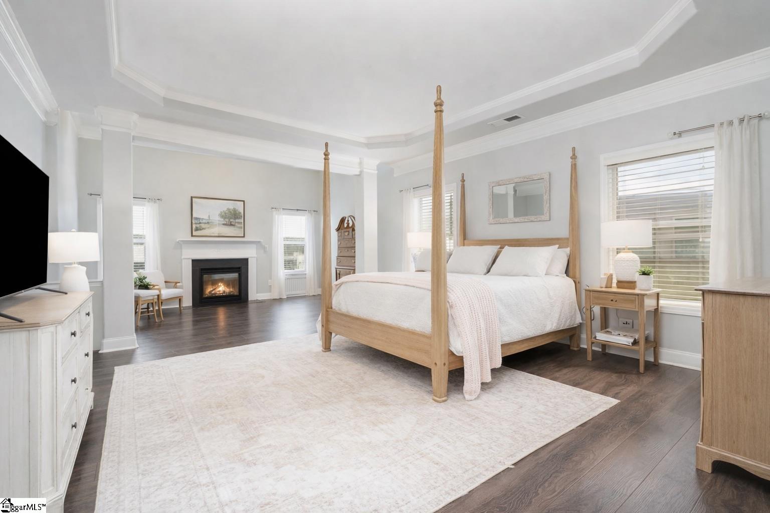 With 6 bedrooms, 3. 5 baths, more than 4, 100 square feet, a primary suite on the main floor, and Wren schools in the gated Airy Springs community, this truly special home blends elegance and comfort in a way that feels both luxurious and welcoming from the moment you arrive. A long stamped concrete driveway leads you to a beautiful brick, stone, and concrete siding home with manicured landscaping and timeless curb appeal. Step through the front door into a soaring two story foyer where the grand staircase, wainscoting, and rich flooring set the tone for the exceptional details throughout. To the right, a graceful arched opening leads into the formal dining room, where trey ceilings, tall wainscoting, and wide crown molding set a tone of refined luxury. From here, the dining room transitions seamlessly into the open concept kitchen and living area. Imagine mornings in the stunning kitchen, sunlight pouring across the granite countertops as you sip coffee at the large island surrounded by warm espresso cabinetry and stainless appliances. Conversations carry into the bright breakfast area and the spacious living room where tall windows lookout to peaceful views of mature trees. A stunning gas fireplace sits between floor-to-ceiling built-in bookcases and bathes the space in warmth. Whether you are gathered for a quiet night in or welcoming friends for a celebration, you will love the versatility of this open-concept main level. The main level primary suite feels like its own sanctuary with a peaceful sitting room and glow of your private fireplace. The spa style bath invites relaxing evenings with a deep soaking tub, spacious tiled shower, dual vanities, seated makeup area, and an oversized walk-in closet with generous space and his/her separation. Upstairs, the loft style media and recreation room offers endless possibilities with triple archways, a built in wet bar, and room for movie nights, game days, or a play and study space. 5 additional bedrooms and 2 bathrooms provide comfort and flexibility for family, guests, work, and hobbies. Outside, mature landscaping lines the back view that feels peaceful and inviting. Enjoy evenings on the covered patio perfect for grilling and entertaining. A 3 car garage and top tier neighborhood amenities including a large pool, ponds, and walking paths complete the setting. Homes like 5 Knob Creek Court are rare. Space to spread out, to gather, and a feeling that truly welcomes you home.