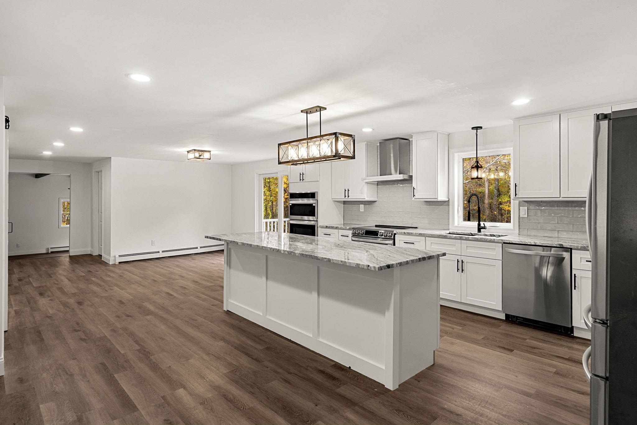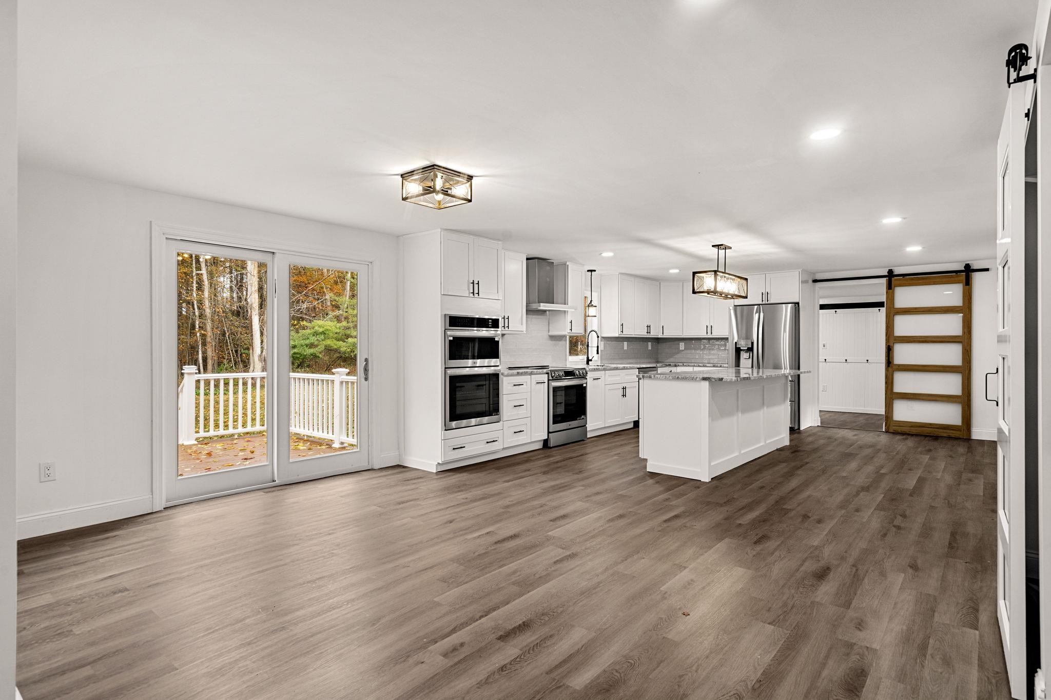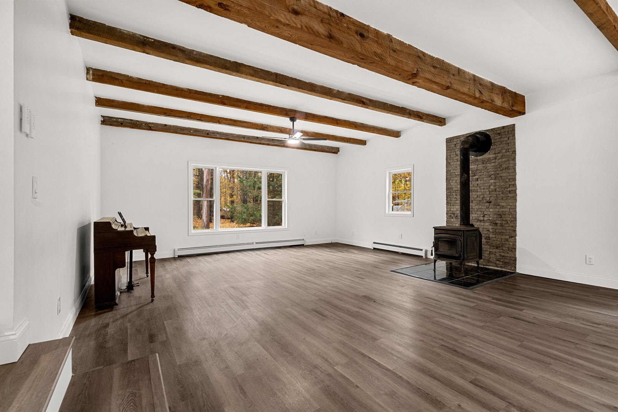 Don't wait, get into your new home before the holidays! This completely renovated farmhouse-style home blends rustic character with modern living. The first floor features an open layout with a large eat in kitchen, perfect for entertaining. Enjoy your sunken living room and cozy wood stove, creating the perfect gathering space. A flex room on the main level offers versatility—ideal for a home office, formal dining room, or additional bedroom. Upstairs, you’ll find the primary suite with three spacious bedrooms and an additional bathroom. Need more space? There is a bonus room above the garage, perfect for a movie room or teen suite. The 2 story barn is already equipped with electricity, water, and potential for a wood stove with existing chimney/venting. Set on 5 acres with a barn, walking trails, and access to Perkins Pond, this property offers a true country retreat. Tucked away in a peaceful, rural setting, this home offers true tranquility—yet it's just 7 minutes to local shopping and restaurants, 11 minutes to Dunkin’, and only 30 minutes to Manchester. Agent interest.