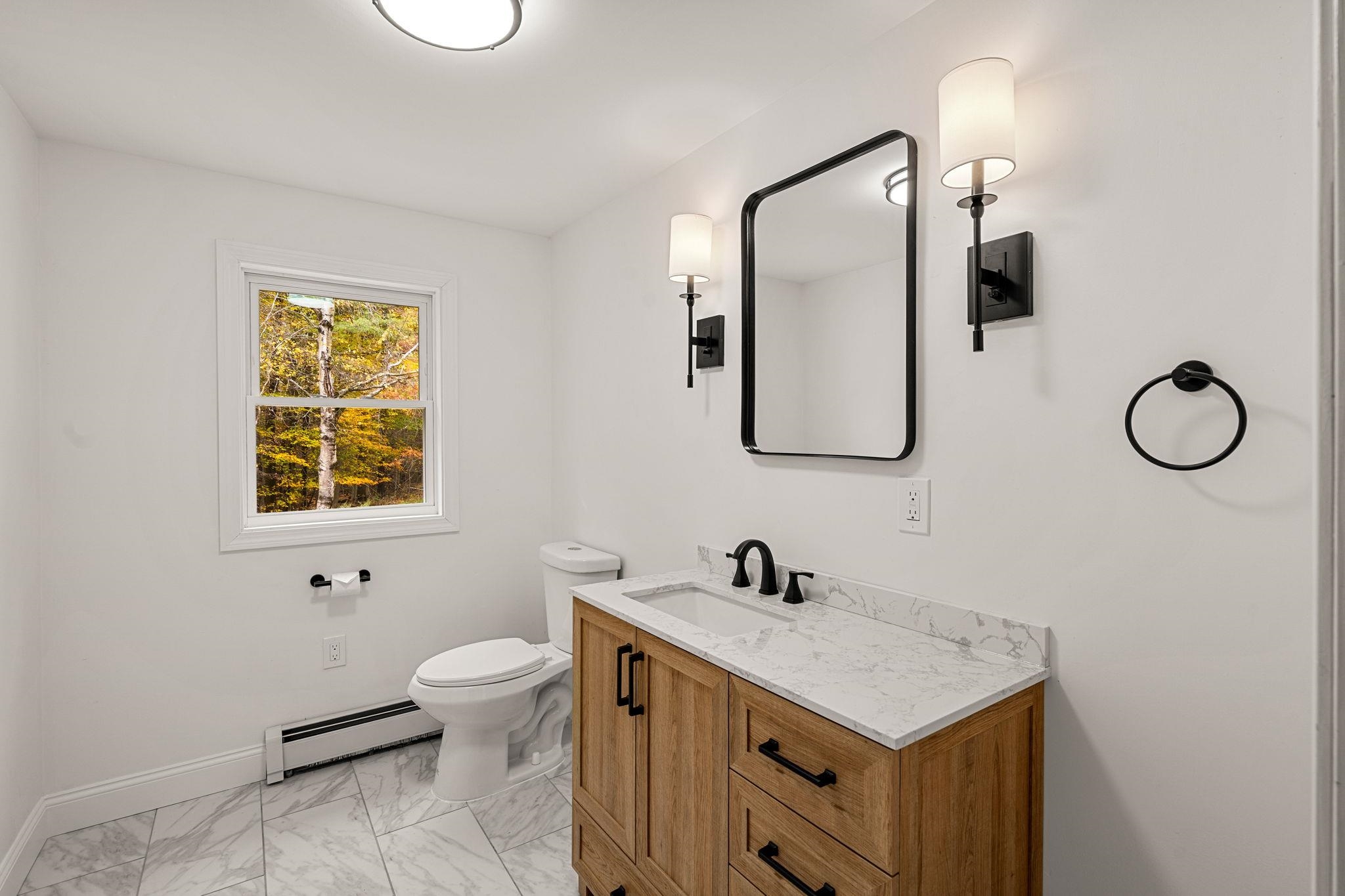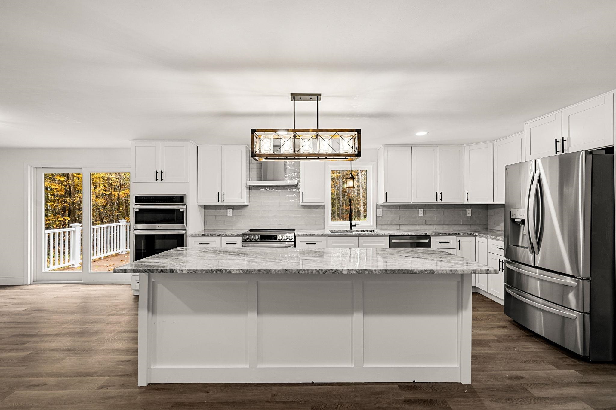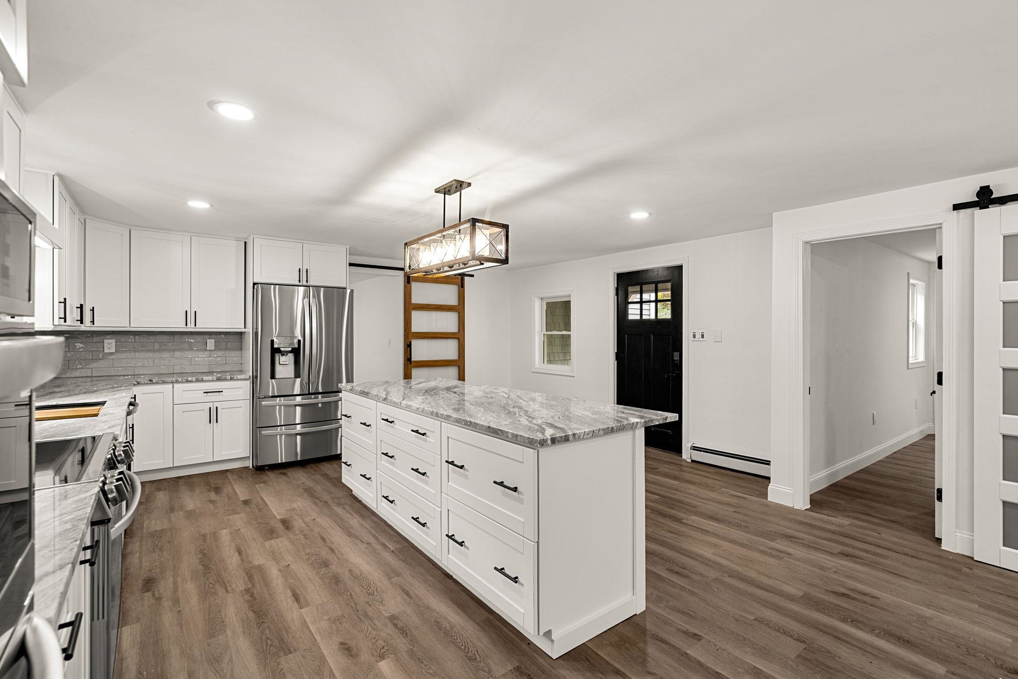 Don't wait, get into your new home before the holidays! This completely renovated farmhouse-style home blends rustic character with modern living. The first floor features an open layout with a large eat in kitchen, perfect for entertaining. Enjoy your sunken living room and cozy wood stove, creating the perfect gathering space. A flex room on the main level offers versatility—ideal for a home office, formal dining room, or additional bedroom. Upstairs, you’ll find the primary suite with three spacious bedrooms and an additional bathroom. Need more space? There is a bonus room above the garage, perfect for a movie room or teen suite. The 2 story barn is already equipped with electricity, water, and potential for a wood stove with existing chimney/venting. Set on 5 acres with a barn, walking trails, and access to Perkins Pond, this property offers a true country retreat. Tucked away in a peaceful, rural setting, this home offers true tranquility—yet it's just 7 minutes to local shopping and restaurants, 11 minutes to Dunkin’, and only 30 minutes to Manchester. Agent interest.