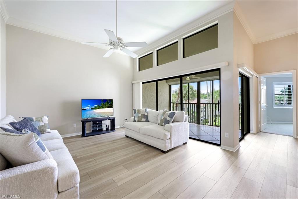 Gorgeous garden and fountain views from this third floor 3 bedroom 2 bath Valencia condominium. This wonderful property features 12 foot ceilings, upgraded living room flooring, upgraded kitchen and baths, a large screened lanai, access via elevator with private entry courtyard. The highly sought after community of Valencia is just steps from the Marker 36 parking lot, the Commons, tennis courts and South Beach tram. While residing in this delightful residence, you’ll experience unrivaled amenities that encompass the Pelican Bay lifestyle. The trams provide scenic transportation through protected nature preserves to a stretch of private beach with extraordinary gulf-side dining. Additionally, Pelican Bay offers a wellness center, world-class tennis, social and cultural events, sailing, canoeing, kayaking, fishing, art/studio classes, bridge and more. Shopping, more dining, and the arts are also just around the corner at the Waterside Shops and Artis-Naples.