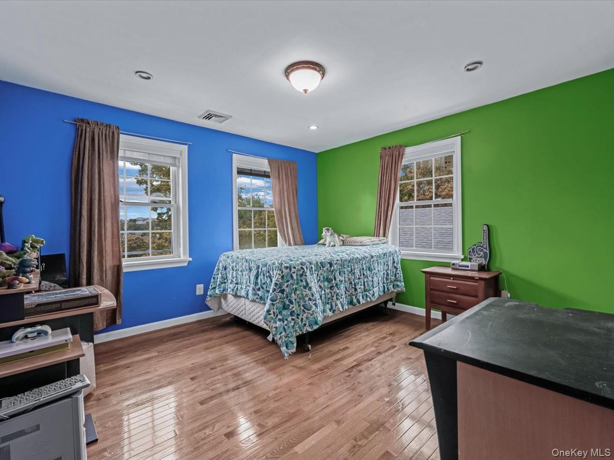 Situated in the sought-after Homefield neighborhood, this beautifully maintained residence offers generous living space, elegant design, and serene hillside views. From the moment you arrive, this home impresses with its charming curb appeal. Inside, you’ll find a grand front entrance leading into an impressive double-height hallway and stairwell accented by a Venetian window that fills the space with natural light. The main level features a well-appointed kitchen with a peninsula, a bright breakfast area, and a large formal dining room. The generously-sized living room opens to an upper deck through wide sliding glass doors. A first-floor bedroom and full bath provide additional convenience for guests or multi-generational living. Upstairs are four spacious bedrooms, including a luxurious primary suite with two oversized walk-in closets and an en-suite bath featuring a stand-up shower and jacuzzi tub. Additional bathrooms echo the same level of luxury, with three jacuzzi tubs throughout the home. Each bedroom occupies a corner of the home and has multiple windows capturing abundant daylight. The finished basement offers approximately 500 square feet of additional living area, including a family space, gym area, and pool-table section, with direct access to the backyard patio and an expansive lower deck. Perched on an elevated lot, the property enjoys far-reaching views over the neighborhood rooftops and treetops, framed by an open skyline. With its grand proportions, thoughtful layout, and commanding outlook, this home captures the essence of refined suburban living.