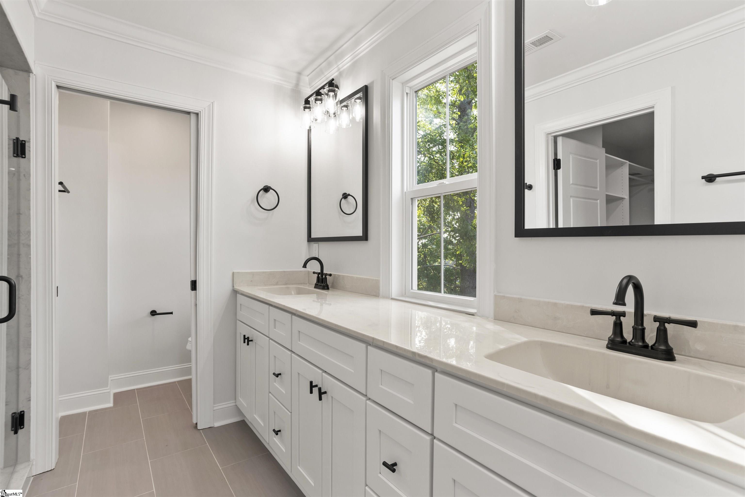 New construction move in ready home! Augusta Road area! Kids can walk to schooland you can get to downtown Greenville in less than 10 minutes. New construction with lots of custom features. The kitchenis a dream with lots of light, tons of workspace and plus a walk in pantry. The kitchen features roll out shelving for can goods, roll out trash can holder, lazy susan corner cabinet, crown moldings and soft close cabinet drawers and doors. The granitepatern on counter top and island has a hint of color to give the great room a warm and welcome feeling for intertaining. Thegreat room has a decorative wall, gas log fireplace, built in cabinet and 9' ceilings. There is a full size laundry room withcabinets and a drop zone at the side door next to the driveway. The book bag handers or coat hangers are already in place. The foyer opens to a beautiful wide staircase that has hardwood steps and open pickets to overlook the foyer. Upstairs arethe three bedrooms that are generous size. The primary bedroom has an elegant bath with a long dressing vanity, doublesinks and a classic marble shower with a seamless glass door. The out side has plenty of parking and turn