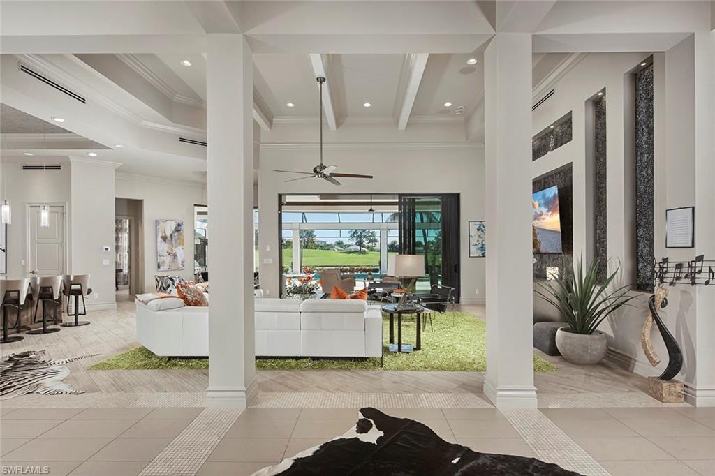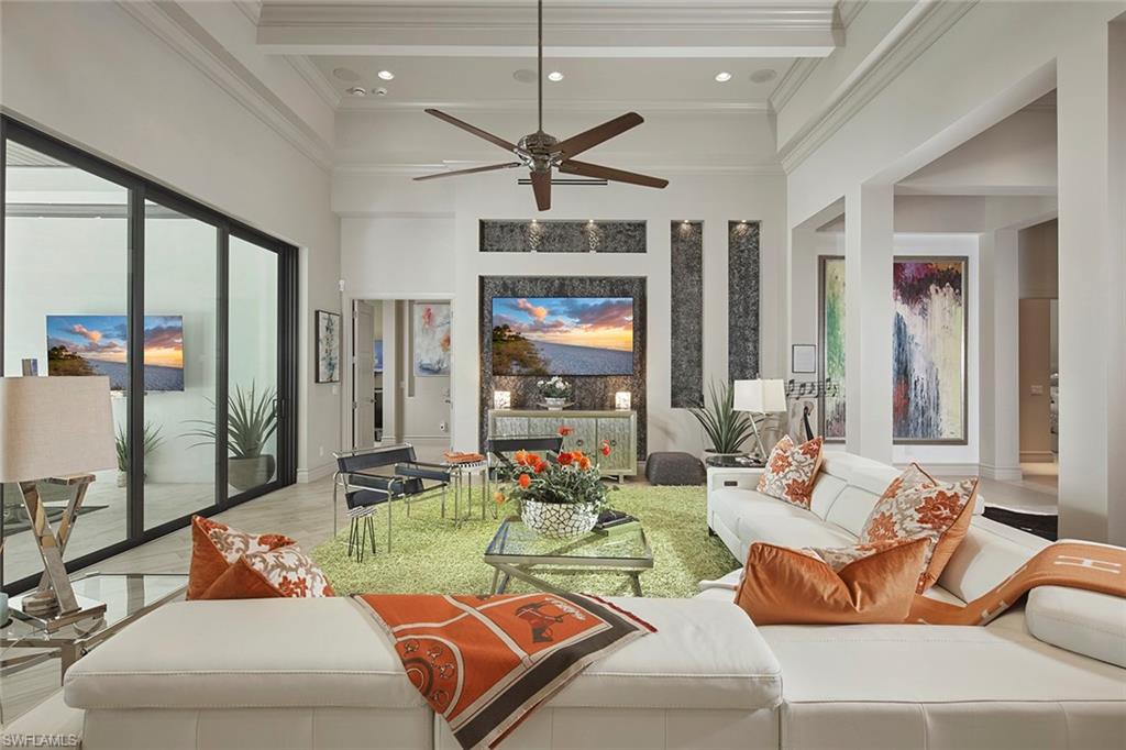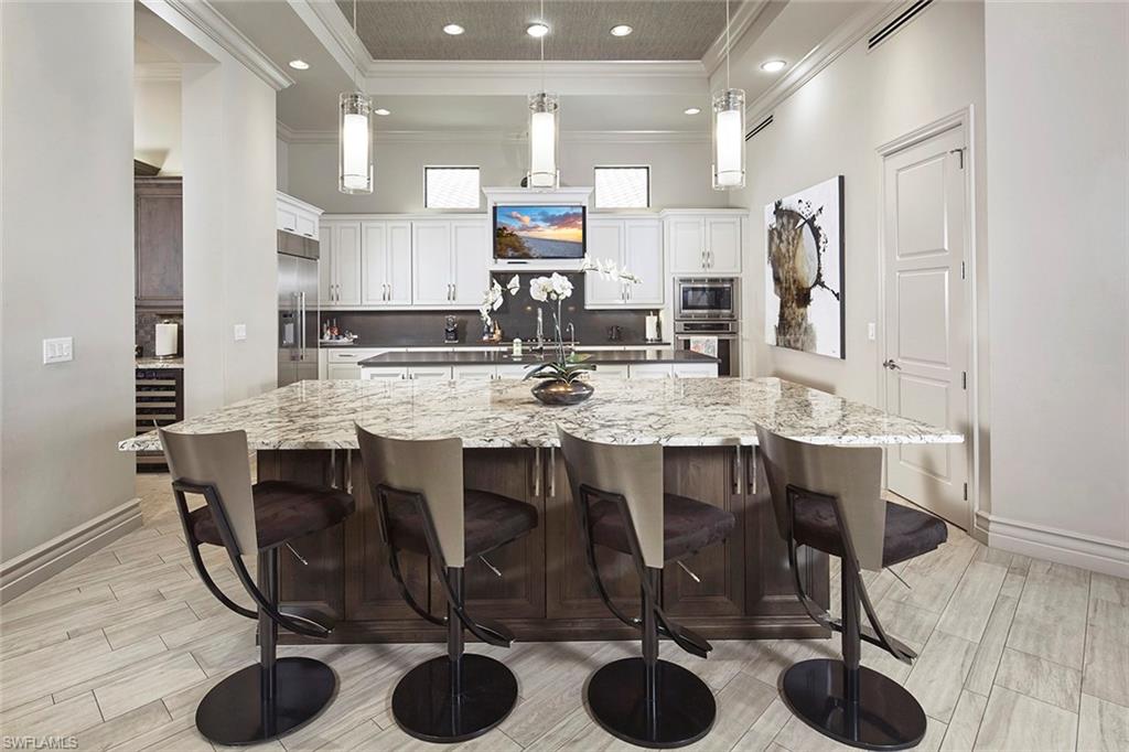 IMMEDIATE GOLF MEMBERSHIP with golf cart. A southern exposure, Model-home provenance on one of the most desirable street in Talis Park, this 3-bedroom with den/office/flex space coastal retreat presents a 180° panorama across a shimmering pond—where bald eagles and pelicans dip into for a bite—sitting on the Newly resurfaced Dye/Norman–overviewing of the 8th fairway, setting a distinctly Resort tone. Inside, 14-foot vaulted ceilings and expansive glass bathe the interiors in natural light, while an entertainer’s kitchen—with double islands, double wall ovens, and refined designer finishes—flows seamlessly into a 29'×20' great room with floor to ceiling glass sliders giving Florida living at its best, full bar, and dining area; the private owner’s suite offers a generous bath & separate dual headed shower area, complemented by two en-suite guest rooms, all with walk-in closets, and a discreet office/den/flex space room . Beyond, a screened outdoor pavilion presents two lounge areas anchored by a fireplace/TV and a well-appointed summer kitchen with dining , all overlooking a pool SECLUDED from "cart paths" with a pond view for rare privacy; three Air-conditioned garage bays with custom built cabinets , newly electronic Auto/wifi CAT-5 Hurricane shutterblinds, Brand new whole house generac generator, pool heater & main AC has been replace last year, completes this residence. Home being sold furnished.