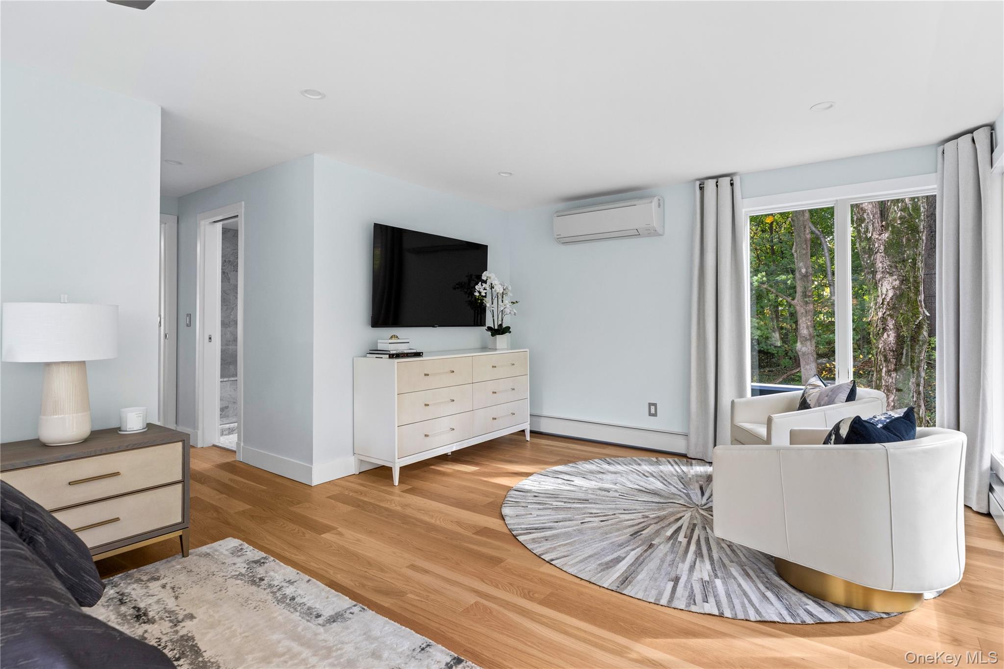 Experience architectural artistry at its finest at 25 Wood Road, a spectacularly reimagined residence originally designed by the legendary I. M. Pei, whose visionary works include the Louvre Pyramid in Paris and the Bank of China Tower in Hong Kong. Seller is willing to hold first mortgage / seller financing option is available! Set amid a lush, park-like 3. 6-acre lot in the coveted Harbor Acres community of Sands Point, this exceptional home offers the ultimate in privacy and serenity. Tucked away at the end of a long, tree-lined drive, the property evokes a seamless connection between elite modern architecture and the natural landscape. The striking modernized mid-century facade, finished in a rich blue hue, integrates a natural boulder within its structure - an homage to the organic design principles that define Pei’s timeless aesthetic. Inside, discover an environment of refined sophistication and effortless flow. Expansive floor-to-ceiling windows flood the interiors with natural light, highlighting the beautiful hardwood floors, soaring ceilings, and two sculptural marble fireplaces. The open-concept layout showcases a fully redesigned chef’s kitchen with dark wood cabinetry, featuring a large center island, premium appliances, and bespoke finishes throughout. The residence offers three spacious bedrooms, two and a half luxuriously appointed bathrooms, and an attached two-car garage. A striking floating glass staircase leads to a sprawling ground-level den - a versatile space easily convertible into a third bedroom, media space, or playroom. Outdoors, the experience continues with two expansive top-floor decks, a brick-enclosed patio, and a restored reflecting pond, creating idyllic spaces for entertaining or quiet contemplation. Residents enjoy access to exclusive neighborhood amenities, including the Harbor Acres Beach Club (available by membership) and private clay tennis courts. Situated within the esteemed Port Washington Union Free School District, this architectural treasure offers the rare combination of world-class design, natural beauty, and elevated North Shore living.