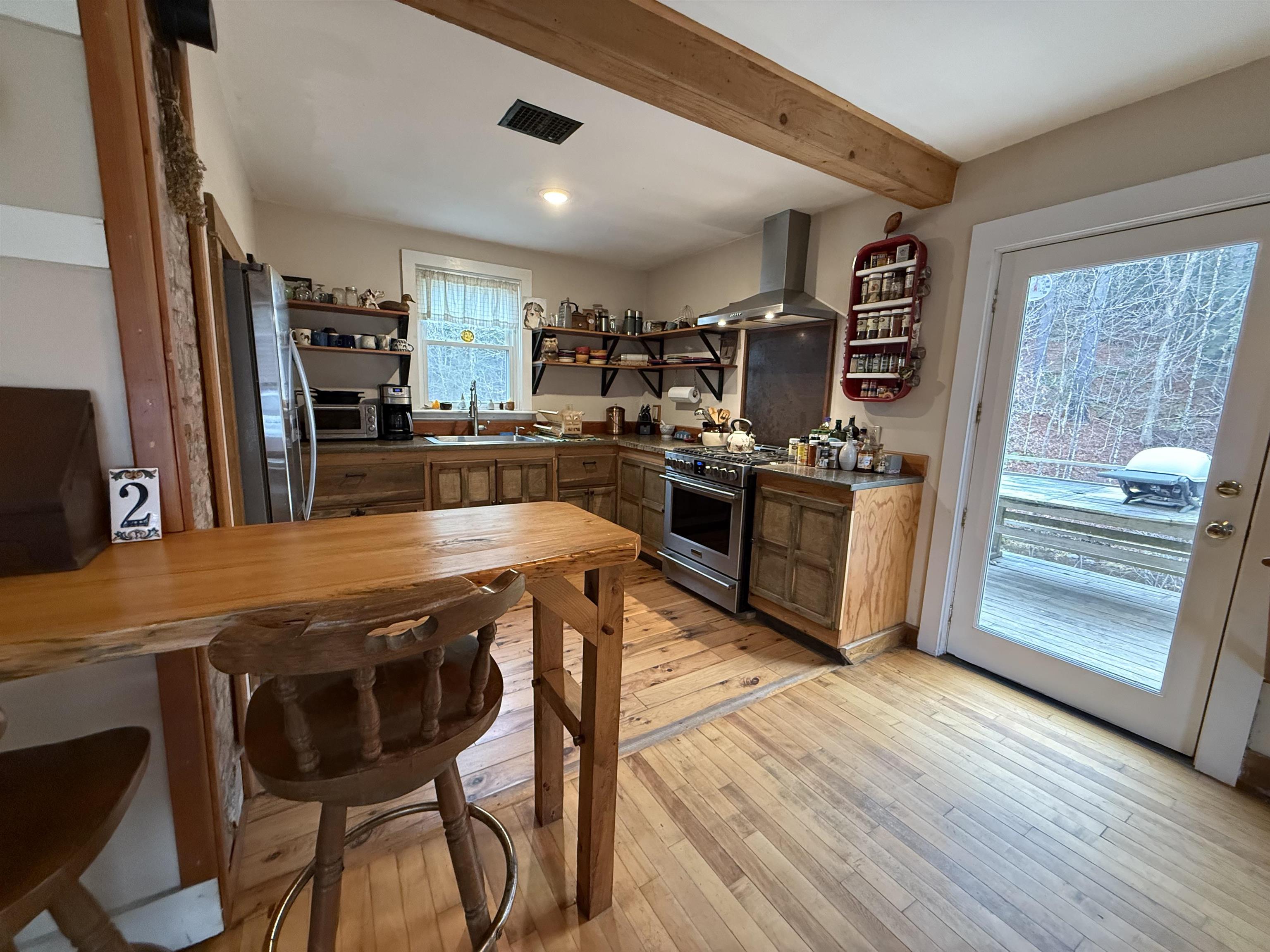 The perfect set up to live in a charming country home and enhance your finances with rental income OR open this farmhouse up for a larger single family home. Updated and well cared for! Hardwood and softwood floors, custom kitchen, lots of character, deck overlooking the brook and waterfall. A separate barn, garage and a chicken coop to round out the country life. All located near NVU and Smugglers Notch. Lots of character! *not in a floodplain but the benefit of a brook with waterfall and your own swimming hole*