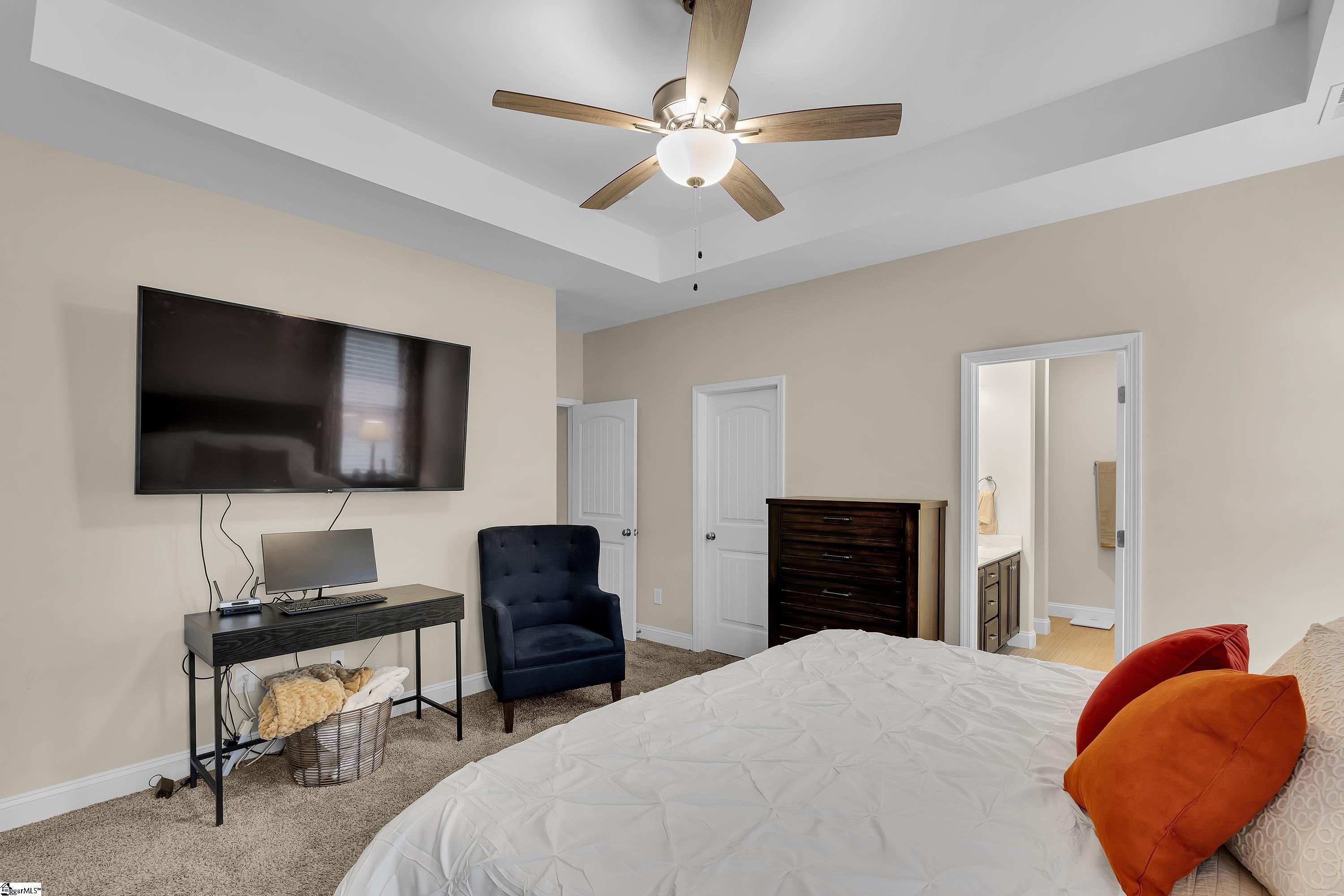 The Village at Anderson Mill! One of the newer and nicest neighborhoods on the westside of Spartanburg count in Moore. This home is very nice and shows like new. It has 3 bedrooms on the main ?oor and 2 full baths! The upstairs had a bedroom full bath and a ?ex room that could be used as an office or extra bedroom. This home is in a cul-de-sac and as you approach the entrance there is a covered front porch. You enter the foyer that opens to the formal dining room. The kitchen is equipped with a bar style island made with granite counters, mahogany cabinets and stainless steel appliances. The greatroom has a gas-log fireplace. There is a private L shaped hallway to enter the bedroom side of the home. The owner’s suite is located in the rear for privacy. The owner’s bath has a garden tub, separate shower and double sink. The rear of the home has a nice covered back porch. The backyard has a nice wood privacy fence with great yard place for playing and entertaining. The neighborhood has a really nice community pool and this home is waiting on you. Come see this home today! It is in Dist. 6 and conveniently close to schools, shopping and medical facilities. Won’t last long with this much to propose.