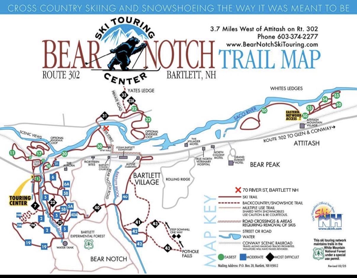 ON THE SACO! - Just a short stroll from Bartlett Village, this stunning Lincoln Log home sits on nearly 9 acres of natural beauty with an incredible 1, 000 feet of Saco River frontage. Inside this single-level White Mtn oasis you will find 2 bedrooms, 2 baths, a bonus room and a spacious rec room with its own private entrance, cathedral ceiling and a kitchenette perfect for additional guests or entertaining. The eat-in kitchen comes equipped with a new fridge and dishwasher, and the living room boasts another cathedral ceiling plus a cozy wood stove for the colder months. The recently remodeled primary bath features a spa-like double walk-in shower with glass barn door enclosure tucked separately from the double vanity. In the summer enjoy the luxury of your own private beach with mountain views of Attitash and Bear Peak, and when the snow flies grab your snowshoes or cross-country skis to enjoy the trails from your doorstep. The property is beautifully landscaped with vibrant perennials, mature berry bushes, and an oversized garden space ready for next season's harvest. Thoughtful and extensive updates include a new roof, Anderson French doors, front door, new deck prewired for a hot tub, garage doors, boiler, water heater, luxury vinyl plank flooring, carpet, and a freshly paved driveway. Located in low-tax Bartlett, moments from vibrant North Conway and Attitash Mountain Resort, and under 30 minutes to four premier ski destinations, this home is a gateway to year-round adventure.
