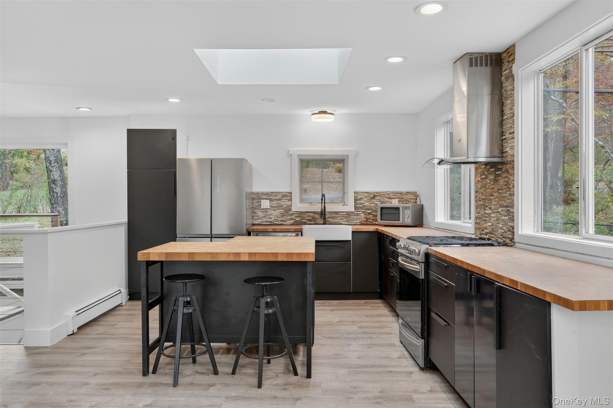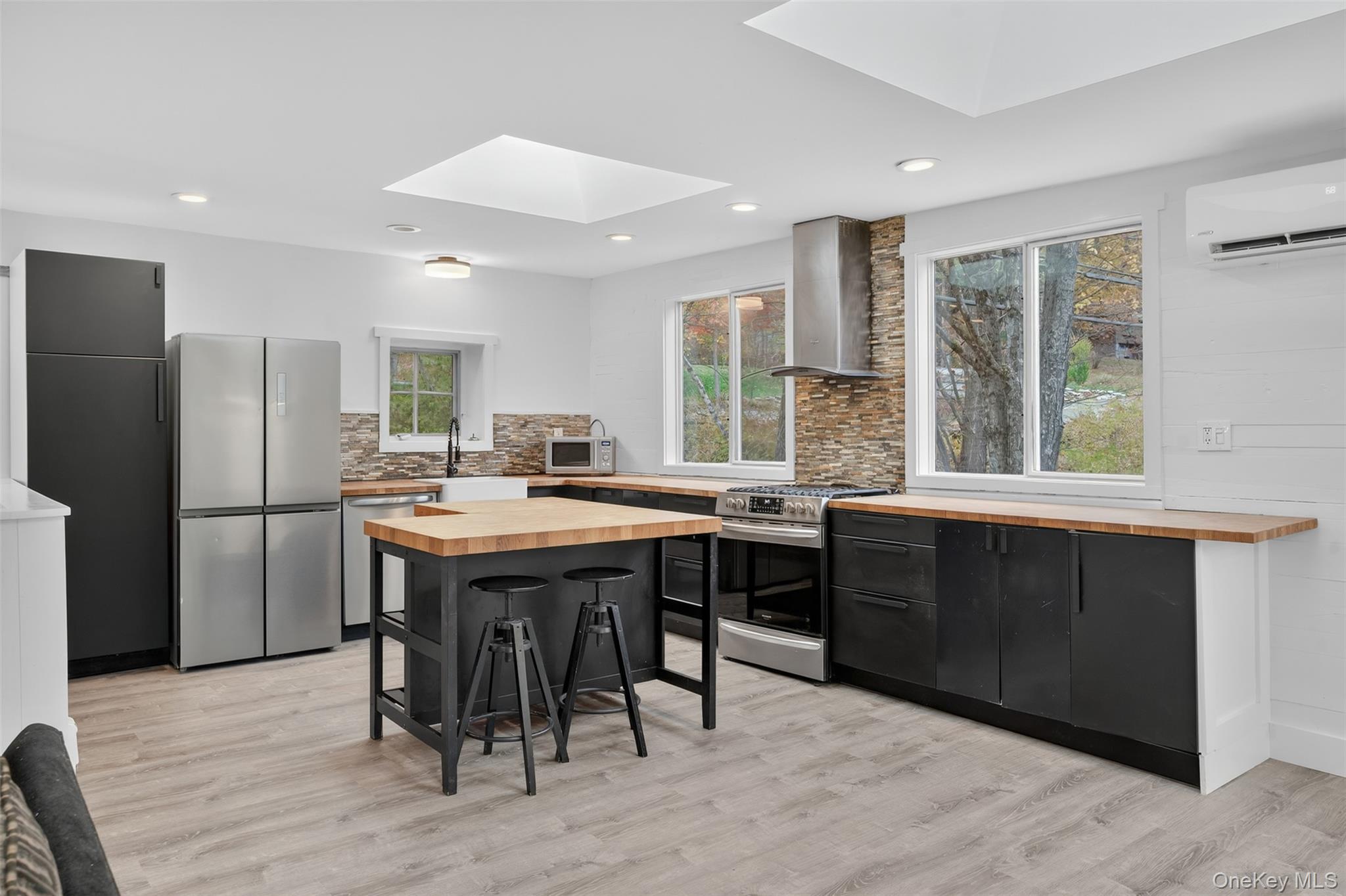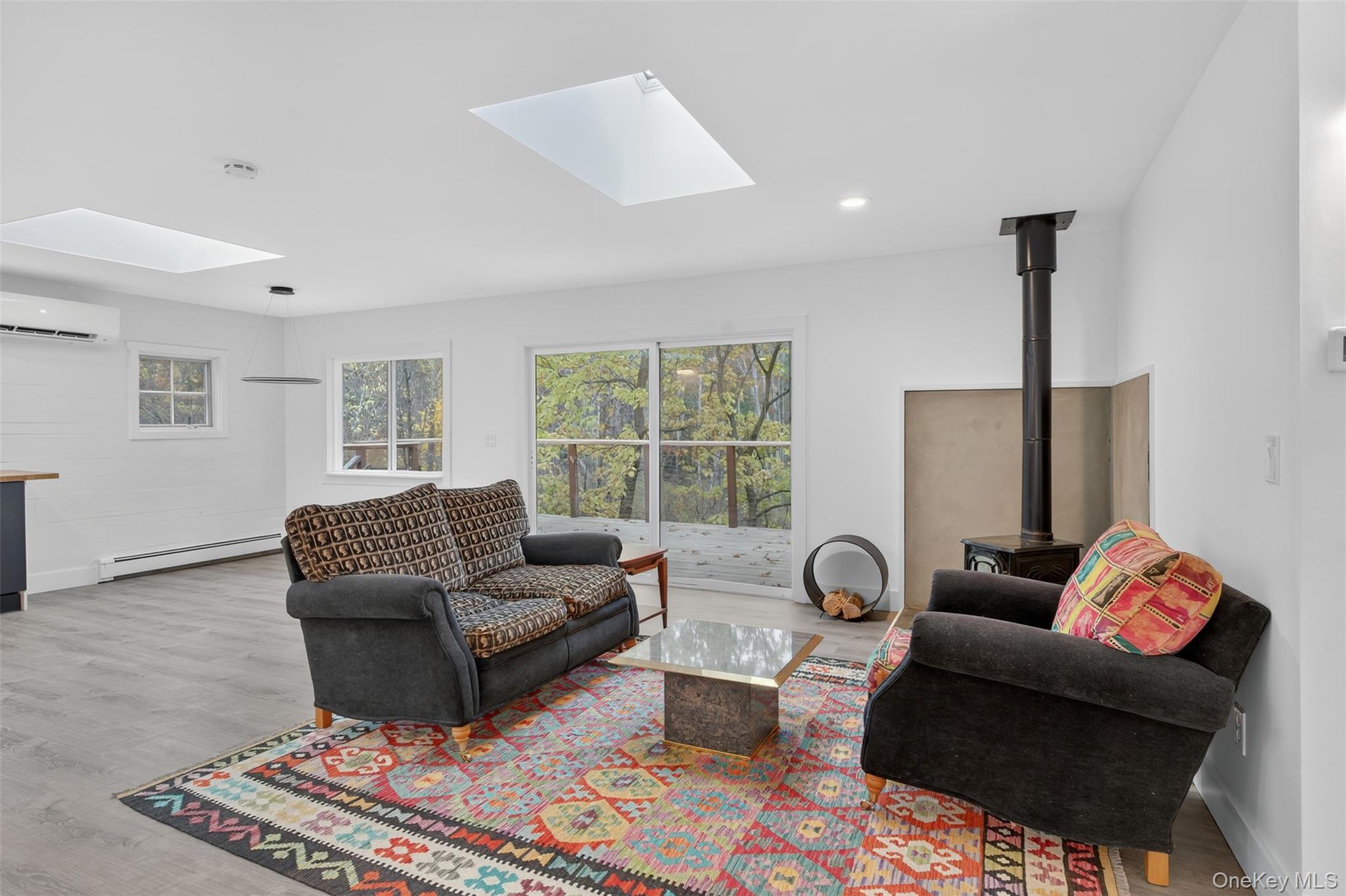 Welcome to your fully reimagined 2025 Catskills retreat—move-in ready the moment you turn the key. This light-filled home has been updated top to bottom: energy-efficient windows, updated electric and plumbing, mini-split climate control, on-demand hot water, newer roof and a whole-house generator that keeps the lights on no matter what. Inside, fresh flooring, crisp paint, new trim and doors flow from room to room. The kitchen gleams with refinished counters, updated cabinetry, stainless appliances, and a wood stove for supplemental heat to keep you toasty all winter long. Step through the sliding glass door onto freshly stained decks overlooking seasonal mountain views and a fully fenced backyard—your private playground for pets, kids, or sunset dinners. Tucked on the edge of the Ashokan Reservoir (a 3-minute stroll to the Rail Trail and Boiceville Bridge), this is Catskills serenity with zero sacrifice on convenience. Kingston’s waterfront restaurants, UPAC theater, and Hannaford are just 18 miles away; Woodstock’s galleries and live music are 10 miles down the road; New Paltz climbing walls and breweries sit 33 miles east. Groceries and Dunkin’ are 2 minutes from your driveway, yet hundreds of acres of protected forest wrap the property in quiet only the mountains can provide. Primary residence or a weekend escape, this home checks every box. Schedule your private tour today
