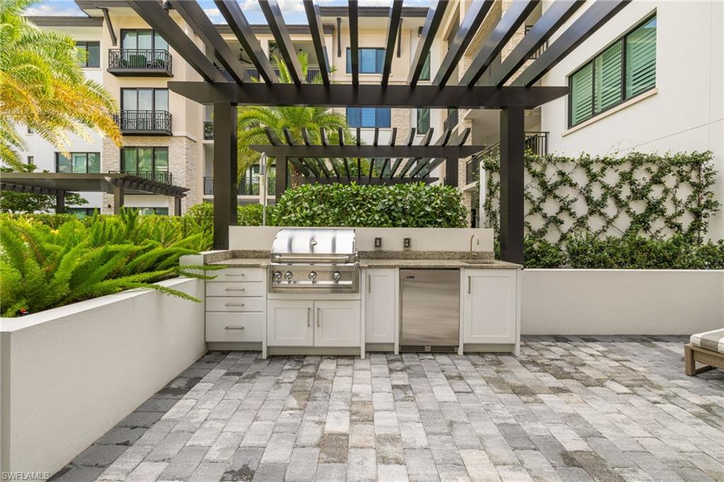INCREDIBLY RARE & EXCLUSIVE RESIDENCE IN THE COVETED “QUATTRO AT NAPLES SQUARE” WITH UNBELIEVABLE APPROX. 900 SQ FT EXTENDED PRIVATE TERRACE, EXCLUSIVE ONLY TO 2ND FLOOR UNITS, INCLUDING PRIVATE SPA, PRIVATE GAS FIRE PIT WITH SEATING AREA, & FULL PRIVATE OUTDOOR GAS KITCHEN! ALL THE OUTDOOR SPACE OF A SINGLE-FAMILY HOME WITH THE CONVENIENCE OF A CONDO! The rare ESPADA floor plan is the only in the building with two balconies & with windows in the kitchen, providing gorgeous natural light throughout! The outdoor courtyard is perfectly located in the back corner of the building’s courtyard, for the most private location available! This luxurious 4 bed+ den residence was completed by Ronto Group in 2023 & has been lovingly maintained & very seldomly occupied. Boasts endless custom upgrades such as hardwood floors throughout entire unit, high-end designer light fixtures, 10’ ceilings, impact glass windows, custom built-ins & dropped ceiling tray, custom window treatments/shades, whole house water filtration/conditioning & more. The chef’s kitchen offers a Sub-Zero/Wolf appliance package (natural gas cooking) with upgraded Calacatta Gold quartz counters & seamless backsplash, all upgraded custom cabinet/drawer inserts & adjacent wet bar with wine fridge & Moen fixtures. Also includes two garage parking spaces, storage unit & access to all the exceptional amenities of the Quattro building and Naples Square including resort-style pool with firepit & grilling area, fully-appointed social room with kitchen & billiards table, fitness center. Perfectly a short walk to the renowned 5th Ave S. shops & dining, 3rd Street’s amenities, world-class beaches & parks.