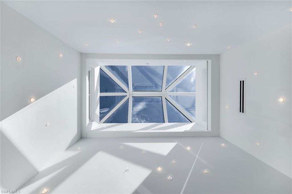 Additional features include an elevator with Swarovski accents, Crestron home automation, and a LightTouch lighting system throughout. The lower level provides a versatile living area with a steam room and direct access to the pool and dock—ideal for guests or a private wellness retreat.