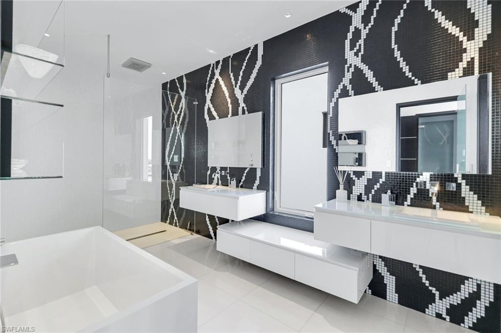 Every detail reflects European precision and design, from the custom Bartels German interior doors to the Bisazza mosaic tile bathrooms in each ensuite. The primary suite elevates luxury with gold-leaf Bisazza tile and sweeping bay views. A state-of-the-art cinema room offers a 120” screen, 3D anamorphic projector, Bang & Olufsen sound, and Swarovski crystal lighting for an immersive experience.