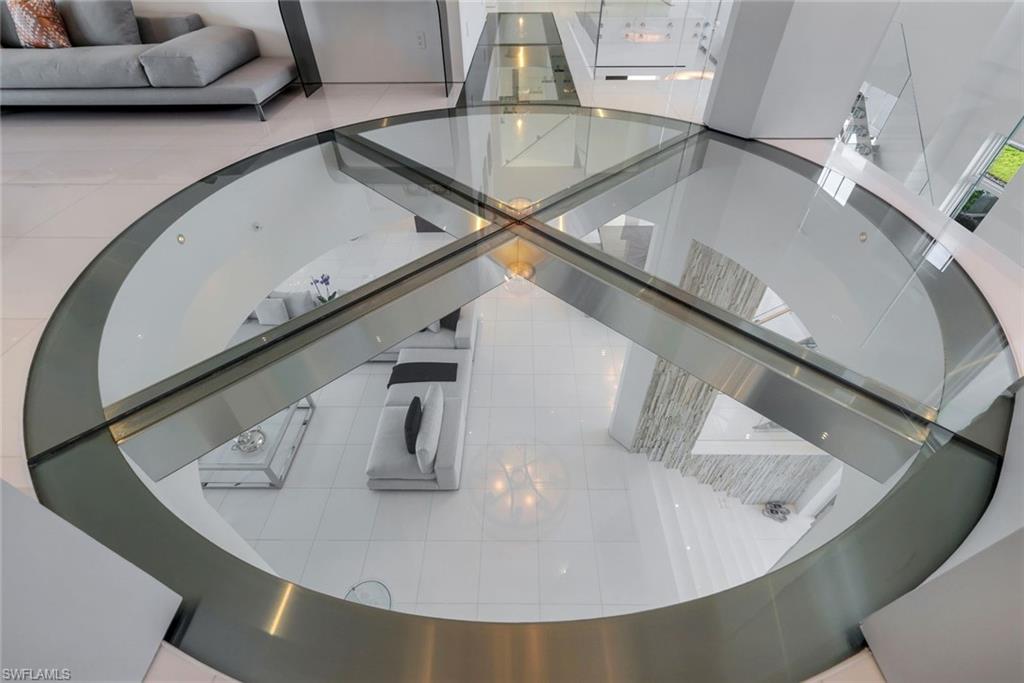 Four levels of inspired design showcase panoramic bay views through walls of glass and expansive terraces that capture the essence of indoor-outdoor living. The exterior sets a bold tone with a granite paver driveway, a 3-car garage featuring frosted glass doors, stainless balcony railings, and a striking glass-and-steel staircase.