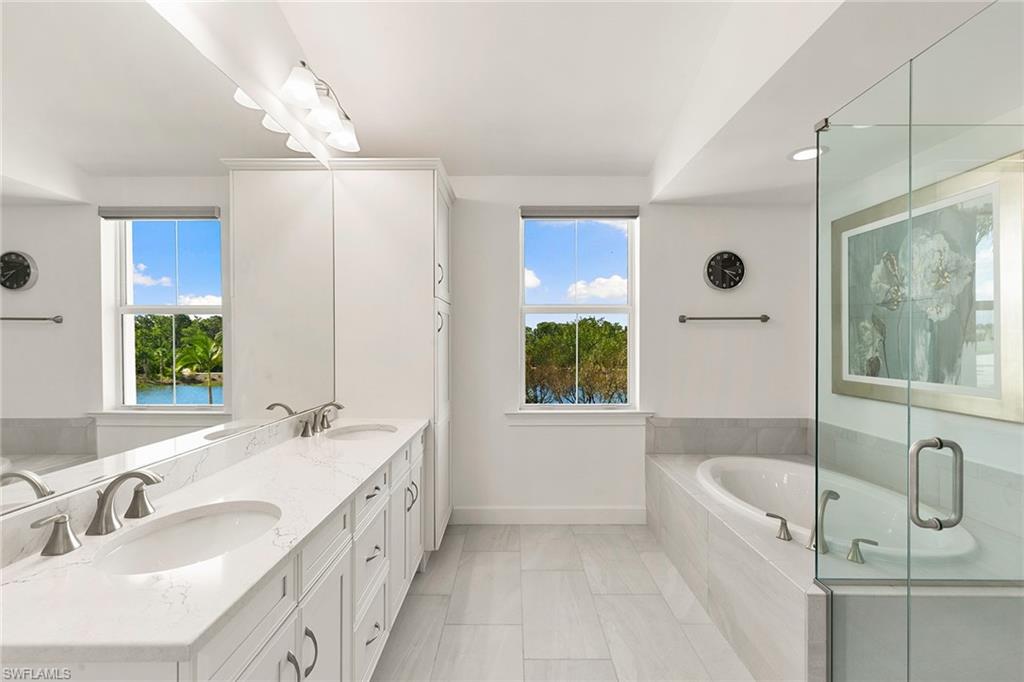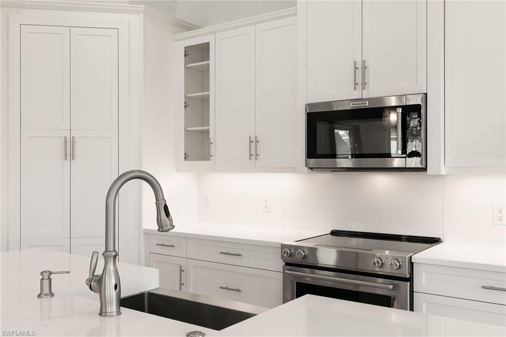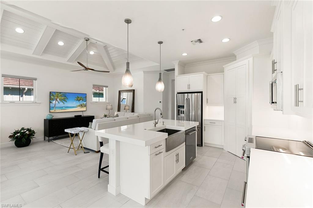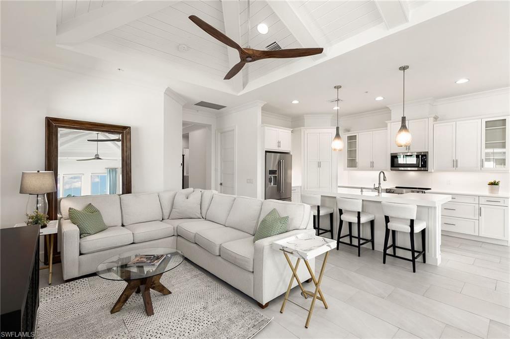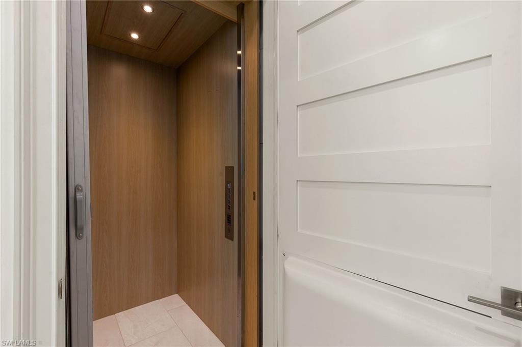Wake up to scenic views of the Cypress Waterway in this exceptional second-floor end-unit coach home in Dominica Isle at the Isles of Collier Preserve. Reflecting classic coastal architecture inside and out, the expanded great room features vaulted ceilings with exposed beams, distinct seating and dining areas, and flows seamlessly into the gourmet kitchen appointed with quartz countertops, stainless steel KitchenAid appliances, soft-close white shaker cabinetry and a walk-in pantry. An ideal space for entertaining or relaxing, the home is finished with porcelain tile flooring, custom Hunter Douglas shades, and designer lighting throughout that enhance its sophisticated design. The primary suite offers a walk-in closet and a spacious en-suite bath with dual sinks, a soaking tub and a separate shower, while a guest bedroom and den used as an office provide flexible living options. A private elevator adds convenience, and the attached two-car garage with epoxy flooring includes extra storage. Residents enjoy resort-style amenities including pools, a fitness center, pickleball and tennis courts, bocce ball courts, a dog park, the Overlook Bar & Grill, and more than eight miles of scenic trails and waterways. Prime location just minutes from Naples Botanical Garden, Hamilton Harbor Yacht Club, East Naples Pickleball Park, downtown Naples, beaches and more. This is a must see with an exceptional view!