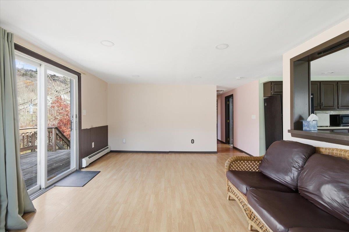 What an opportunity! This versatile property offers an affordable buy-in with multiple possibilities. Just removed from the heart of Readsboro, the home is privately tucked away with a peaceful yard perched above the Deerfield River. The upper level features an inviting open-concept living area filled with natural light. Sliding glass doors open to a spacious deck — the perfect spot to relax and enjoy the soothing sounds of the river below. Bedrooms are thoughtfully located off the main living space, providing comfort and privacy for family or guests, or flexibility for a home office setup. The lower level includes garage space for convenient winter parking, plus a full bath and additional rooms offering a range of potential uses. Both floors are separately metered, providing excellent flexibility for commercial use, or rental income. Outdoor enthusiasts will love the location — just a short drive to Lake Whitingham, Sherman Reservoir, and the historic Hoosac Tunnel with scenic trails and waterfalls. Snowmobile access is also nearby, making this a great year-round getaway. Recent updates include new windows, furnace, washer, dryer, heat pump with AC, and hot water heater.