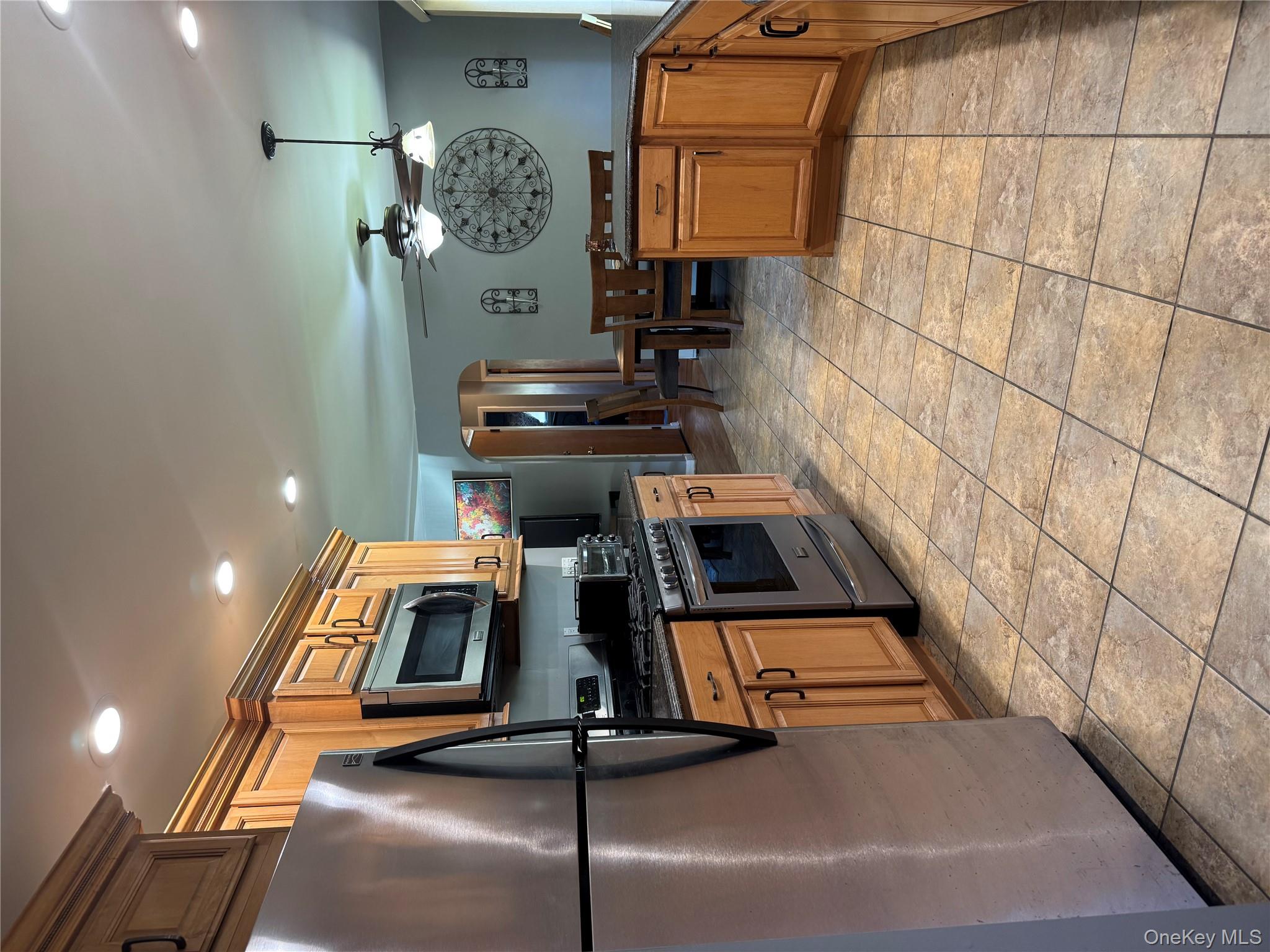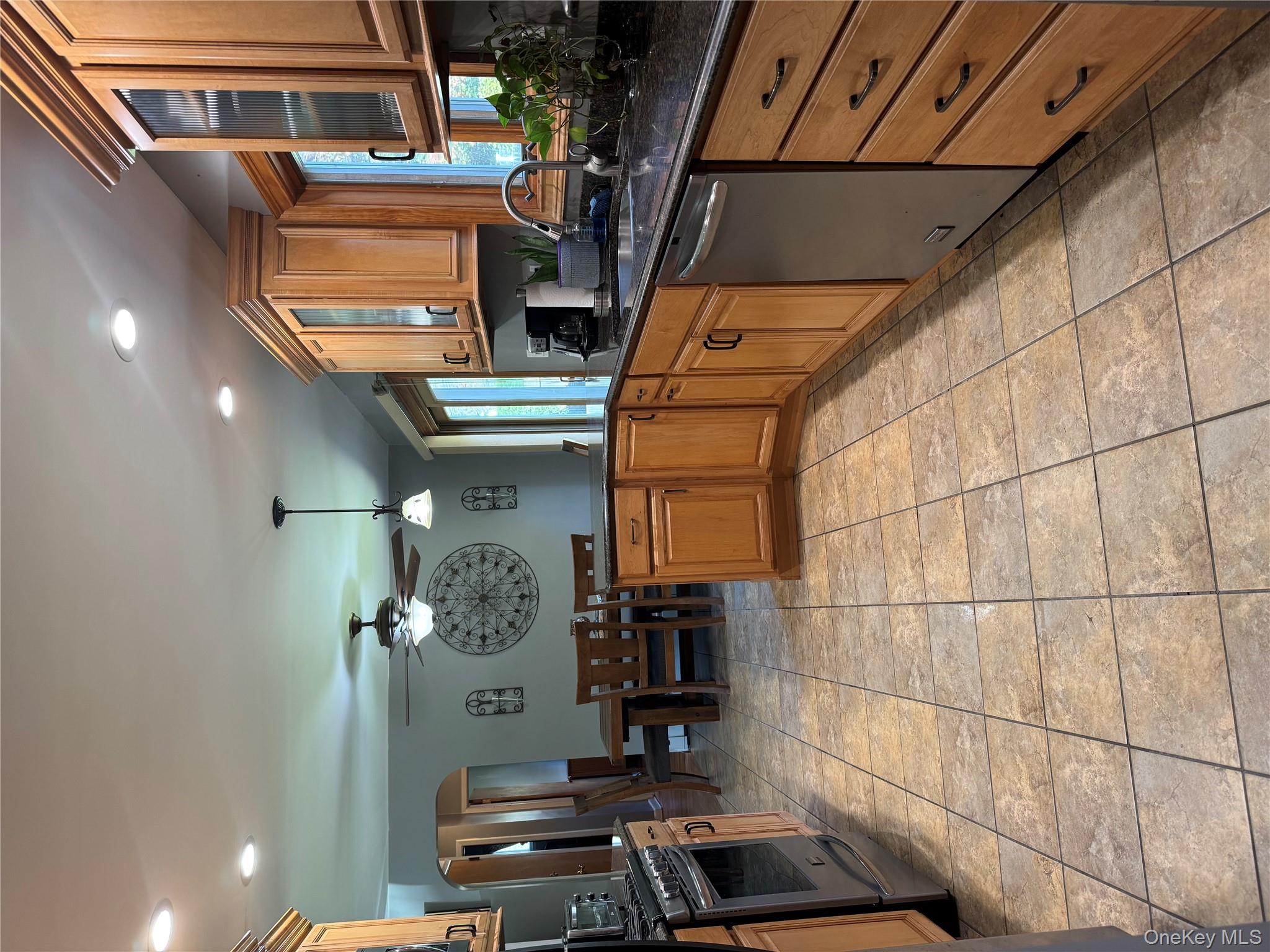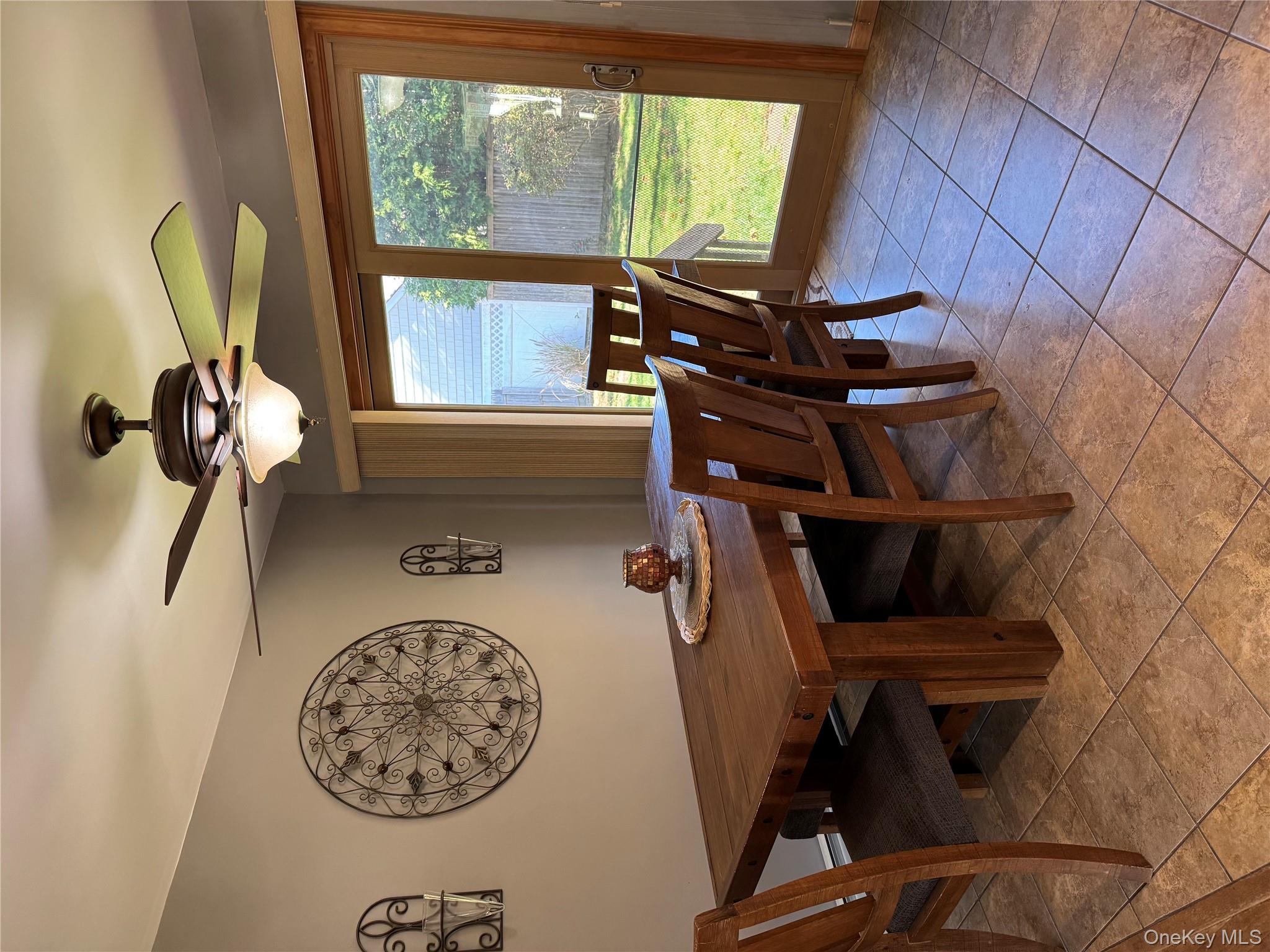 This expanded Ranch offers the perfect blend of comfort, style, and location- just moments from the Harbor, Marina, Village, bus, and Long Island Railroad. The warm and inviting Living room features a charming brick fireplace , wood floors, and a 12 foot window that fills the space with natural light and overlooks the beautifully landscaped property. The bright kitchen includes quartz countertops, stainless steel appliances, a food pantry, and a double Anderson slider- creating a wonderful space to cook and gather. Full stairs lead to a spacious loft with windows, electric , and some flooring in place . An open area ready for your ideas and personal touch. Additional highlights include a newer bathroom, recessed lighting, enclosed back heated porch/room with a custom desk and cabinetry, a full basement with outside entry, and a two - car garage. Enjoy peaceful evenings and stunning sunsets from the welcoming front porch of this beautifully maintained fenced property.