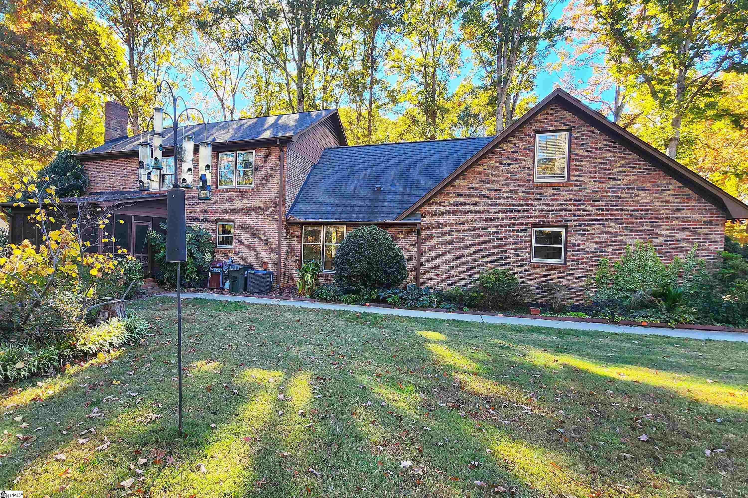 Discover this beautifully crafted all-brick 5-bedroom, 3-bath home in the highly sought-after Holly Tree Country Club golf community. Situated on one of the neighborhood’s largest lots (. 80 acres), this property offers mature hardwoods, lush fescue grass, and a tranquil koi pond. Inside, enjoy a spacious den with a cozy fireplace and access to a large screened porch overlooking the private backyard. The custom kitchen features stainless steel appliances, built-ins, and a convenient desk area. A guest suite and full bath are located on the main level. Upstairs includes the primary suite plus three additional bedrooms, a full bath, and a 24x26 flex room over the garage—perfect for a home office, recreation, or media room. Recent updates include new roof (2019), HVAC (2023), and moisture barrier with dehumidifier. Ample storage, generous rooms, and an open layout make this home ideal for entertaining. Conveniently located less than 2 miles from BridgeWay Station and the upcoming soccer stadium, with easy access to I-385 and downtown Greenville. Optional Holly Tree Country Club membership offers access to golf, dining, tennis, and an Olympic pool. Property is being SOLD AS-IS