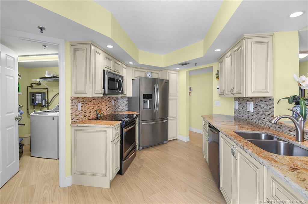 Exper??nce c?a?tal liv?ng in this stunning turnkey 3-b?dro?m, southeast corner unit at the Empress on Hutchinson Island. Enjoy breathtaking 180-degree views of both the ocean and river from the comfort of your condo. The updated kitchen features granite counters, stainless steel appliances & solid wood cabinets. Tile floors flow throughout the main living areas, a dedicated in unit laundry room adds to everyday convenience. The Empress provides resort-style amenities, including gated entry, heated pool and spa, fitness center, tennis and pickleball courts, game room, and extra storage. Milestone inspections are complete, and all work is finished, ensuring peace of mind for the new owner. Garage #19 is available separately for purchase. Rental policy: 2-month minimum, up to 2 times per year. Pet policy: 1 pet under 20 lbs.