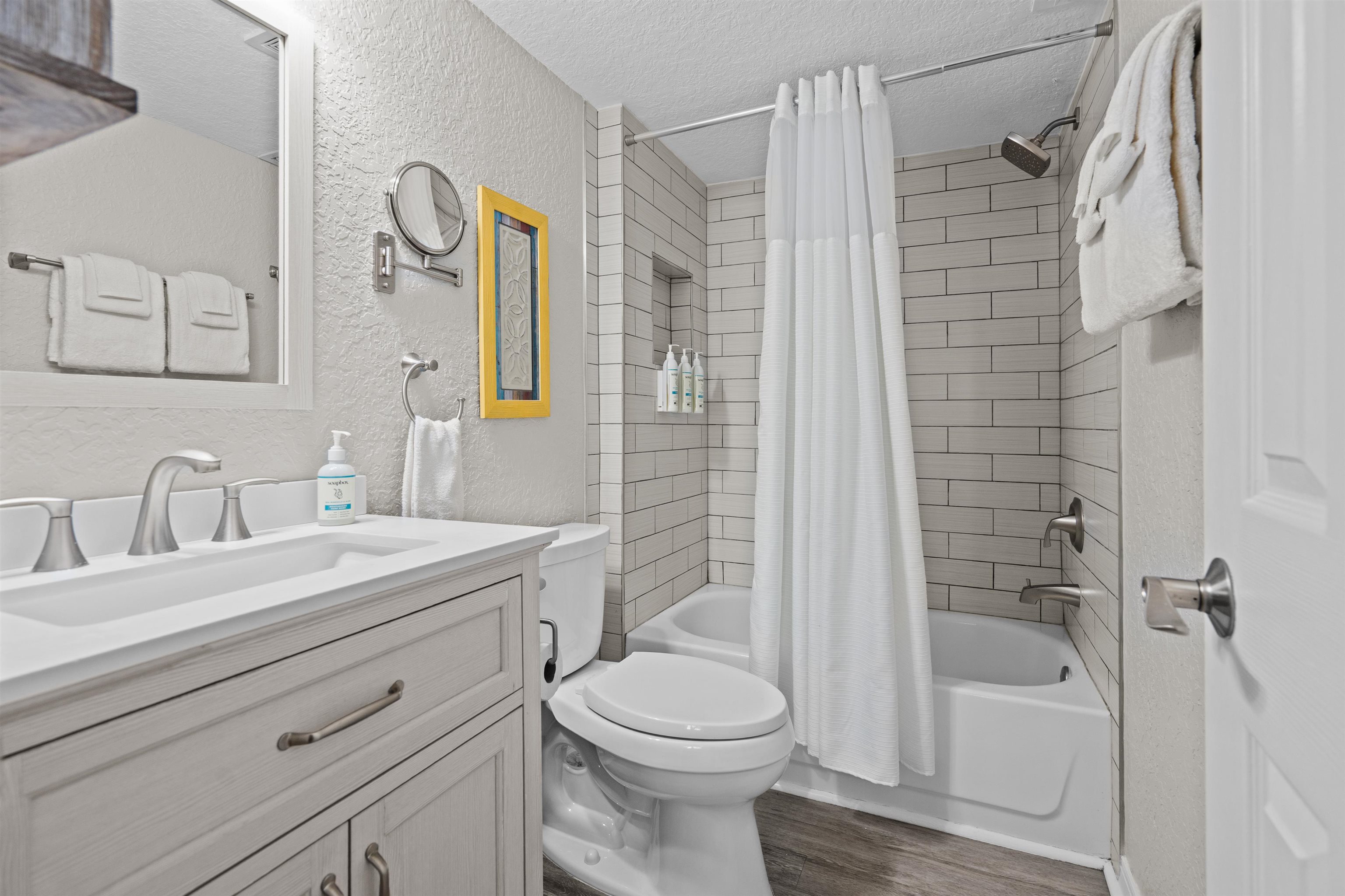 17 Clipper – Fully furnished and completely turnkey, this ground-floor vacation rental allows nightly and short-term stays and offers one of the best locations in the building—just a block from the beach and steps from the pool and clubhouse. Enjoy a private patio and garden area, a locking owner’s closet, and the security of Flood Zone X. Completely renovated and meticulously maintained, this home is within walking distance to local restaurants and shops and just minutes from historic downtown St. Augustine. Recent updates include new interior paint, water heater, dishwasher, and HVAC, while major improvements such as a primary bath remodel, electrical panel, roof, siding, impact windows, and vinyl plank flooring provide peace of mind and lasting value. Come see this standout unit today!