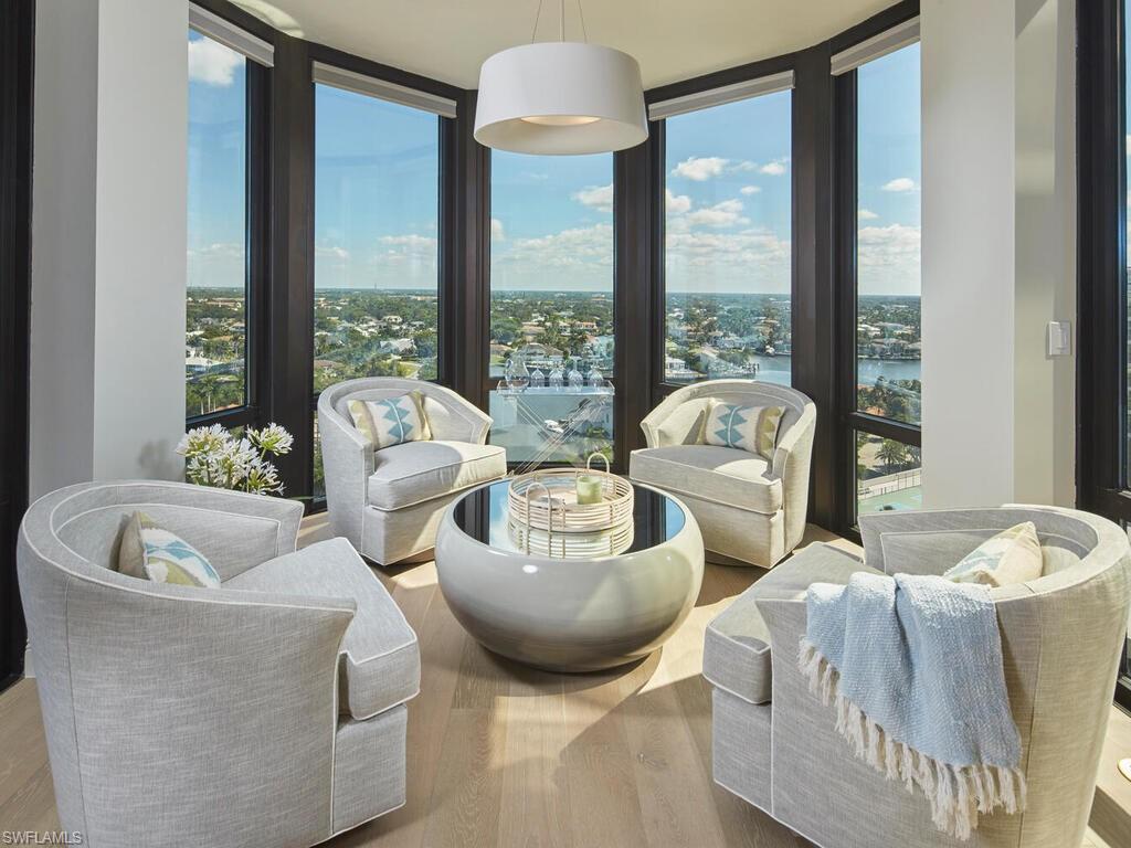Experience breathtaking Gulf-to-Bay views from this 12th-floor 04 stack residence at Le Parc, rare opportunity to own in one of Gulfshore Boulevard’s most prestigious buildings. From sunrise over Venetian Bay to sunsets across the Gulf, the living room and primary suite frame sweeping views that stretch all the way to Sanibel Island.