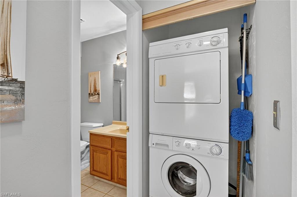 PRIME LOCATION!. Minutes to everything. This Ranch style 2 bdrm Condo has been very well cared for with owners using sparingly throughout the year. The lanai was opened up to give more living area under air. Feels like a home, no one above you. New roofs 2022, W/H 2022 and air conditioning 2017. All new Hurricane impact windows 2025, new luxury vinyl flooring recent in both bedrooms, tile thoughout all other areas, crown molding in Entry and main living area plus Stackable laundry. Relax on the outdoor patio, landscaped lawn views. Ready to move right in. TURNKEY. Big bonus is good-sized storage great for beach chairs, grill or bikes. Carport parking steps away from yr front door, make this SW florida your next place in paradise.