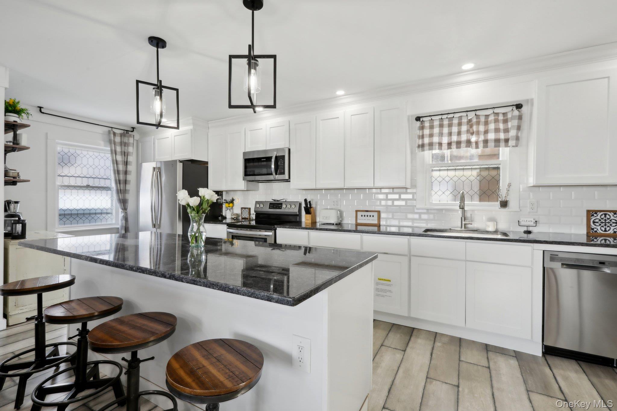 Back on the Market! Buyer financing fell through - here is you're second chance to own this beautifully updated 3 bedroom, 2 bath home featuring lake views, a bright inviting atmosphere with deeded lake and beach access and a boat slip. The open concept living area features a cozy wood burning stove with a charming brick accent wall, seamlessly flowing into a modern kitchen with granite countertops, a spacious island, stainless steel appliances, ample cabinet space, and a dedicated coffee & wine bar. The primary suite offers a peaceful retreat with a skylight, large window, and French doors leading to a Juliet balcony showcasing seasonal lake and mountain views. Recent updates include a new oil tank, upgraded plumbing and insulation, new water heater, radiant heating, and energy-efficient split units. Located in the heart of the vibrant Greenwood Lake community - close to parks, trails, restaurants, pubs, a yoga studio, local coffee roaster, and the town beach, all with easy NYC access via nearby bus and train. This home has also been a proven short term rental performer, and is now under new management with over 100 five star reviews! Offered fully furnished with premium pieces, it’s ready for immediate enjoyment or continued investment success. Don’t miss this rare opportunity to own a turnkey lake home with stunning views and strong income potential!