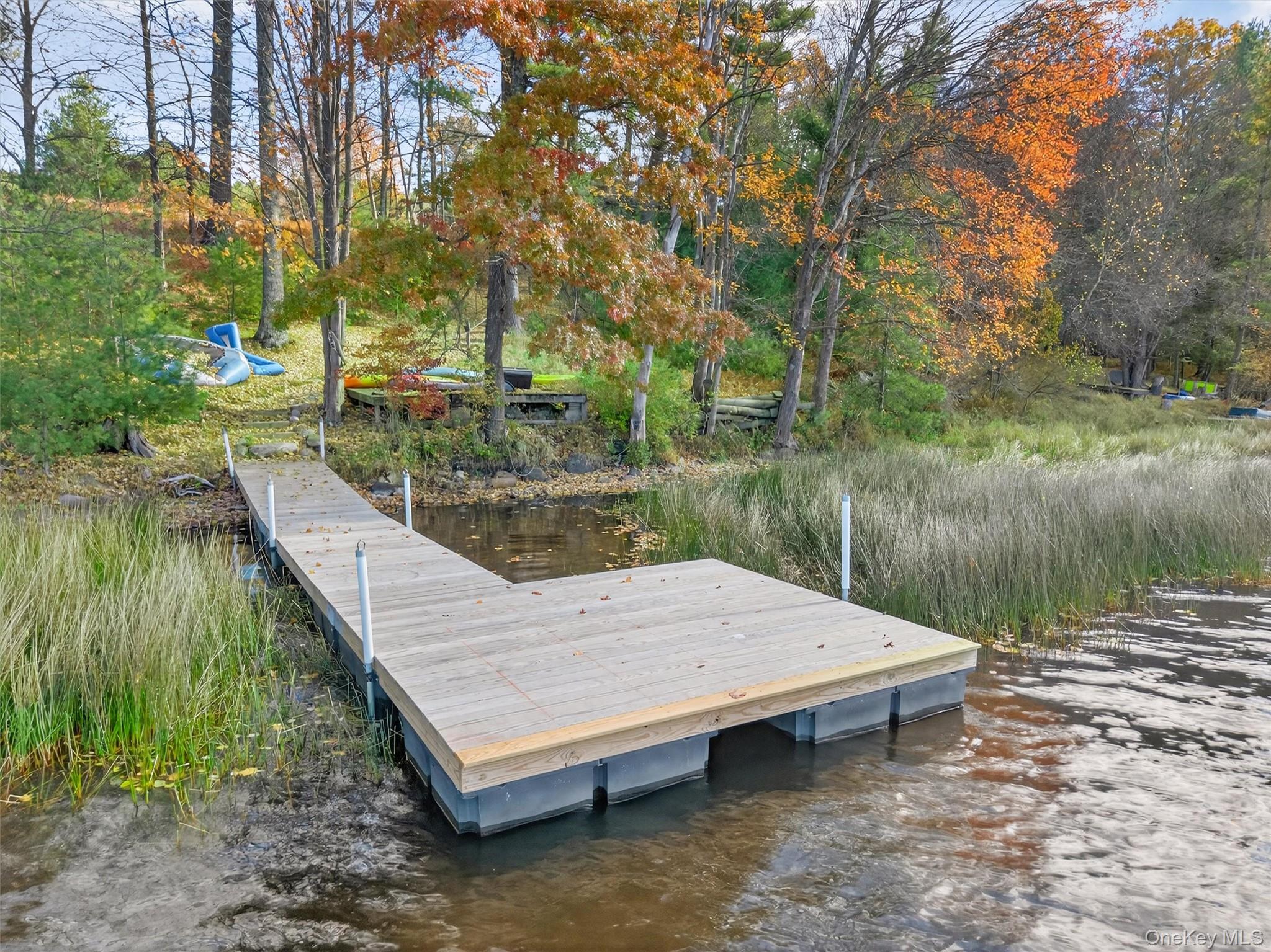Lakefront Gem! Enjoy beautiful Highland Lake from this spacious three-bedroom contemporary located on 6. 16-acres. The house features 1, 692sf plus a finished basement with a two-car garage, and a brand-new dock. There is about two acres of land, the rest is the lake. The house is set far back off the road, down a long driveway, to ensure privacy and proximity to the water. Highland Lake is a sparkling 198-acre motorboat lake offering endless water sports and excellent fishing. The house is not located in an HOA, so short-term rentals are allowed. Summer 2026 will be here before you know, come find the lake house you have been dreaming about! The main level features a spacious living room with hardwood floors, double-height ceilings, and a stone wall with a fireplace, all with views of the trees and lake. There is a dining area that can accommodate a large table and has a sliding door out to the back deck. The kitchen offers stainless-steel appliances, granite countertops, and recessed lighting. There is one bedroom which has access to the front deck, plus a half bathroom in the hallway. The upper level has two bedrooms and two full bathrooms. Both bedrooms are spacious and offer private decks! The primary bedroom has sweeping lake views, and the en-suite bathroom has a large walk-in shower and a closet. The finished basement is currently set up as the perfect family room and there is a sliding door leading out to the backyard and lake. There is a half bathroom and a laundry closet off the main room. The two-car garage has plenty of space for all your lake toys and features two brand new electronic doors. There is a super-efficient, propane fired Navien boiler that provides heat and hot water. The house is situated on a beautiful clearing which provides a massive front yard and a spacious backyard. There is a new path leading down to the lake with a platform for boat storage at the bottom. Included in the sale is a brand new $15, 000 floating dock. The dock extends 42’ into the lake with a 10’x12’ sitting area and a 10’x10’ swim dock. Highland Lake is a quiet and serene hamlet located about 95 miles from New York City. The biggest attraction is of course the namesake lake, but other attractions include the nearby Delaware River, Rio Reservoir, hiking trails, and Circle Park. Sand Beach, which offers lakefront fun with a bar and restaurant, is under a half mile from the house. The hamlet of Eldred is located just five minutes away and offers convenient shopping and dining options including Peck’s Market, Corner Piazza, The Corner Ice Cream Store, Shrewd Fox Brewery, a library, and a Dollar General.