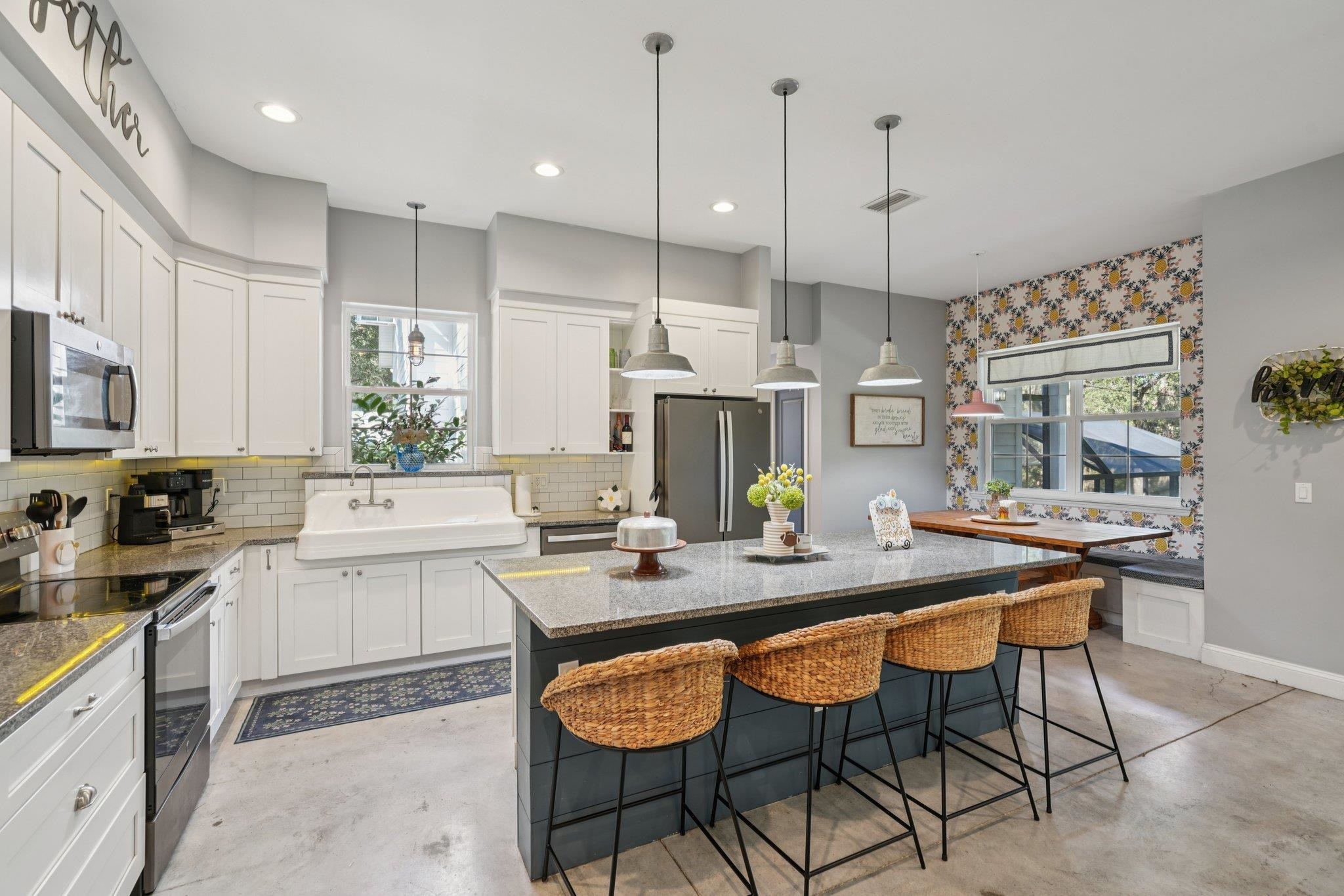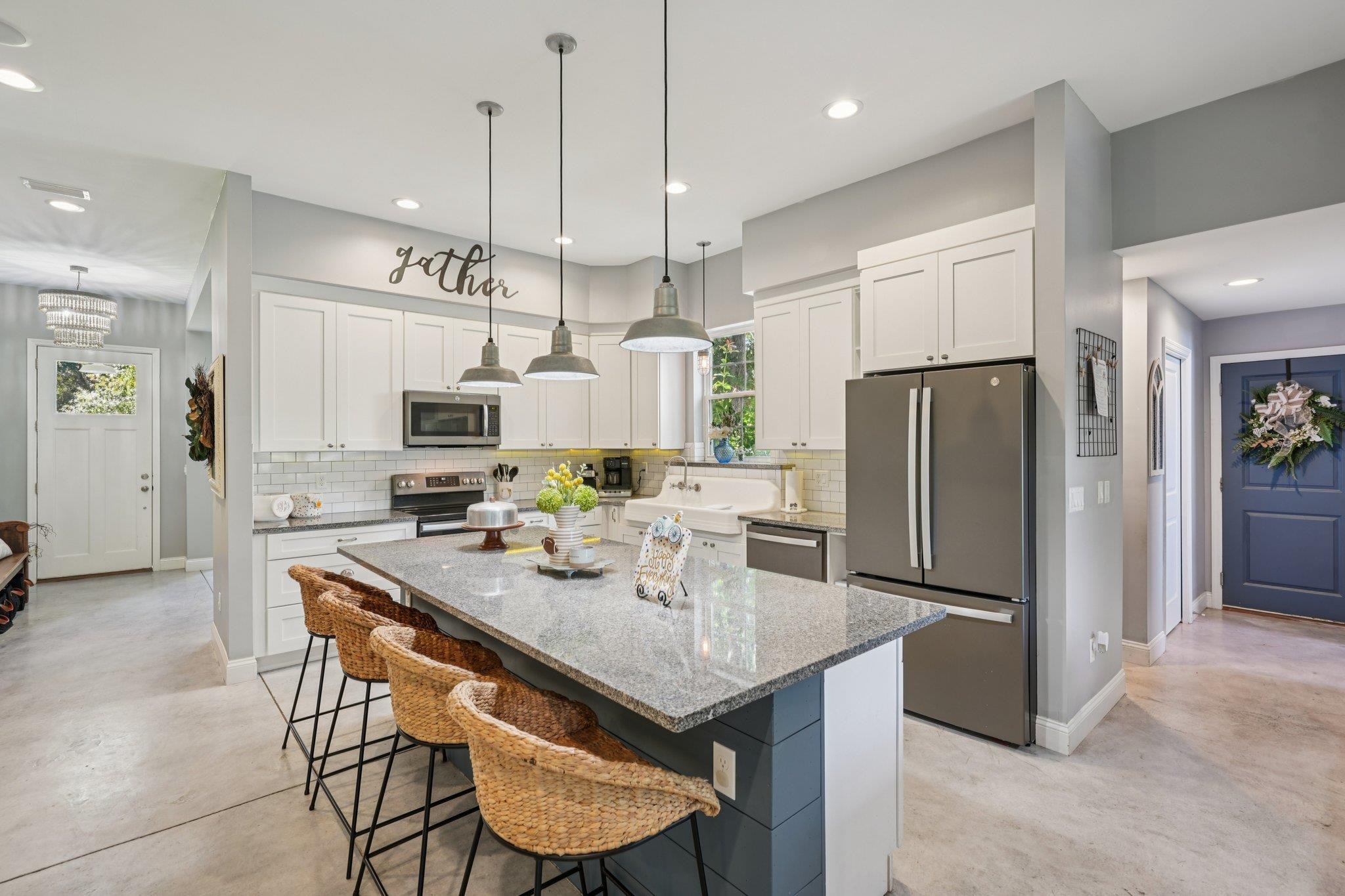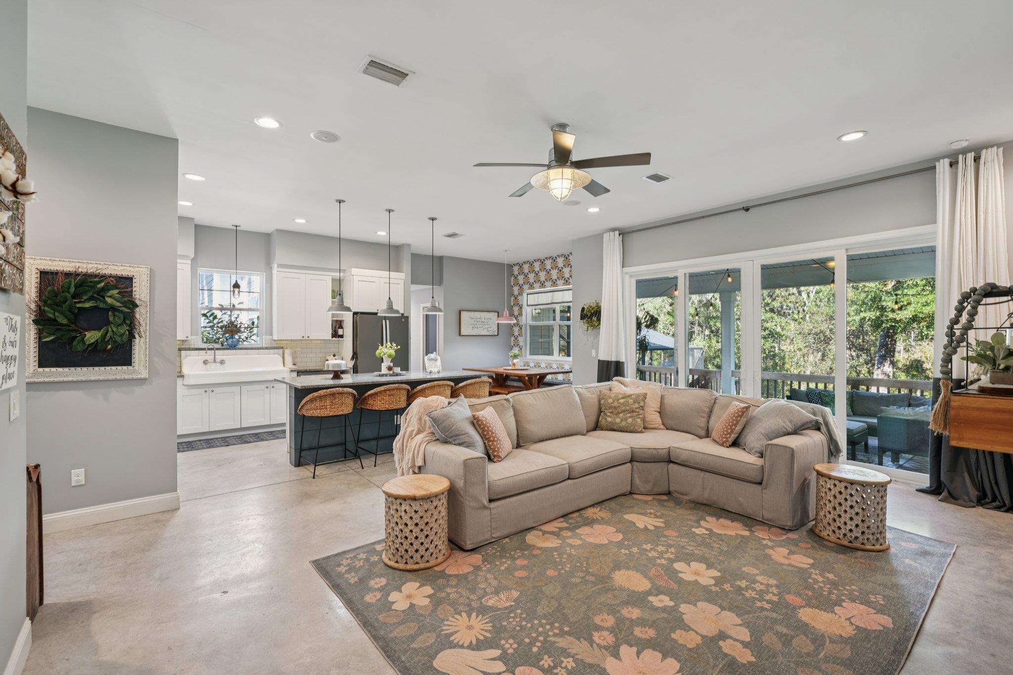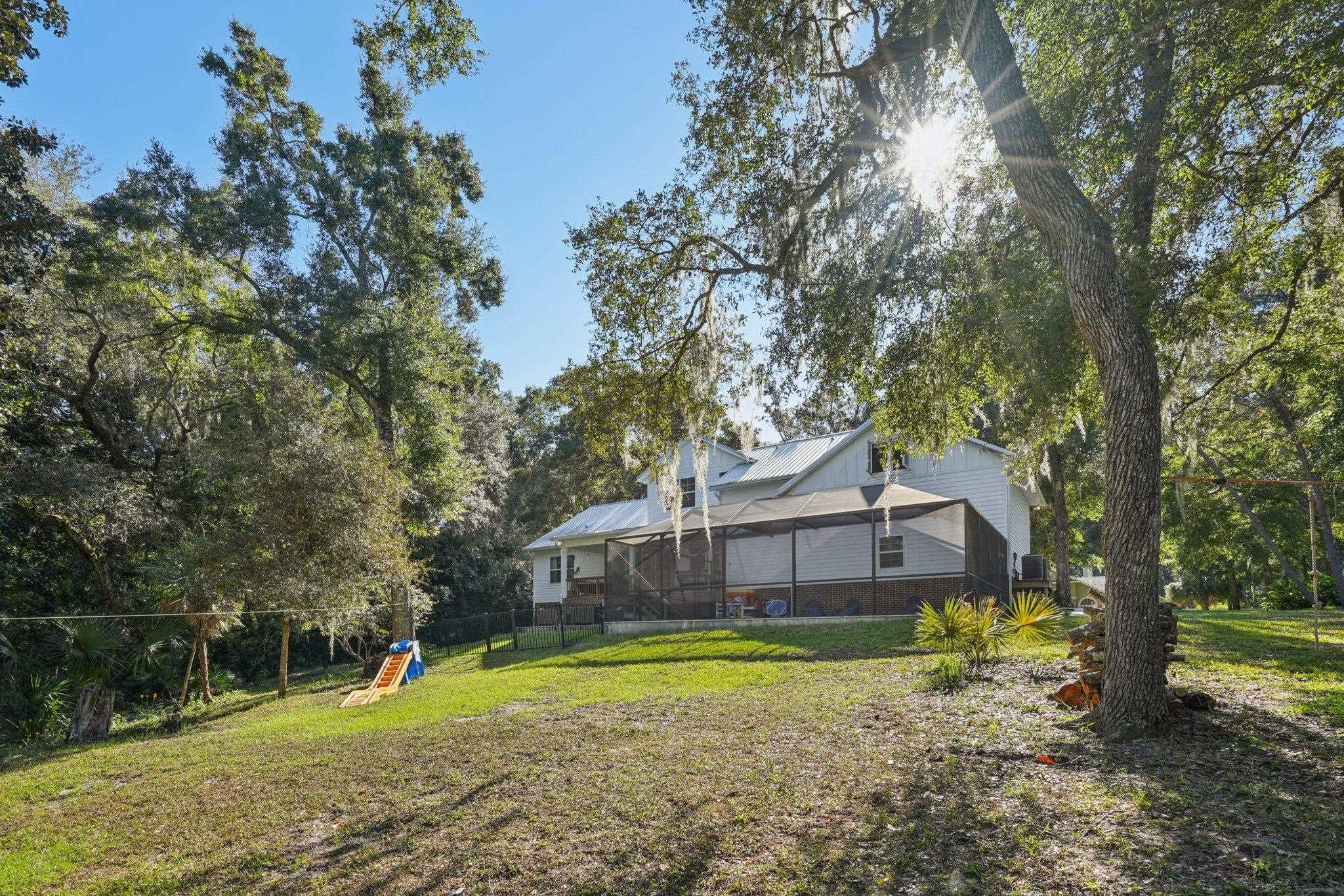Discover this custom-built home in the exclusive, gated community of Oakbrook- perfectly positioned in the heart of town yet offering the tranquility of a secluded retreat. Designed by architect Karen Cowart and expertly constructed by Corner Construction in 2017, this home showcases exceptional craftsmanship and thoughtful design throughout. Sitting on 2 beautiful acres, the residence features 4 bedrooms and 3 baths, including a main level primary suite and guest suite for ultimate convenience. The kitchen and open concept living spaces flow seamlessly outdoors to fabulous relaxation and entertainment spaces, including a screened, heated and cooled saltwater pool, creating the ideal setting for year-round enjoyment. Upstairs, you’ll find two additional bedrooms, a loft style living room, and a large and versatile bonus room. Step outside to experience true Southern charm with a welcoming front porch, all surrounded by the peaceful privacy of your own 2-acre sanctuary. With its timeless design, quality construction, and resort-style amenities, this Oakbrook masterpiece is in flood zone X, no flood insurance required, so it truly does have it all!