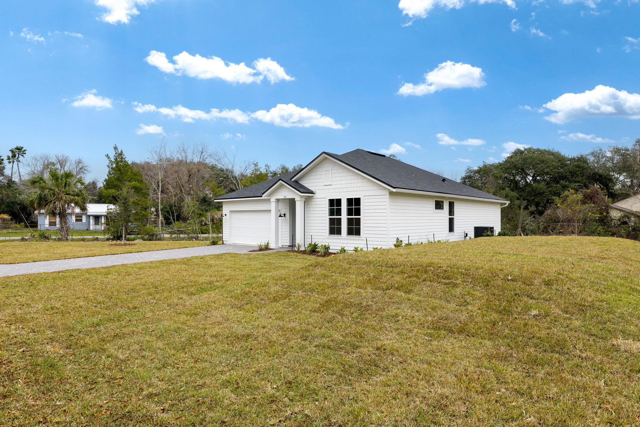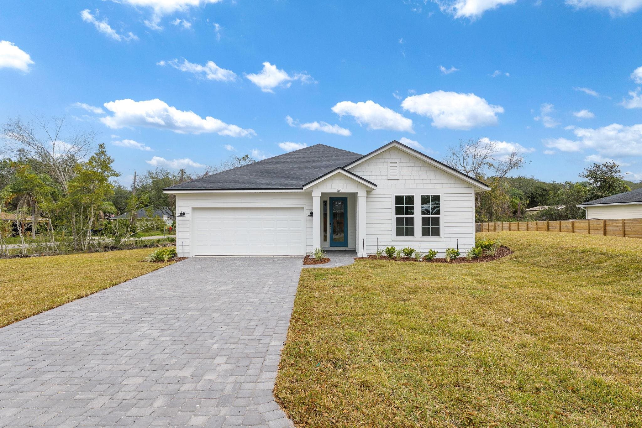 This beautiful new St. Augustine South home was recently completed 01/09/2026. The home features 3 oversized bedrooms, 2 large bathrooms, and a thoughtfully designed floor plan, Offering a spacious family room, a modern kitchen with a large island, walk-in laundry room as well as a split-bedroom layout for added privacy. The primary suite includes two walk-in closets and a relaxinglrge walk in shower. Enjoy the charm of St Augustine South just minutes from the Intracoastal, , boat ramps, parks, shopping, and downtown St. Augustine.