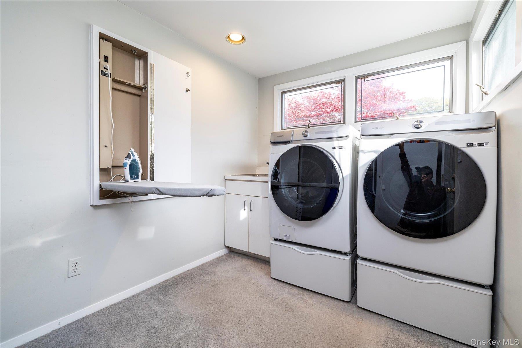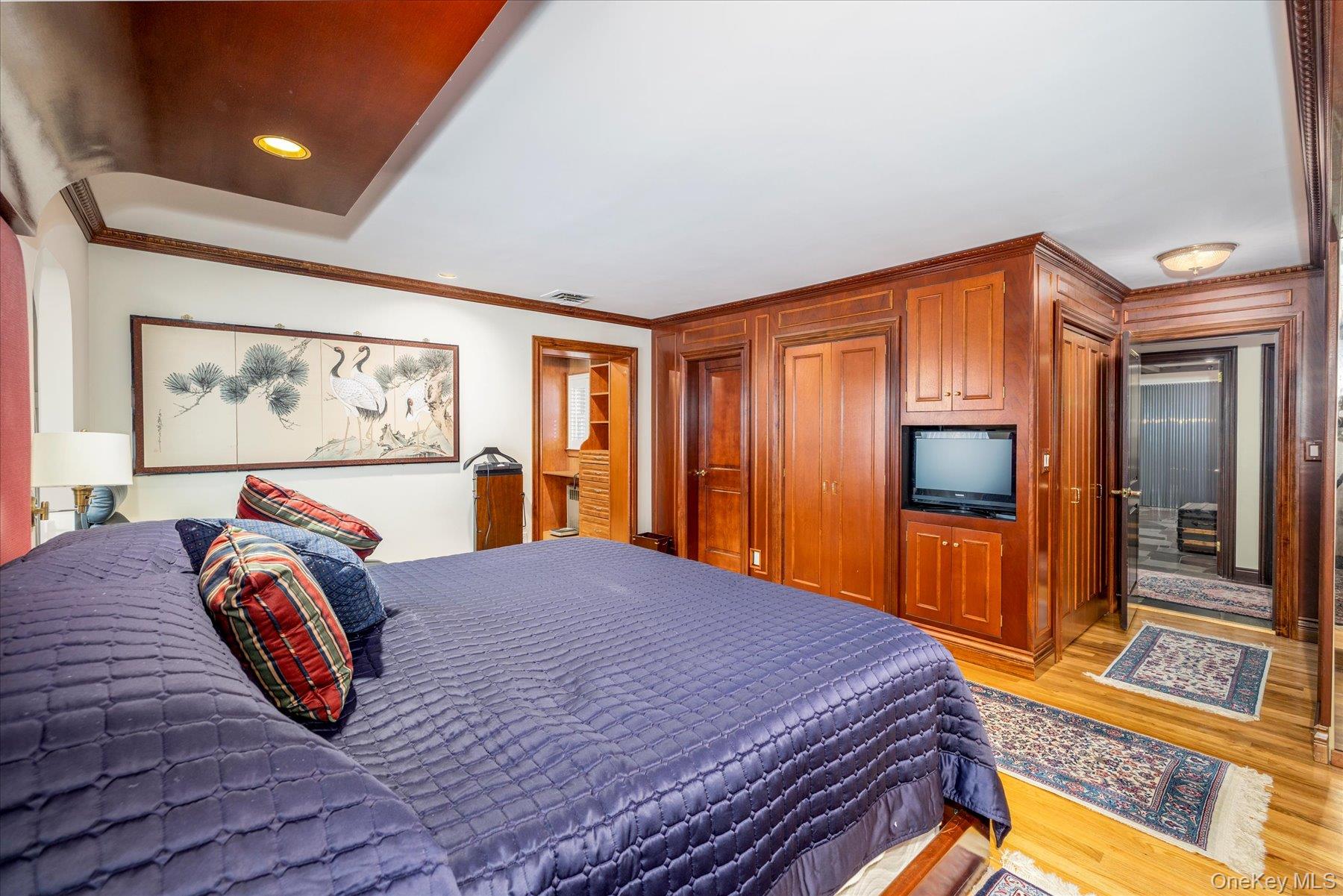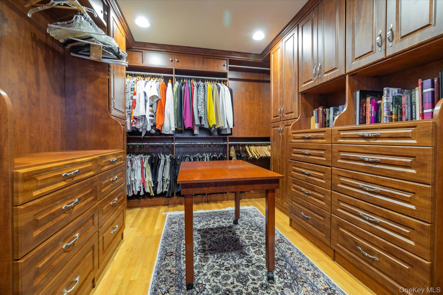 Welcome to 25 Atkinson Road, a beautifully maintained 4-bedroom, 3. 5-bath brick home nestled in the desirable New Canterbury section of Rockville Centre, known for its tree-lined streets, sought-after RVC schools, and convenient access to the parkways. A manicured front landscape leads you into a welcoming foyer that opens to a sun-filled living room featuring elegant cherry woodwork and a wood-burning fireplace. The living room flows seamlessly into the formal dining room, generously sized to seat 10 and enhanced by a wall of windows overlooking the backyard. A hidden door reveals the spacious laundry room, complete with a 2022 washer & dryer, slop sink, built-in ironing board, room for an additional refrigerator, direct access to the 2-car attached garage, and a side door to the yard. The dining room leads into the kitchen, beautifully appointed with cherry cabinetry, stainless steel appliances (all less than 5 years old), 2 ovens, a center island, and an eat-in area for six with a door to the backyard and patio. Adjacent is a large family room featuring custom built-ins, sliders to the yard, and windows that flood the room with natural light. A full bath—decorated with MacKenzie-Childs accents—completes this level. The first-floor primary suite with custom wood cabinetry, includes a raised step-up area designed for ideal bed and nightstand placement, two large closets, a dressing room, and an en-suite bath. Upstairs are three additional bedrooms and a full family bath with 2 sinks. One bedroom is exceptionally spacious—large enough for a sitting area or office—and includes two dormered closets for excellent storage plus 2 more for clothes. Another bedroom is designed as a generous single with room for a chair, and the third is currently used as a bedroom and art studio. The basement provides wonderful additional living space, perfect for entertaining or everyday relaxation. Enjoy a wet bar with refrigerator, a cozy “home theater”, two flexible rooms ideal for office or storage, a half bath, utility room and a dedicated wine cellar. Additional features include: 3-zone heating (den, main house, basement), 2-zone central air, Two electrical panels (200 amp & one just for the basement ), Whole-house water filtration system, Central vacuum, water filter, Roof and windows replaced approx. 5–6 years ago, & Security system Set on a 100x100 lot, with in the ground sprinklers, the backyard offers a spacious brick patio accommodating both a high-top table for four and a dining table for six. This exceptional home combines charm, craftsmanship, and modern updates—truly a rare find in one of Rockville Centre’s most coveted neighborhoods.