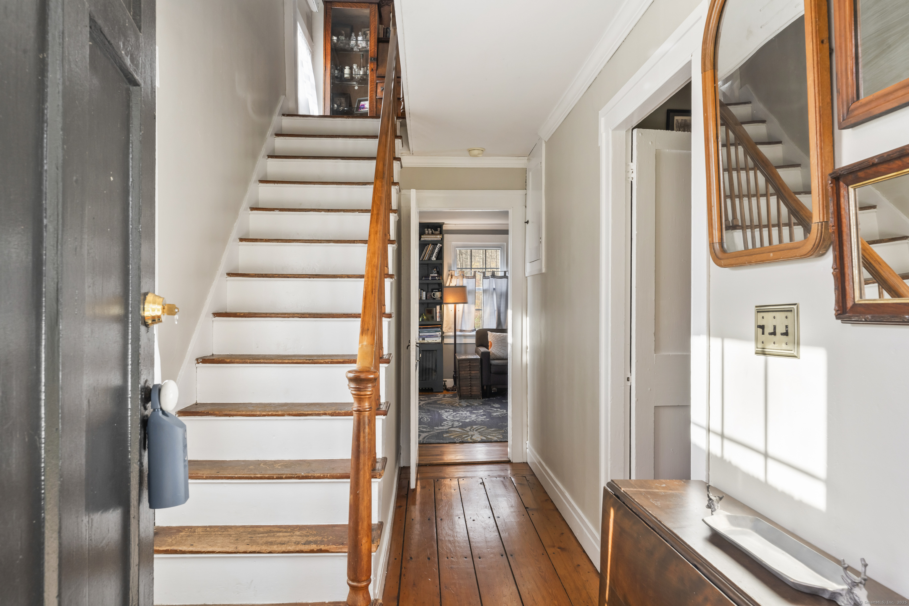 Welcome to The Bradley House, circa 1762 - a charming blend of history and modern comfort set on over two private acres. Step out back and enjoy the peaceful sound of a gentle stream that winds through the property - the perfect backdrop from your deck or garden. Inside, you'll find a spacious, light-filled kitchen with easy access to the rear deck - great for morning coffee or evening grilling. The adjoining dining room flows right into a cozy living room with a classic fireplace, creating a warm and inviting space for gatherings. A flexible room on the main level serves beautifully as an office, study, or extra bedroom. Upstairs offers three full bedrooms, including a larger suite with its own private entrance from the kitchen - ideal for guests or an in-law setup. There's a half bath on the main floor and a full bath with tub/shower on the second. Traditional hardwood floors carry the home's timeless character throughout, while thoughtful updates make it move-in ready: new energy-efficient propane HVAC and split system (2022), new roof (2024), exterior repaint (2023), all new kitchen appliances (2022), and fresh interior paint. Conveniently located on Route 34, just minutes from I-84 and nearby town centers, The Bradley House offers the perfect mix of classic New England charm and modern living is now ready for its next stuard.