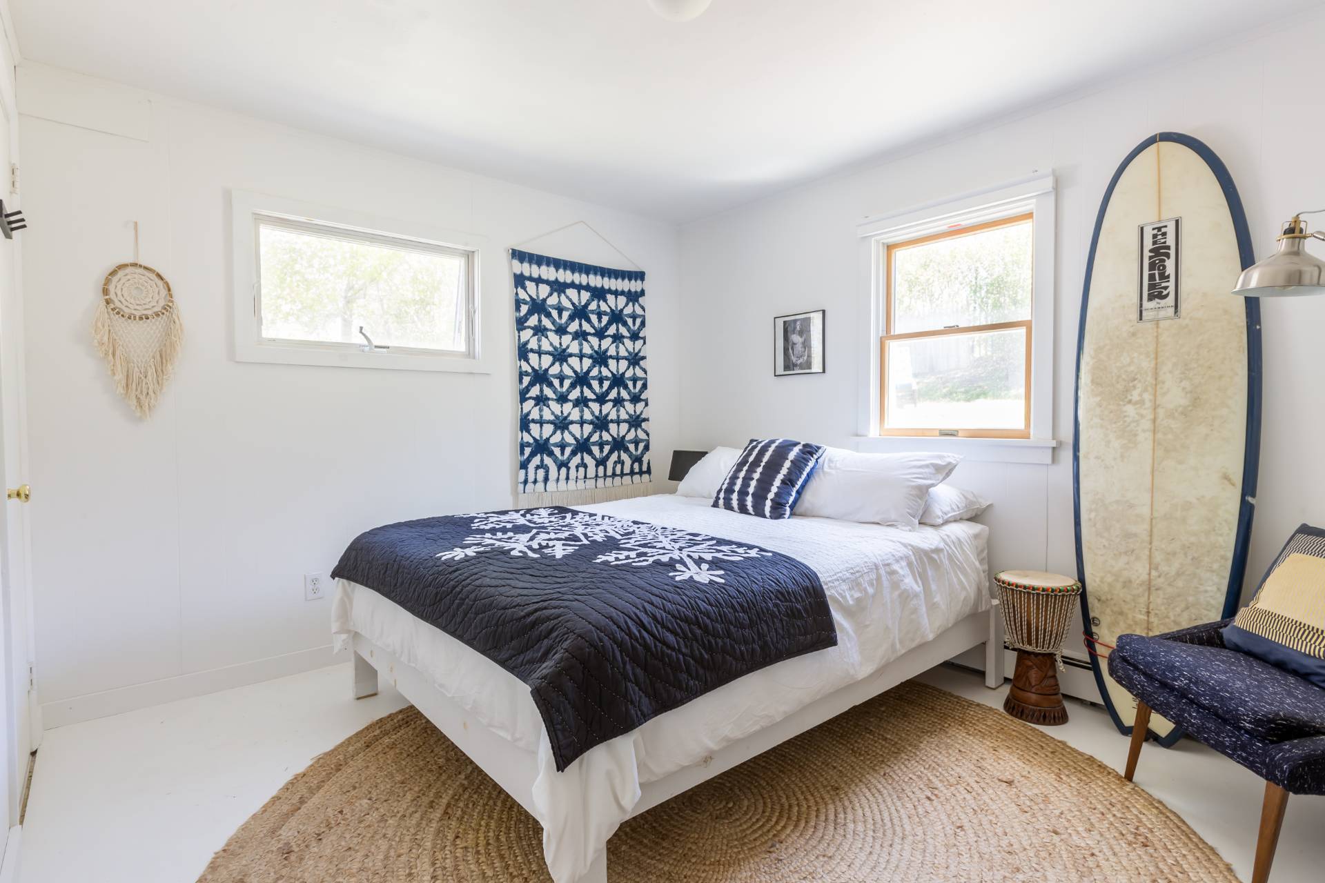 Kick back and relax in this charming former fisherman's cottage, thoughtfully reimagined into a stylish and comfortable two-bedroom beach retreat. Plywood accents, handmade furniture, and eclectic finishes create a cool, laid-back Montauk vibe, while west-facing views over Fort Pond offer all-day sunlight and stunning evening sunsets. Fire up the gas grill and dine under the string lights and stars, or let the kids play in the fully fenced yard while you unwind. Just a half-mile walk to the beach, town, and train station-plus two beach cruiser bikes available for use-means getting in the car is entirely optional. Designed and styled by Studio MTK, this quintessential beach bungalow captures Montauk at its best. Utilities included. Rental Reg. # 24-1259