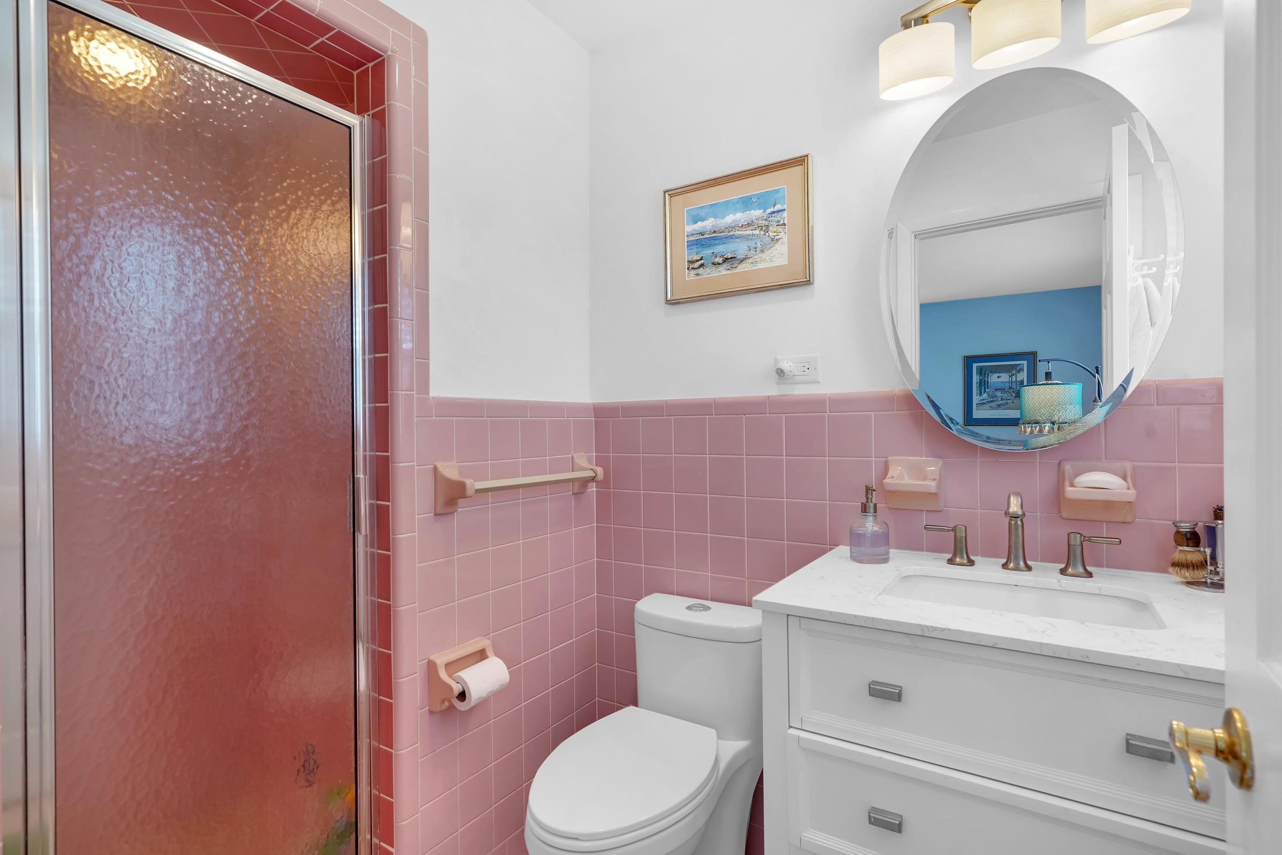 Location! Location! Never flooded and more at this desirable Davis Shores Charmer! This pretty coastal gem offers a 9 minute walk over the Bridge of Lions into downtown, historic Saint Augustine! Steps out the back door bring you to the many acclaimed restaurants, bars, breweries and shops of Anastasia Island. Rocking chairs on the inviting front porch are set to enjoy morning coffee and to offer greetings to neighbors passing by. A retractable screen door has been added to let the bay breeze in. Step into the bright, welcoming, open living area painted in light shades of blues and greens that reflect seaside living. You’ll find hardwood floors, trim molding, large windows and great storage. The kitchen has been updated with a cork floor, and attractive granite countertops, expanded to accommodate extra seating. All stainless steel appliances, including a dual-fuel range/oven, open shelving, soft-close drawers, and a great tucked-away bar area combine to make this a highly functioning space for cooking and entertaining. The sea colors next draw you into the large primary bedroom, which offers his and hers closets. A beautifully updated ensuite bathroom opens with a pocket door, includes marble floor and wall tiles, a glass enclosed shower, water inspired wallpaper, bespoke wainscoting and all new fixtures; toilet, vanity, mirror, lighting. The large second bedroom features an ensuite with the original coveted “Mamie Eisenhower” pink tile on walls and shower. It has also been updated with all new fixtures. Passing through the mud room/ laundry area brings you into the two car garage and out onto a new stamped concrete patio. Landscaping (with a fig tree!) is equipped with sprinkler systems to cover ground, planters, and hanging pots. This is a perfect spot to enjoy evening cocktails around a firepit while dinner is being grilled. We said there’s more! Back through the laundry room brings you upstairs to an efficiency apartment, with its own private, side entrance and patio area. It features a kitchenette, new AC/heat, walk-in closet, and large full bathroom. This second floor space would be perfect as an in-law setup, for visiting guests, a home office/ studio or even for rental income. And one more thing! The backyard is surrounded by an attractive shadow box fence with electrical outlets and gates. A 37’ driveway and 50 amp electrical service has been installed to accommodate RV parking (think guest house!) or boat storage. This prime location and lovingly maintained home will go quick! Call today to arrange a personal tour.