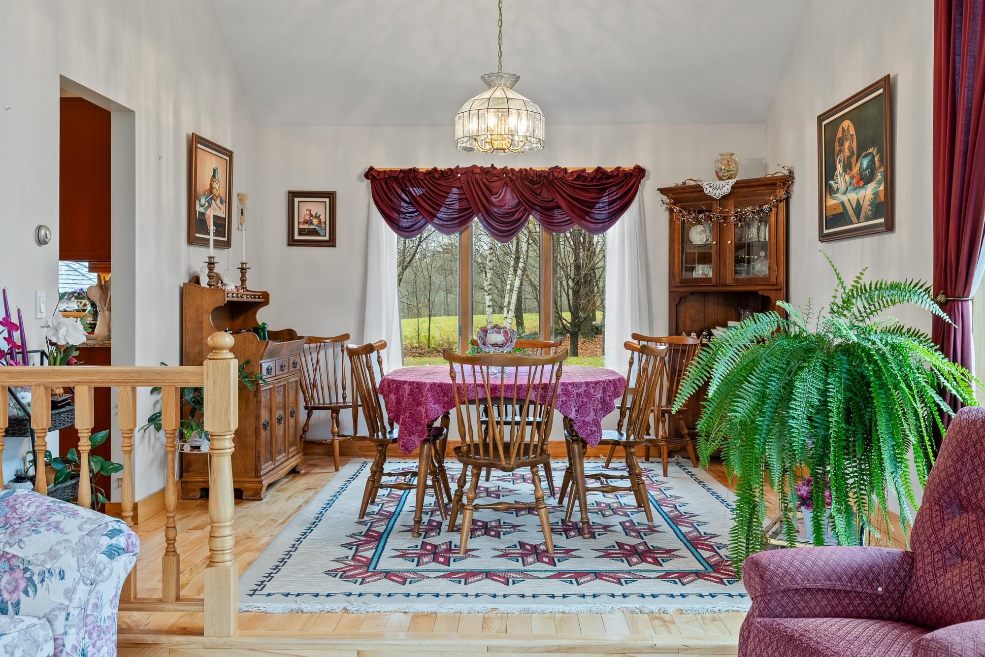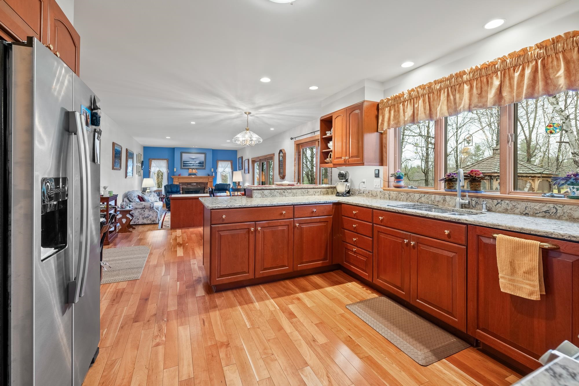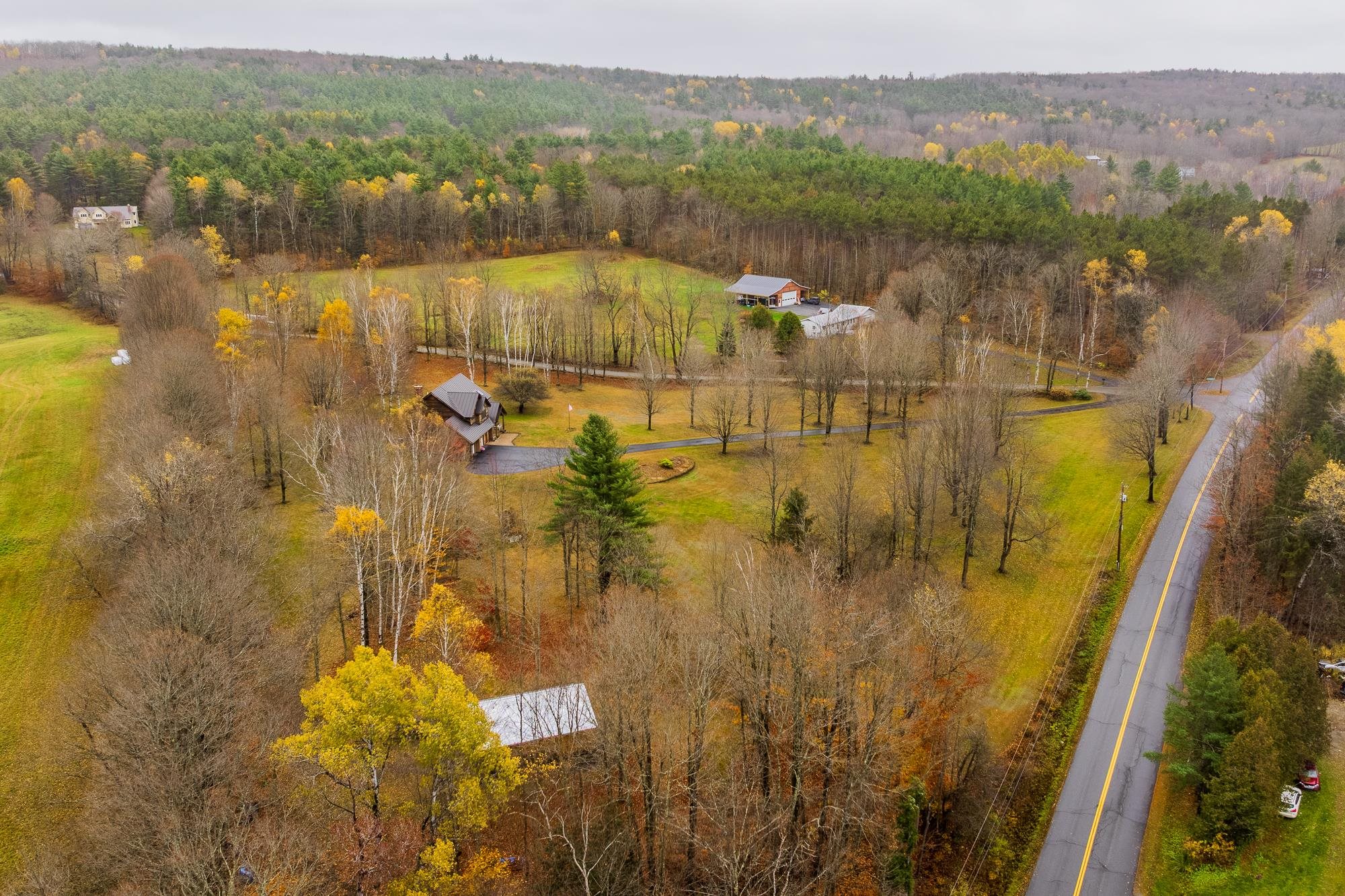 Beautiful Contemporary Home on 5. 25 acres Nestled just off the paved North Road, this stunning Contemporary residence offers a perfect blend of comfort, craftsmanship, and country charm. Set on 5. 25 acres of open lawn and framed by stone walls and mature trees, the property provides a private, park-like setting ideal for relaxation and outdoor enjoyment. A welcoming covered front porch leads into a bright, airy interior highlighted by cathedral ceilings, hardwood floors, and a grand open staircase. The spacious living room features a brick fireplace and large glass doors that open to a rear patio, seamlessly connecting indoor and outdoor living spaces. The kitchen is warm and functional, with cherry cabinetry, granite countertops, and an adjoining dining area; perfect for entertaining or quiet meals at home. The home’s thoughtful design includes direct entry from the attached two-car garage into the basement, offering convenience and practicality. Upstairs, generous bedrooms and well-appointed baths continue the theme of comfort and quality throughout. Outdoors, a charming gazebo sits among the trees, while an additional heated barn with a wood stove provides workshop or studio potential. Every aspect of this property has been carefully maintained and is in excellent, move-in-ready condition. Located in a peaceful rural setting yet close to town amenities, this is a home where beauty, functionality, and serenity come together.