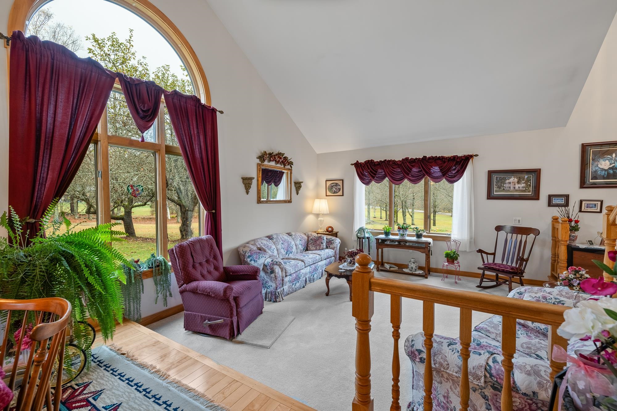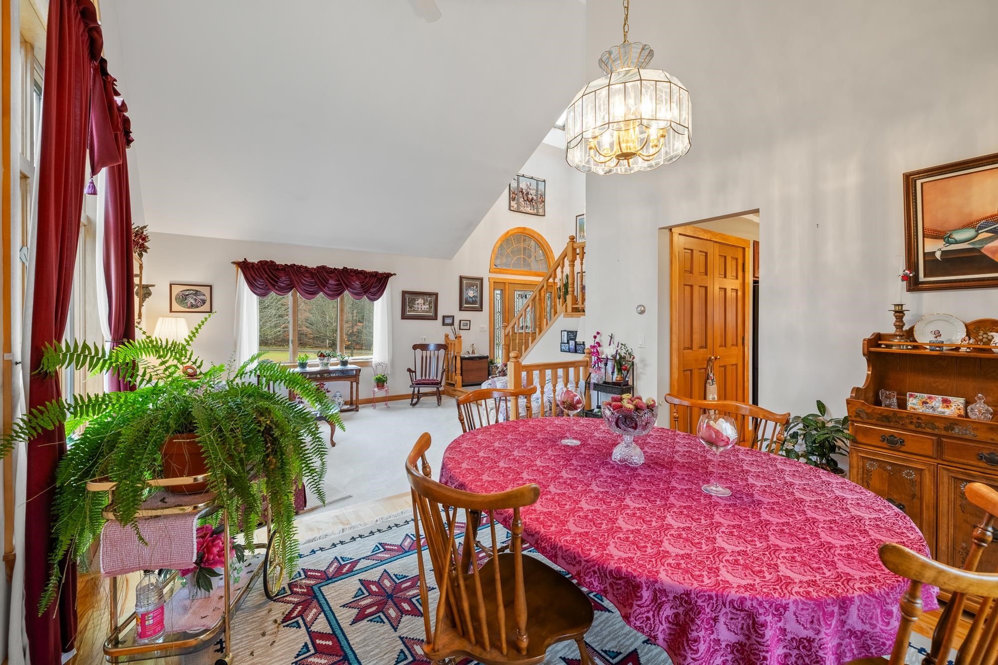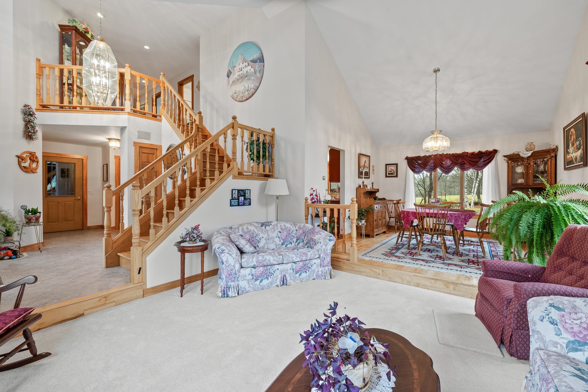 Beautiful Contemporary Home on 5. 25 acres Nestled just off the paved North Road, this stunning Contemporary residence offers a perfect blend of comfort, craftsmanship, and country charm. Set on 5. 25 acres of open lawn and framed by stone walls and mature trees, the property provides a private, park-like setting ideal for relaxation and outdoor enjoyment. A welcoming covered front porch leads into a bright, airy interior highlighted by cathedral ceilings, hardwood floors, and a grand open staircase. The spacious living room features a brick fireplace and large glass doors that open to a rear patio, seamlessly connecting indoor and outdoor living spaces. The kitchen is warm and functional, with cherry cabinetry, granite countertops, and an adjoining dining area; perfect for entertaining or quiet meals at home. The home’s thoughtful design includes direct entry from the attached two-car garage into the basement, offering convenience and practicality. Upstairs, generous bedrooms and well-appointed baths continue the theme of comfort and quality throughout. Outdoors, a charming gazebo sits among the trees, while an additional heated barn with a wood stove provides workshop or studio potential. Every aspect of this property has been carefully maintained and is in excellent, move-in-ready condition. Located in a peaceful rural setting yet close to town amenities, this is a home where beauty, functionality, and serenity come together.