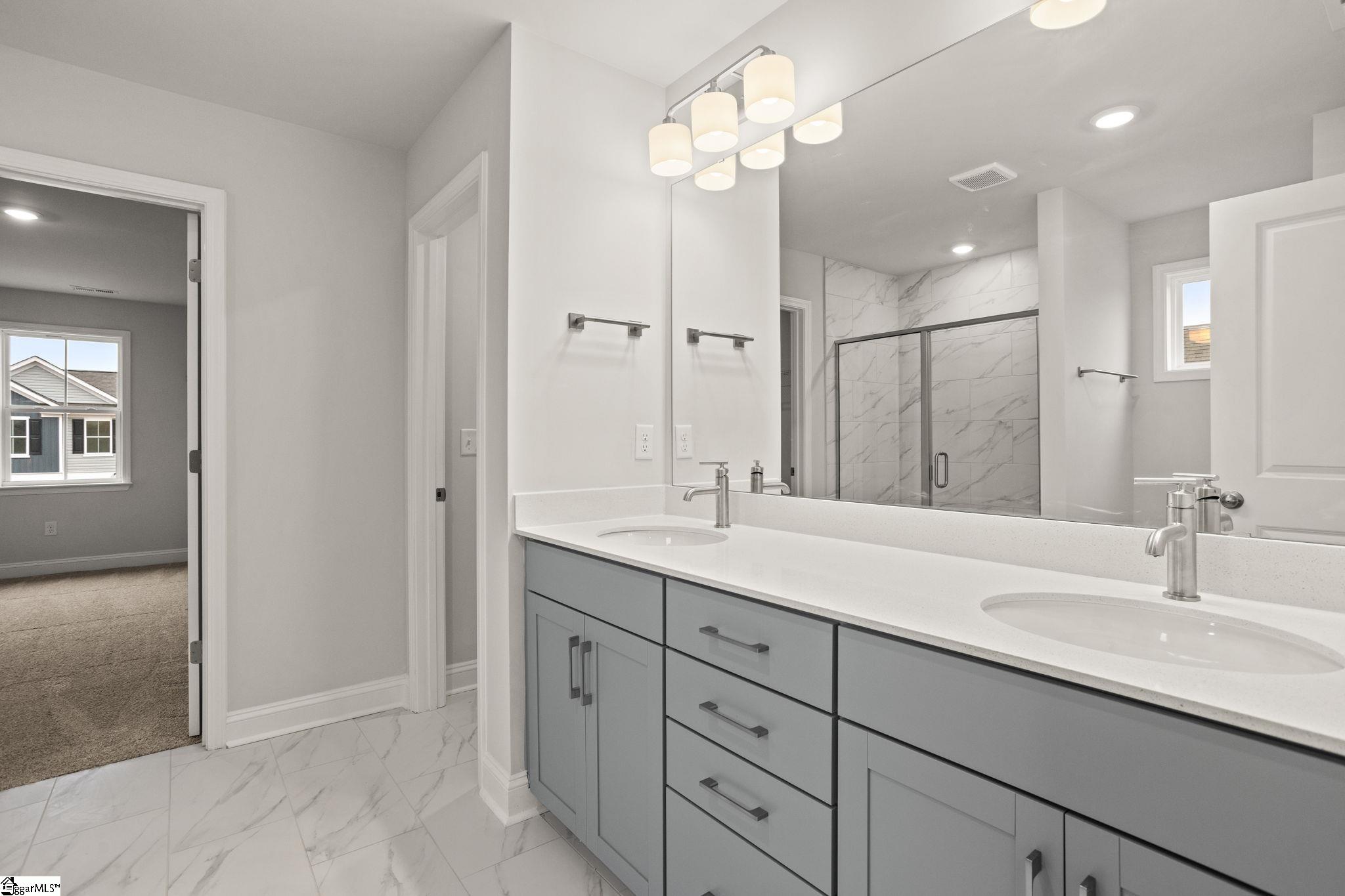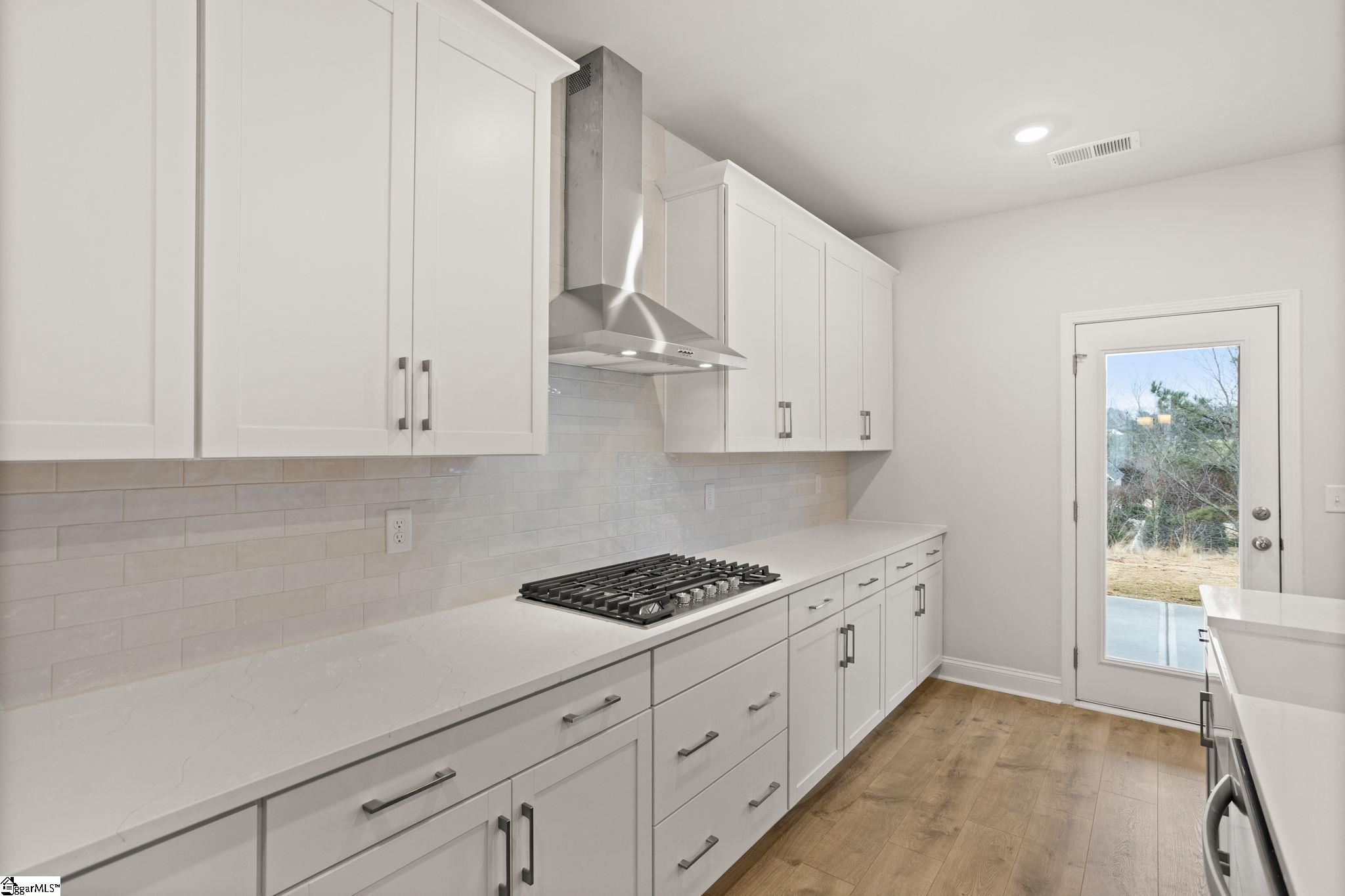 Experience refined comfort in the Morganton Floor Plan, a spacious 2, 578 sq. ft. home that blends modern features with timeless charm and features 5 Bedrooms with 3 Full Bathrooms. From its upgraded elevation with a welcoming front porch and stone detailing to its durable 30-year architectural shingles, the Morganton offers exceptional curb appeal and long-lasting quality. Out back, enjoy year-round relaxation on your 12x12 covered back porch, perfect for morning coffee or evening gatherings. Accented with a epoxy flooring in the spacious 2 car garage. Inside, the open-concept layout is both inviting and practical. The main floor features a private guest suite with a 5’ walk-in shower, ideal for visitors or extended family. The heart of the home is the gourmet kitchen, boasting quartz countertops, upgraded cabinetry, a designer tile backsplash, and premium Whirlpool smart appliances, including a gas range and stainless hood vent that’s vented to the exterior—a true chef’s dream. Adjacent to the kitchen, the formal dining room and butler’s pantry create a seamless flow for entertaining, while the gas fireplace in the living area adds warmth and ambiance. A drop zone with cubbies in the mudroom offers practical storage and organization. Upstairs, retreat to the luxurious owner’s suite complete with a huge walk-in closet and spa-inspired finishes. Three additional bedrooms provide flexible space for family, work, or hobbies. Crafted for everyday elegance, the home includes laminate flooring throughout main first-floor living areas, tile in the kitchen, laundry room, and all baths, as well as wood treads on the stairs for added sophistication. Energy efficiency comes standard with a gas tankless water heater, helping you save on utilities without compromising comfort. Located in the charming community of Anderson Oaks, you'll enjoy oversized, tree-lined homesites, cul-de-sac options, and even basement floor plans (some with golf course views!). Just 1 mile from top-rated Wren Schools, minutes from Easley’s best dining and shopping, 12 miles from vibrant Downtown Greenville, and 30 minutes to Clemson University, you’re right where you want to be. Community perks include a playground, serene firepit area, and the YMCA just a mile away—your new lifestyle is waiting!
