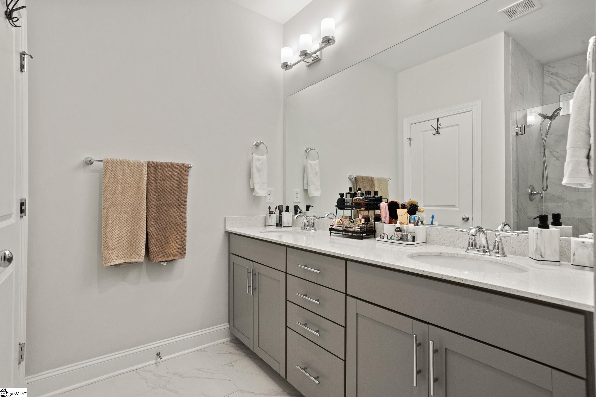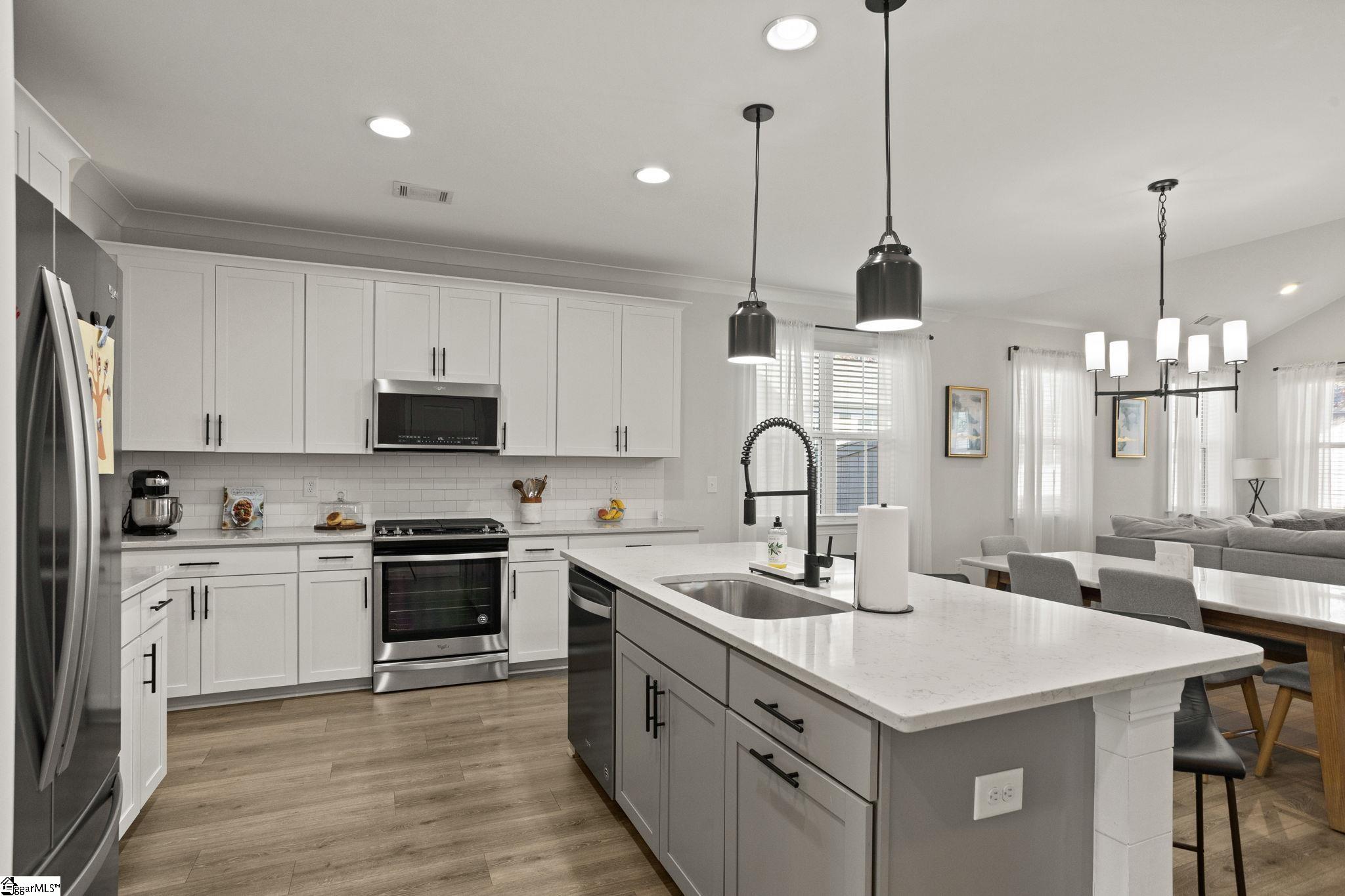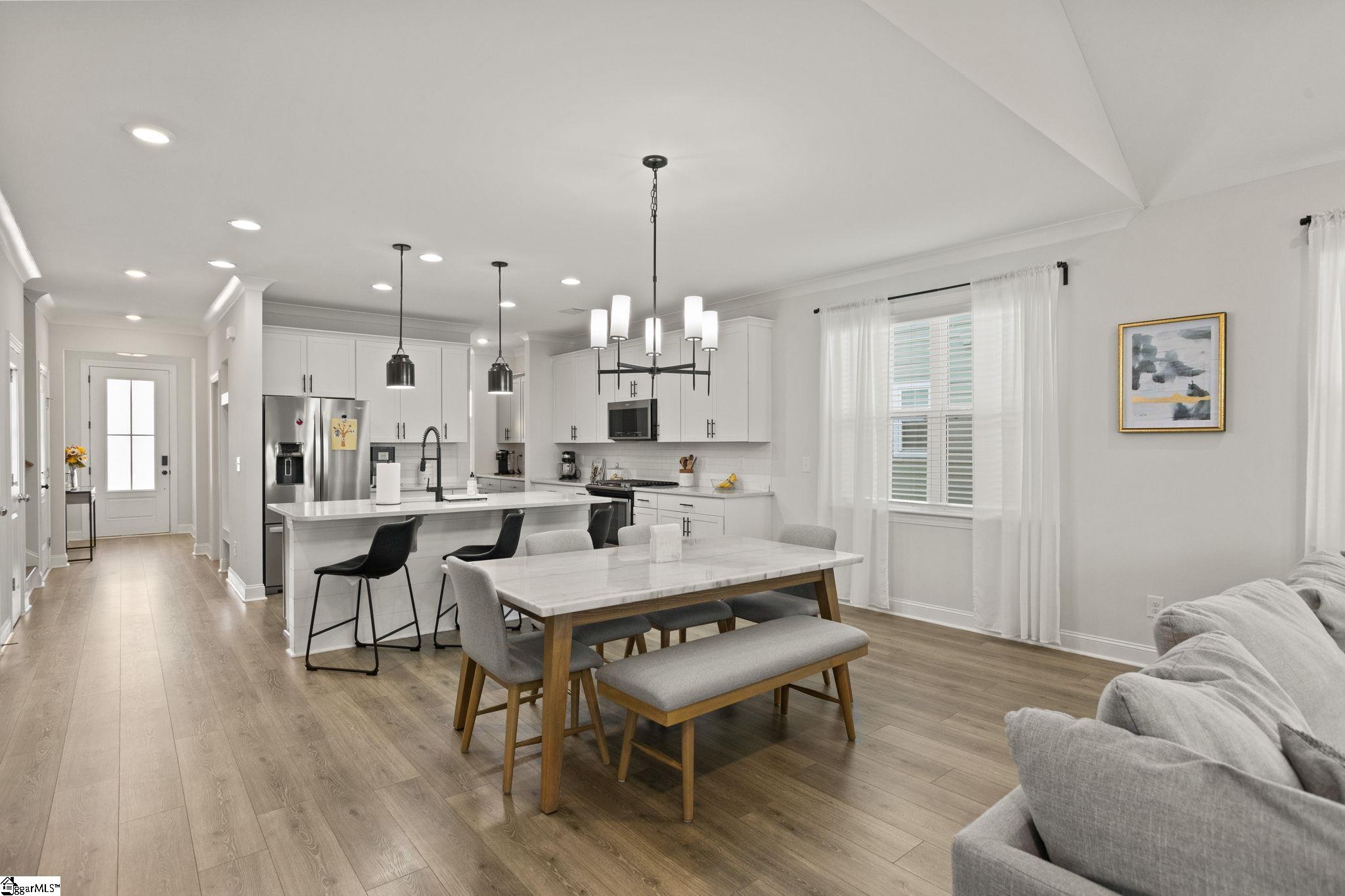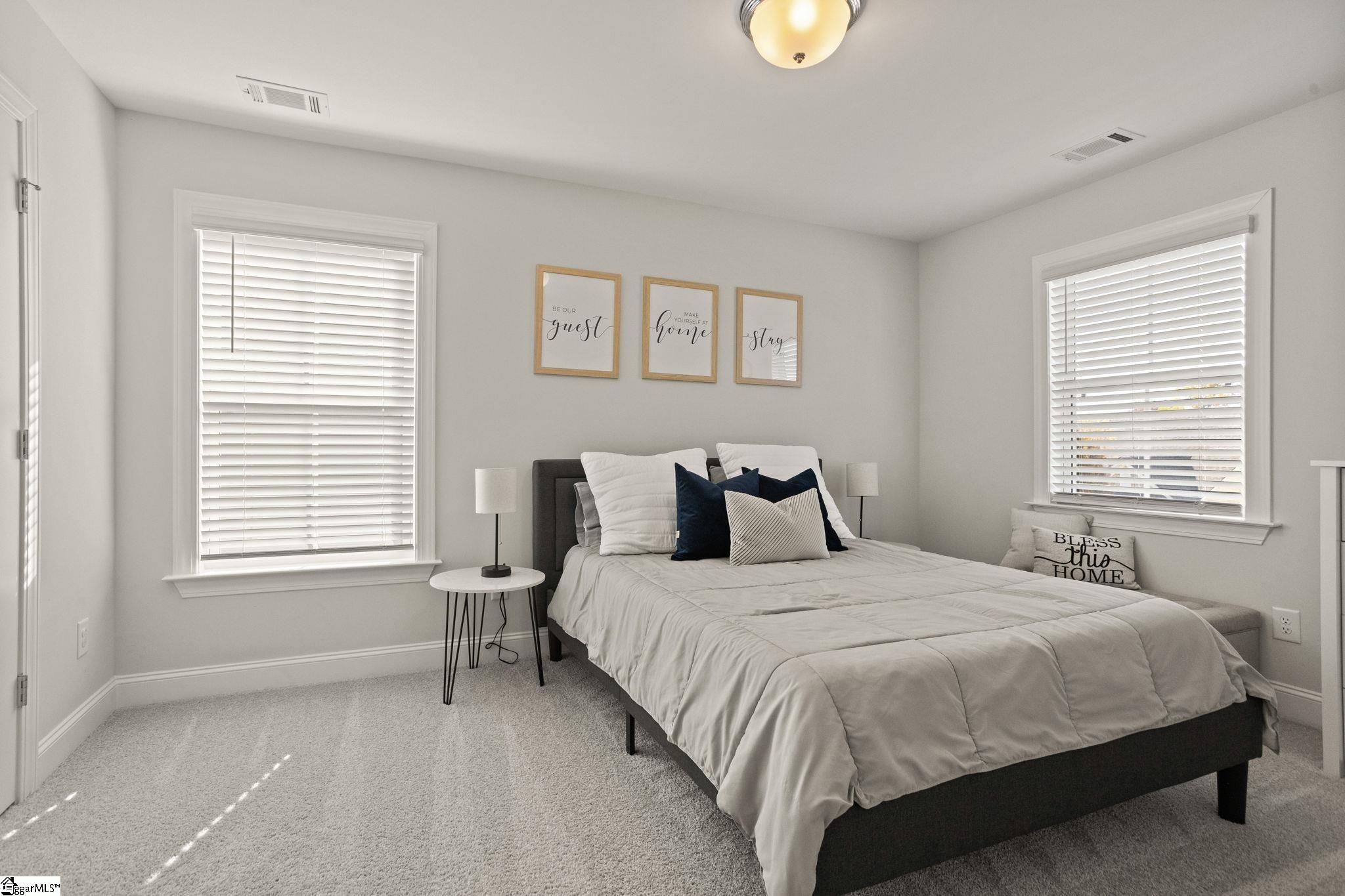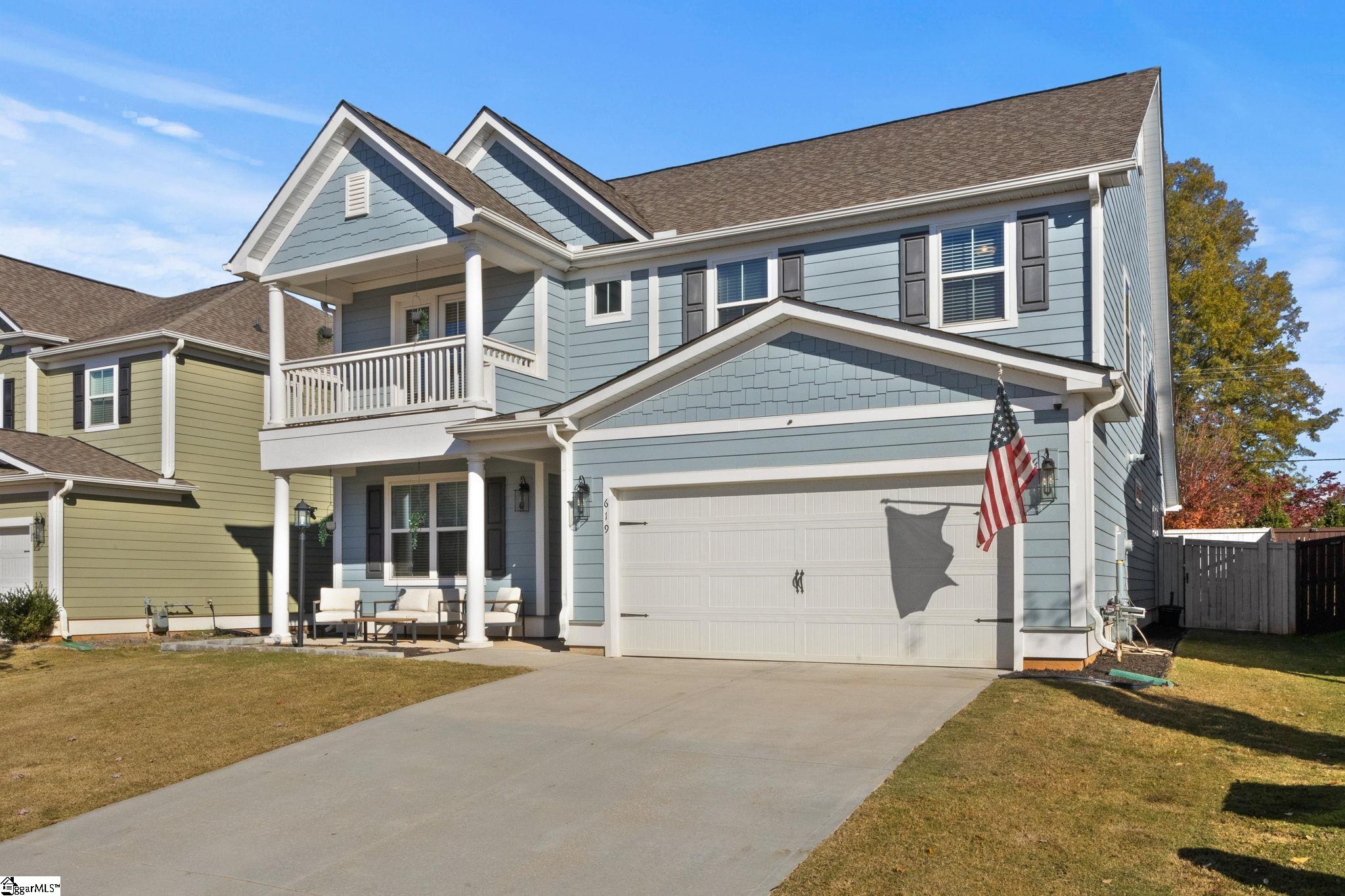 Step into timeless Southern Charm with this Traditional Charleston-style home, perfectly blending classic design and modern comfort. Nestled on a level, fenced lot with underground utilities, this beautifully maintained residence offers the best of both elegance and everyday functionality—just minutes from GSP Airport and surrounded by resort-style community amenities including walking trails, a dog park, a neighborhood lake/pond, and recreational paths. The screened porch and back patio create ideal spaces for morning coffee or evening relaxation. Inside, you’ll find a bright open floor plan with abundant natural light and thoughtful modern finishes throughout. The living room’s updated fireplace adds warmth and sophistication, making it an inviting focal point. The heart of the home features a chef-inspired kitchen with granite countertops, a butler’s pantry, and seamless flow into the spacious dining and living areas—perfect for entertaining. The primary suite on the main level offers a peaceful retreat with double sinks, a large shower, and multiple walk-in closets for plenty of storage. Upstairs, you'll find 3 additional bedrooms and a versatile loft/flex room PLUS a guest suite on the opposite side of the home that provides both comfort and privacy, complete with its own full bath and walk-in closet. Enjoy the lifestyle you’ve been looking for—where traditional elegance meets modern comfort, in a community that feels like home! Home school supplies upstairs and the commercial gym equipment in the garage are negotiable for added convenience.
