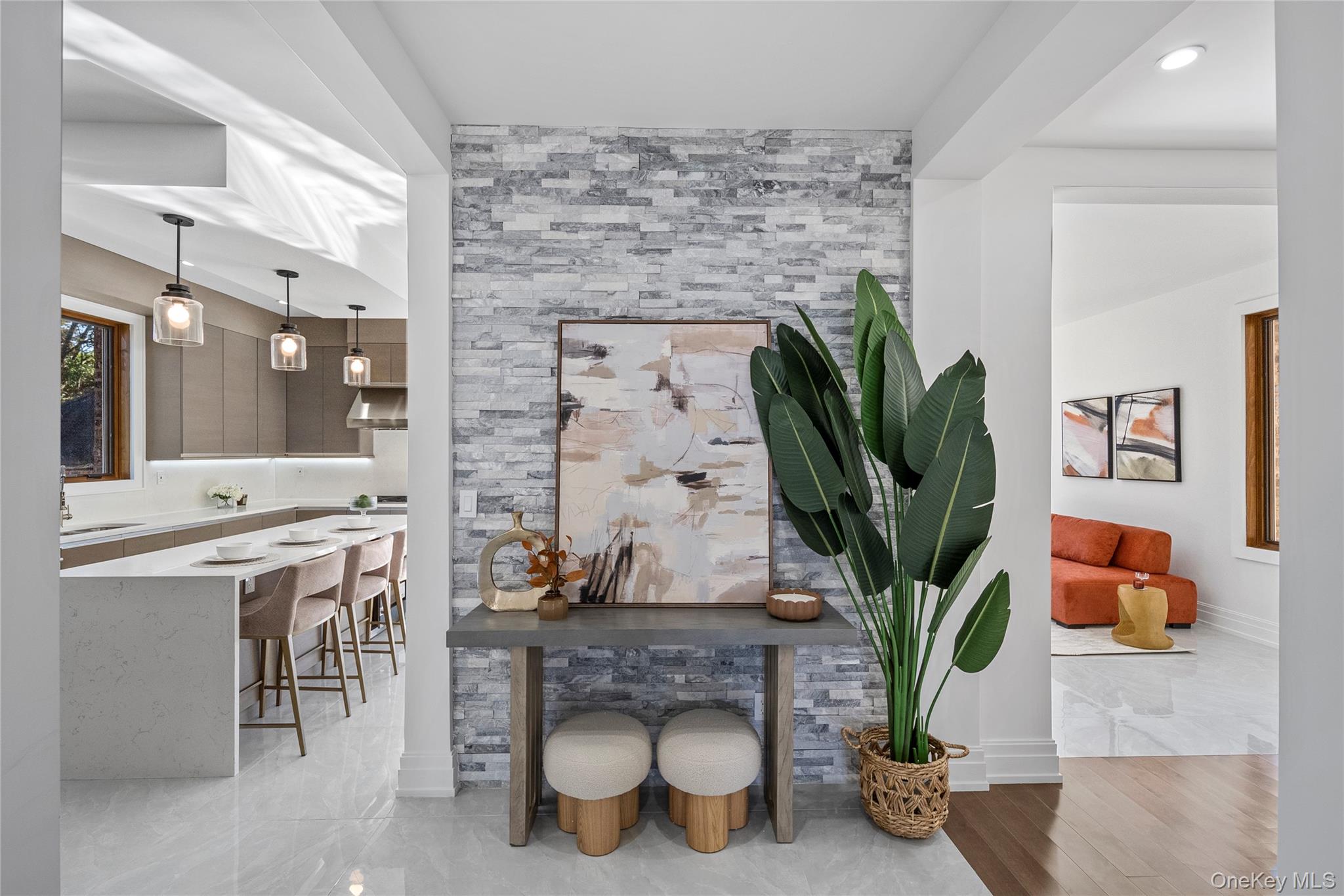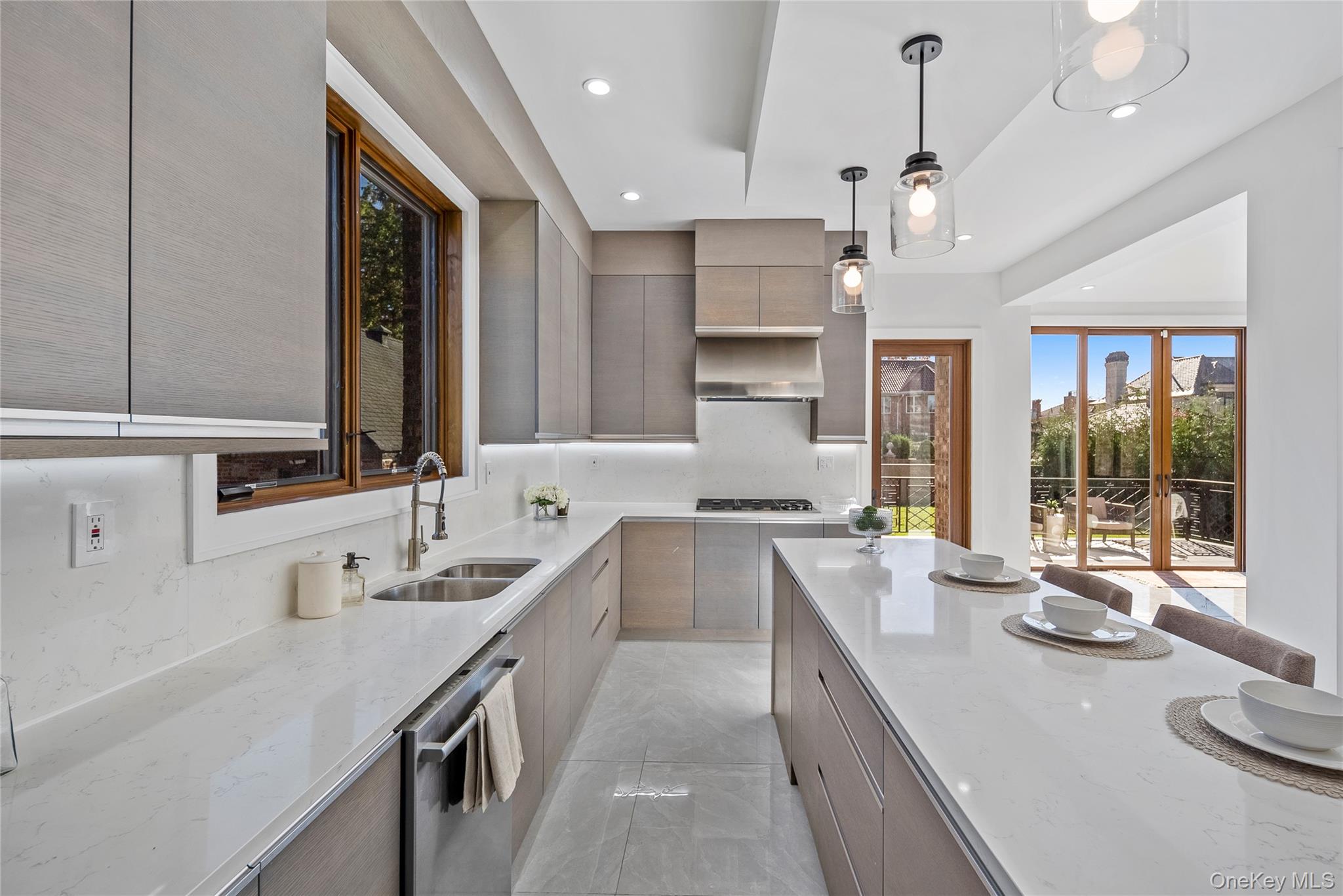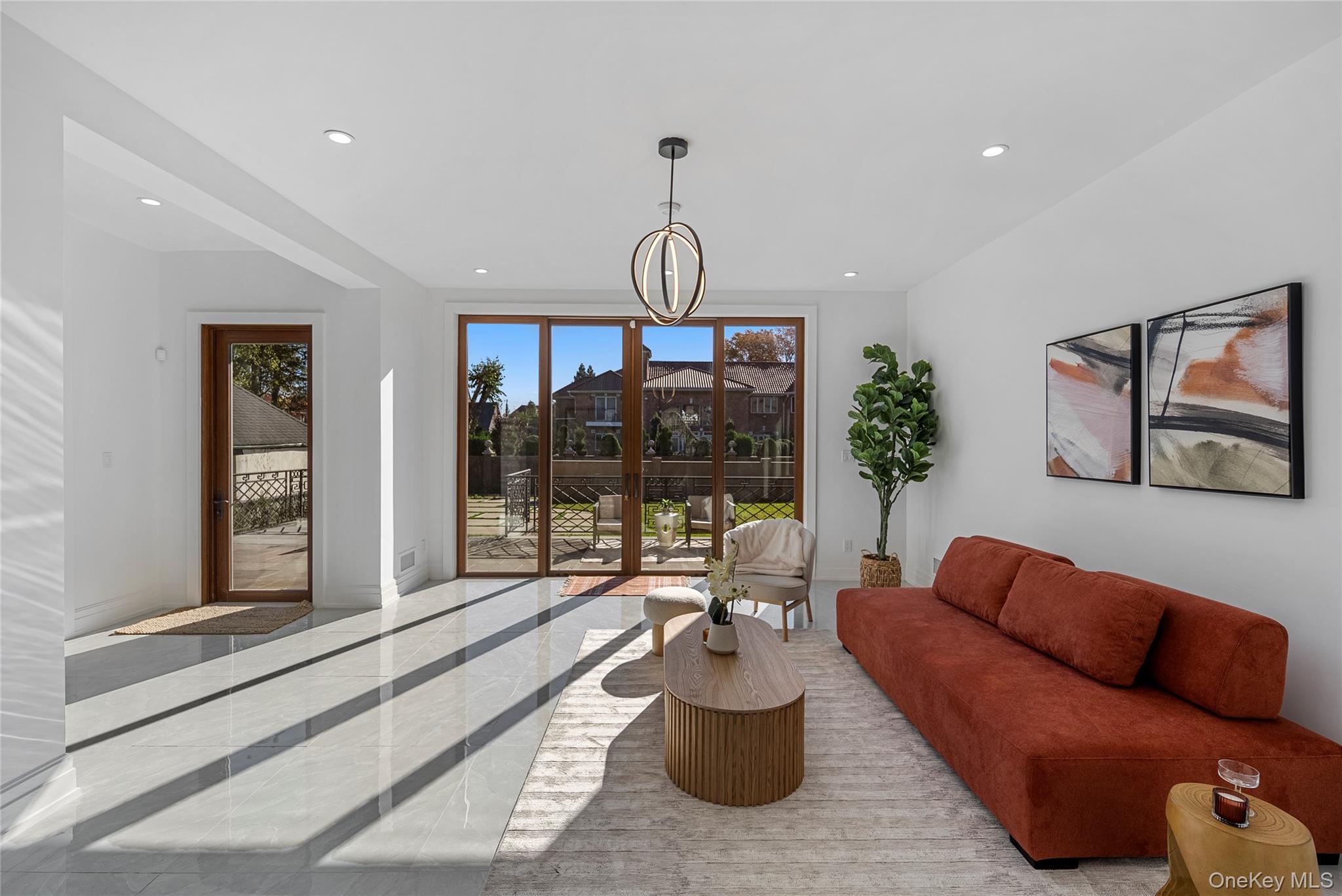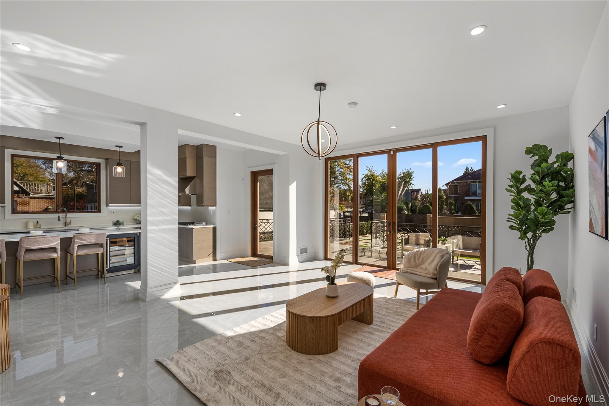 Custom full brick Colonial built in 2020 on a rare 11, 086 SF lot. Approx. 7, 723 SF interior space, 5 bedrooms, 4. 5 baths. Main level offers grand living room, formal dining, open-concept kitchen w/ access to deck, plus bedroom/office. Second floor features 2 master suites, spacious bedrooms, front/back balconies with partial Whitestone Bridge & city views. Finished basement w/ legal CO includes master bedroom, office/utility room, laundry, security system & private entrance — ideal for extended living. Indoor 2-car garage. Room for sport , Prime & private residential location, minutes to major highways, shopping & dining.