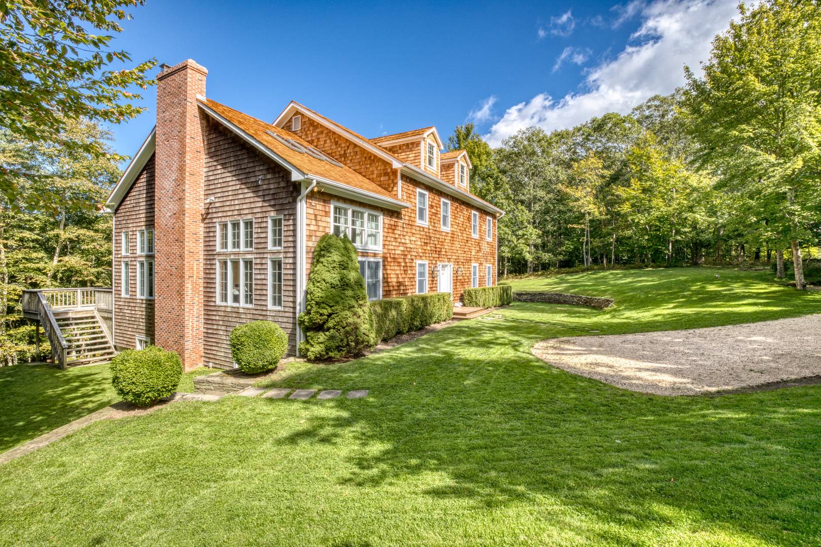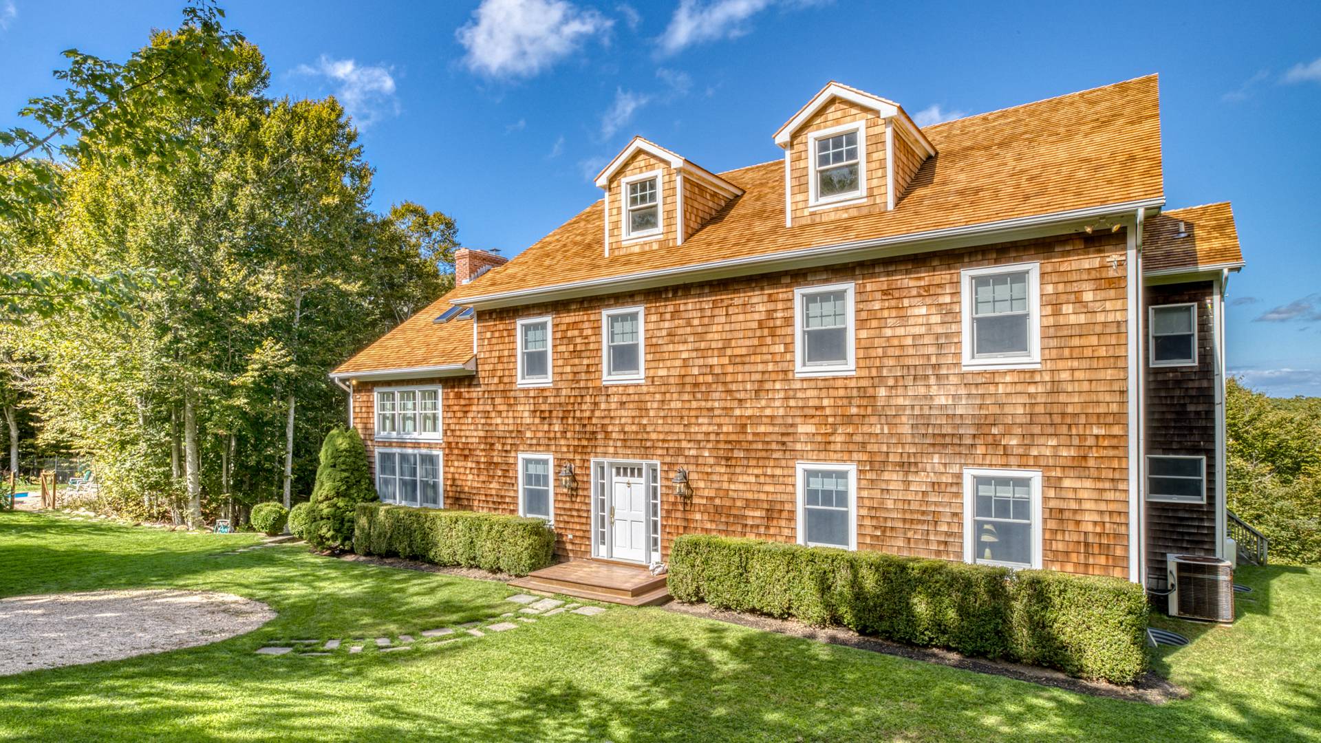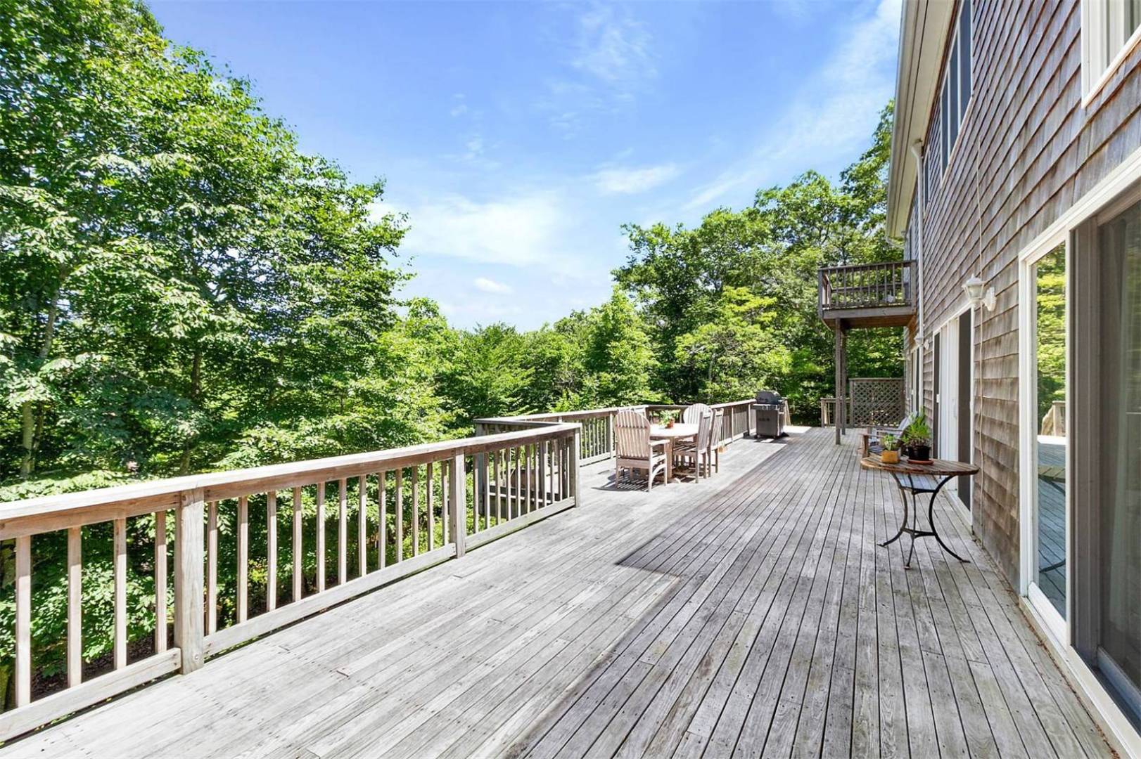 Rental Registration #: 18-849 Post-modern style home on 2+/- secluded acres bordering 102 acres of preserve and protected land and spectacular year round views of Gardiner's Bay and Gardiner's Island. Inside are four bedrooms including 2 master suites and private upstairs deck, great room with 26' cathedral ceiling, fireplace, antiques, 2-zone central air and whirlpools. Outdoor features include huge deck for entertaining, teak furniture, gas grill, outdoor shower and 60' heated pool. Bike to ocean and towns of Amagansett and East Hampton. RR#18-849.