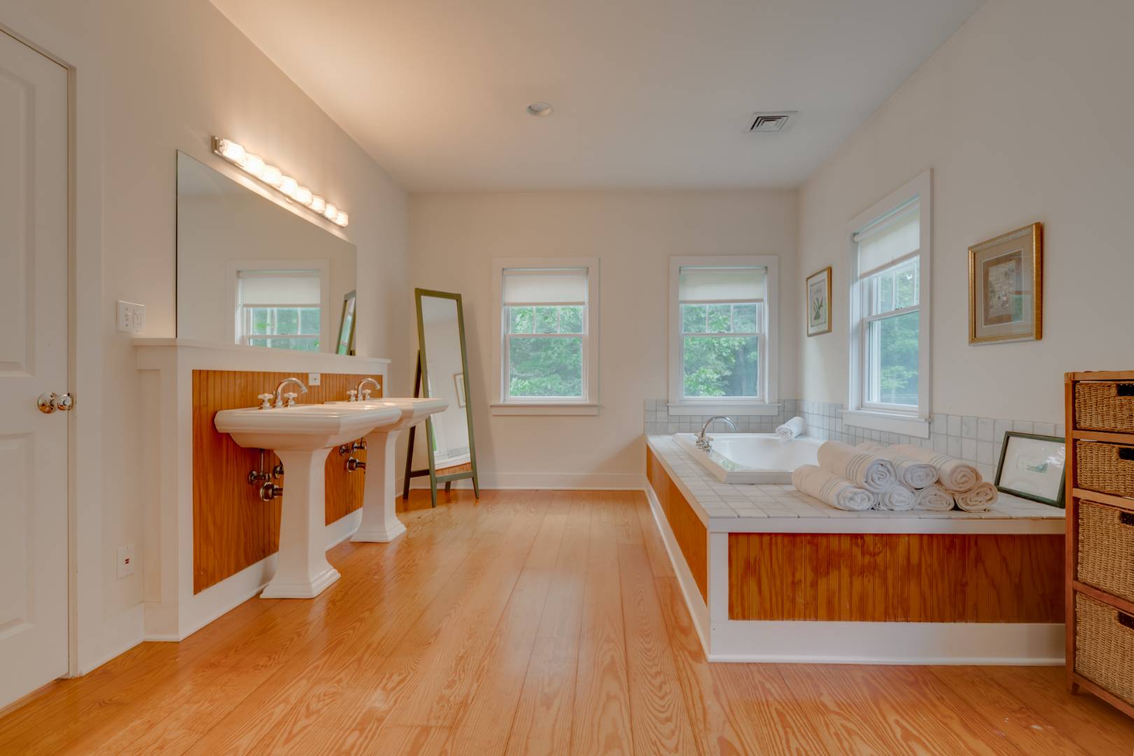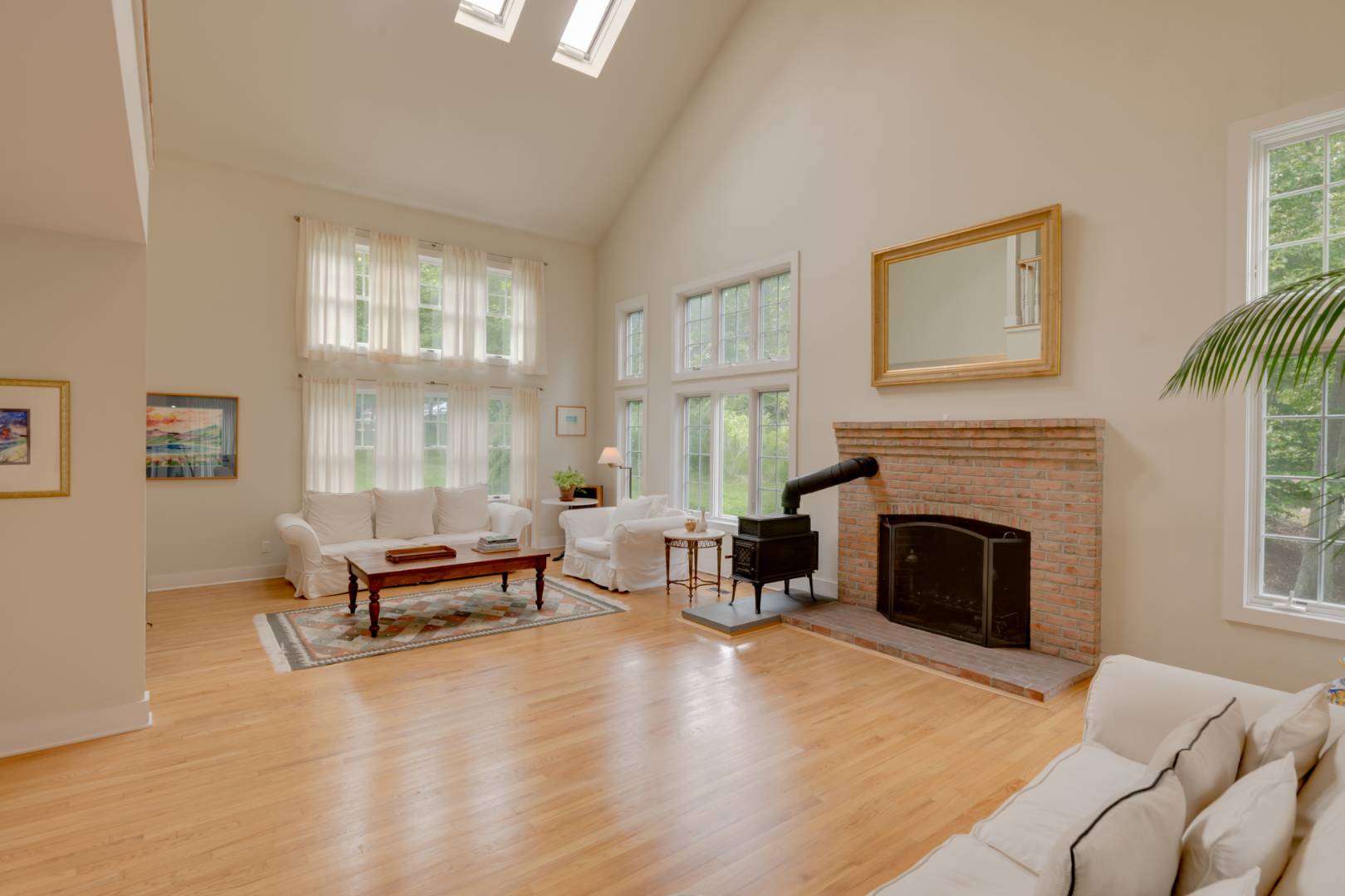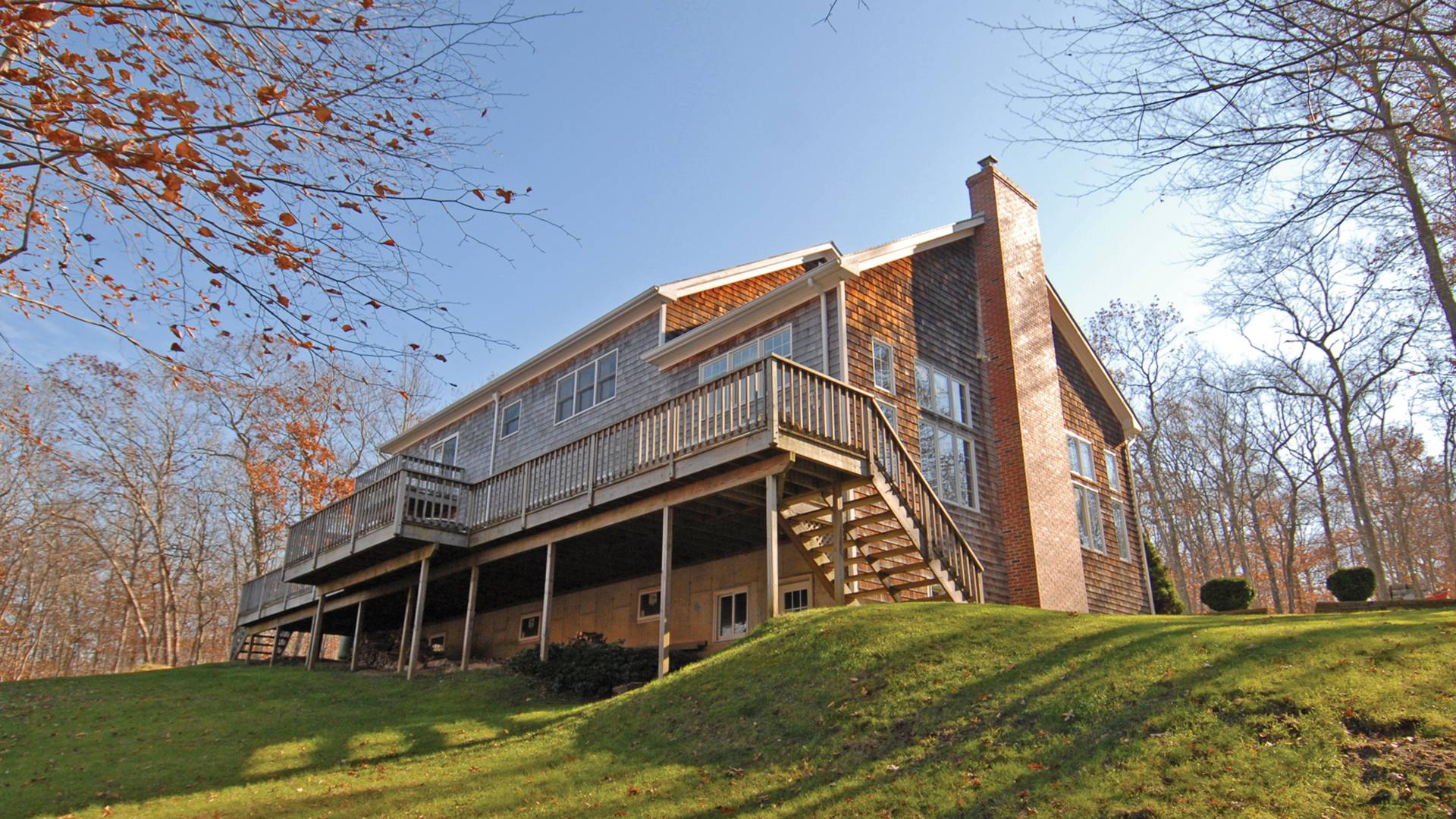 Rental Registration #: 18-849 Post-modern style home on 2+/- secluded acres bordering 102 acres of preserve and protected land and spectacular year round views of Gardiner's Bay and Gardiner's Island. Inside are four bedrooms including 2 master suites and private upstairs deck, great room with 26' cathedral ceiling, fireplace, antiques, 2-zone central air and whirlpools. Outdoor features include huge deck for entertaining, teak furniture, gas grill, outdoor shower and 60' heated pool. Bike to ocean and towns of Amagansett and East Hampton. RR#18-849.