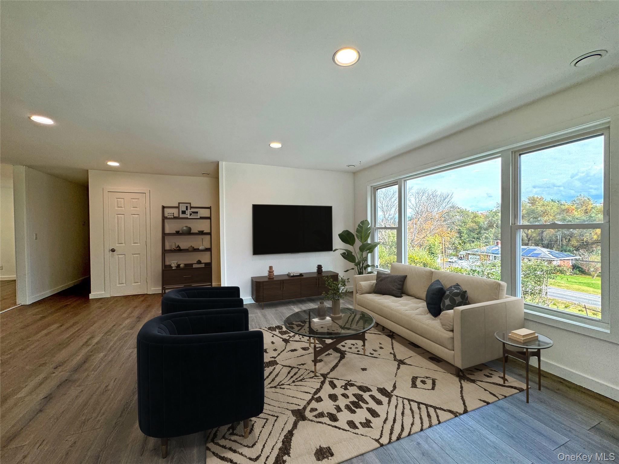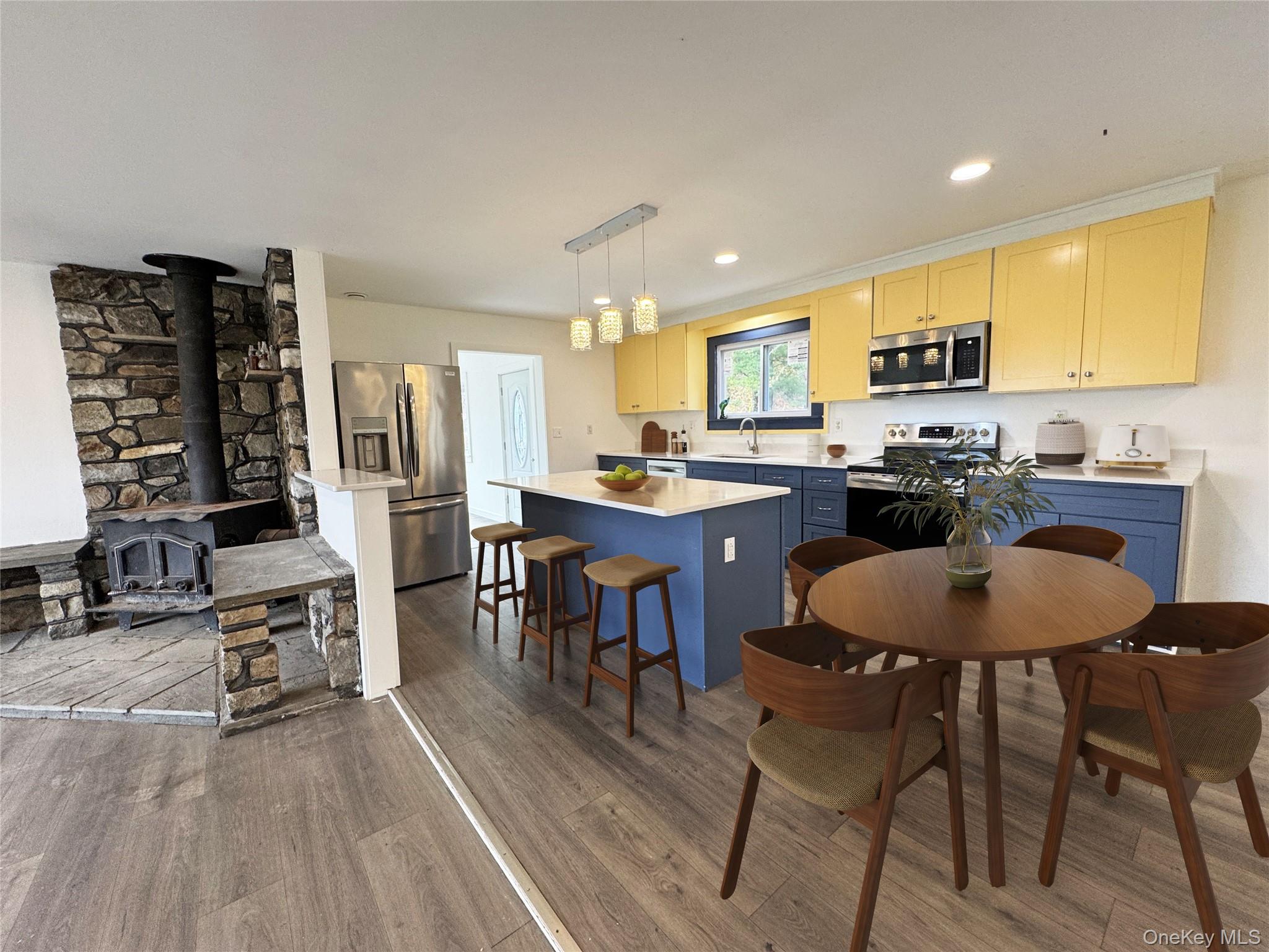 Totally Renovated Sunny Home On almost two acres in the hamlet of Ruby, this single-level 1956 ranch home is move-in ready! Blending easy living with room to grow. At the heart of the open floor plan is a kitchen with island and wood burning stove. Brand new renovation throughout this home includes: new roof, siding, windows, flooring, HVAC heat pump system, 200 amp electrical service, new driveway, new kitchen with stainless-steel appliances and quartz countertops, new bathroom, with hookups for full-size washer and dryer. Below, a full-height walk-out basement offers abundant storage or workshop potential, with exposed beams, windows, and its own split unit for A/C and heat— ideal for a studio, gym, or creative space, etc. The attached one-car garage provides direct access to the lower level. With nearly two acres of gentle slopes and established landscaping, this property invites endless outdoor possibilities — a future pool, gardens, or expanded decks for summer living. Located just minutes from Kingston, Saugerties, and the Rhinecliff Bridge, 125 Main Street combines convenience with a peaceful country setting — turnkey, comfortable, and ready to move in.