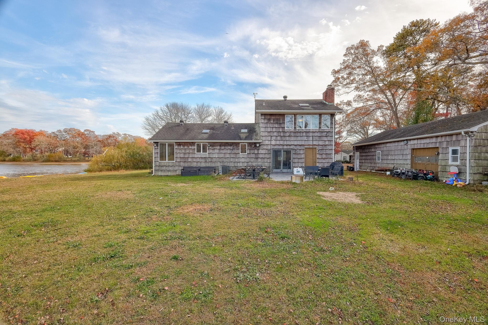 Experience rare lakefront living on Long Island! Set along the shores of Artist Lake in Middle Island, this spacious home offers over 2, 000 sq. ft. of light-filled living space and a layout designed for comfort, flexibility, and breathtaking views. The open-concept kitchen and dining area are the heart of the home, featuring white cabinetry, warm wood floors, rich countertops, and panoramic lake views. Entertaining is a breeze in the adjoining living room while the family room offers a cozy place to relax and unwind. The main floor bedroom can serve as the perfect guest space or home office. Upstairs, the primary suite includes a walk-in closet and stunning views, complemented by two additional bedrooms and a full bath. Outside, enjoy your private lakefront yard with a patio just steps from the water — ideal outdoor dining, kayaking and more. A detached oversized three-car garage with workshop and attic adds convenience and all the necessary storage you need. Tranquil, central, and truly one of a kind — this is lakefront living on Long Island at its best!